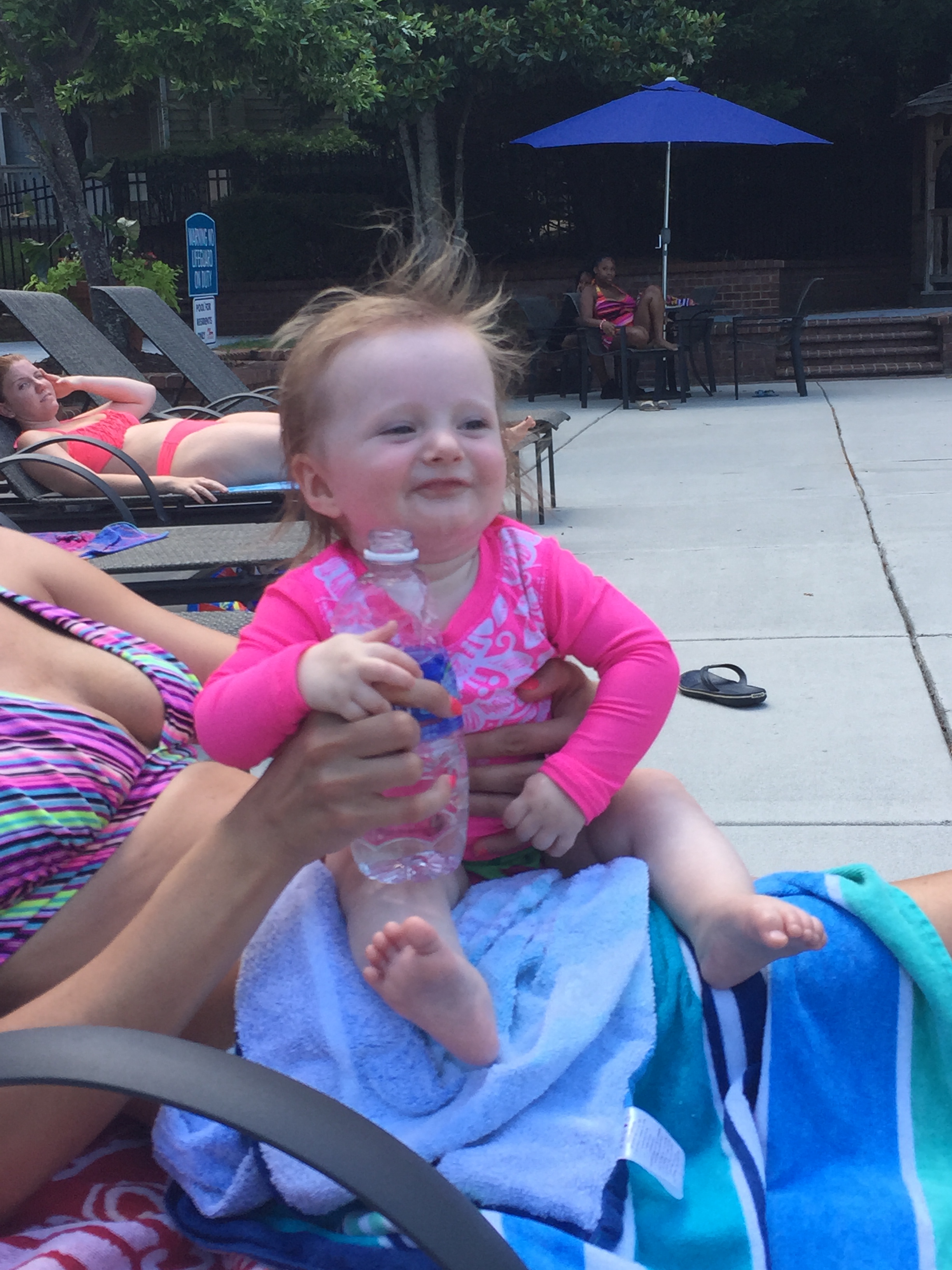 We traveled to Raleigh to finally meet your Aunt Treecie! She had waited a long time to meet you and we had a blast. We stayed at Aunt Treecie’s with Sergey, and their two Jack Russell Terriers – Misty and Jack. It was also Father’s Day Weekend – you celebrated your first one with Daddy – he loves you so much. Our trip was fun yet hot – it was record temps in the high 90’s but you survived and we went to the pool to cool off. We also visited with Nana, Aunt Jeanine, Aunt Katie and your cousin Brycen who were down for the week. We will definitely go visit Aunt Treecie again soon!