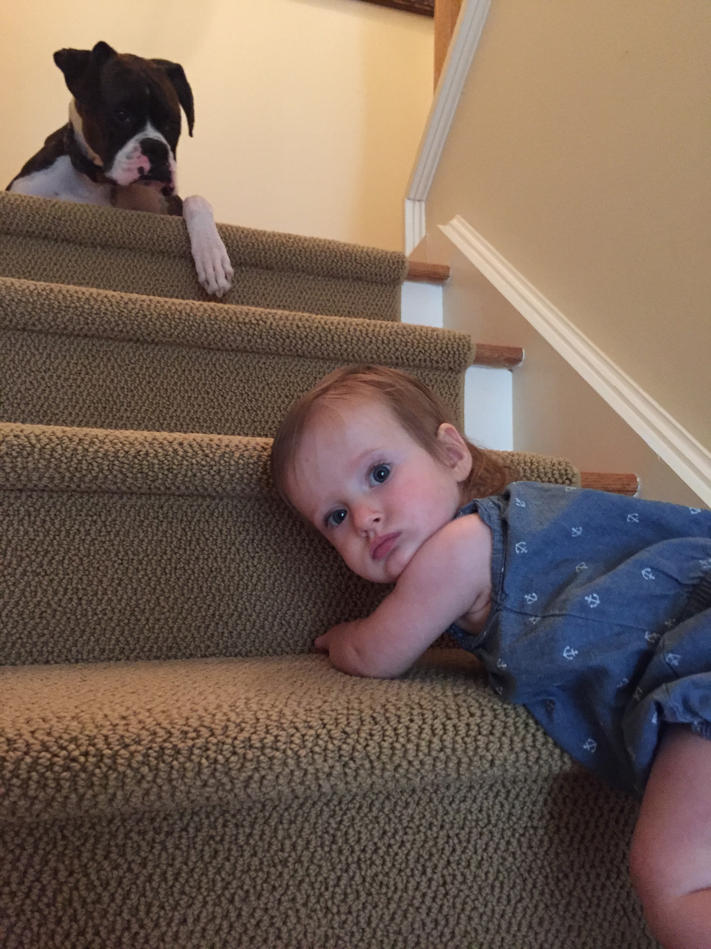 My dear Charlotte you just can’t sit still and mommy can’t turn her back on you for one second in fear that you will hurt yourself! You are on the move girl and the days where I could leave you in one place for a minute are long gone. You love to crawl, stand, go up the steps, splash in the dog’s water bowl, take the dog’s toys…it won’t be long before you are walking, and then we are really in trouble. Every day is an adventure and we have had so much fun this summer – pool, carnival, travel, music class – I’m sad that it is coming to an end. You are fast approaching your 1st Birthday – mommy can’t believe how quickly this year has gone by and I get sad seeing my little newborn baby grow into a little girl 🙂 Love you sweetie and keep mommy on her toes…it burns calories!