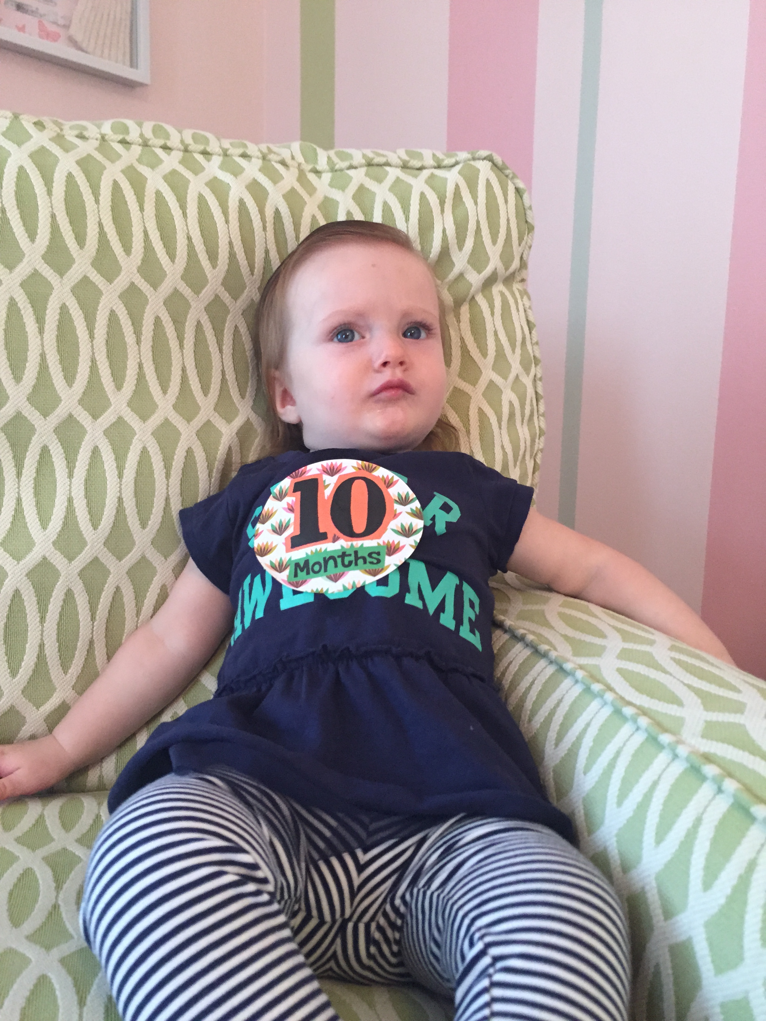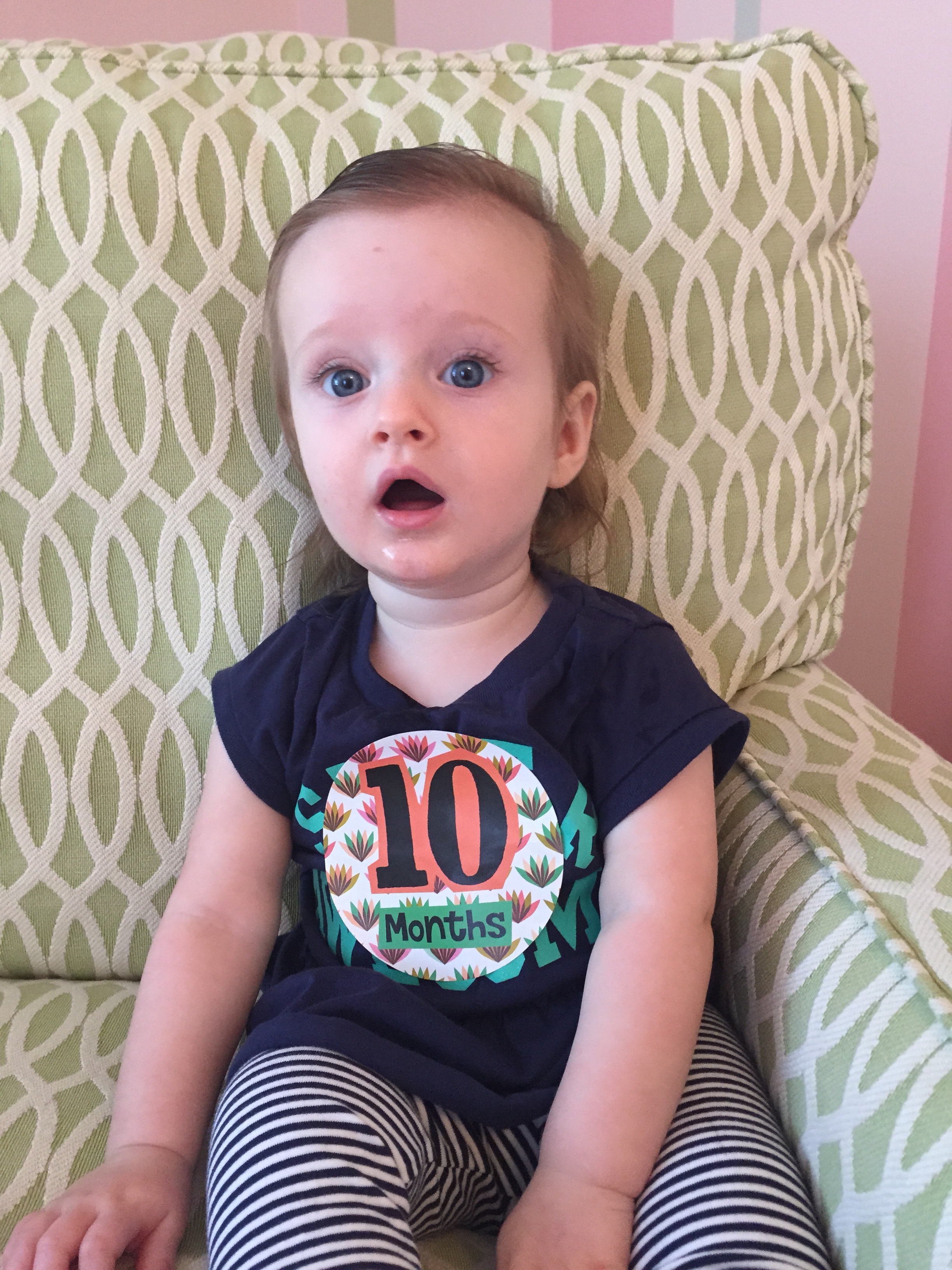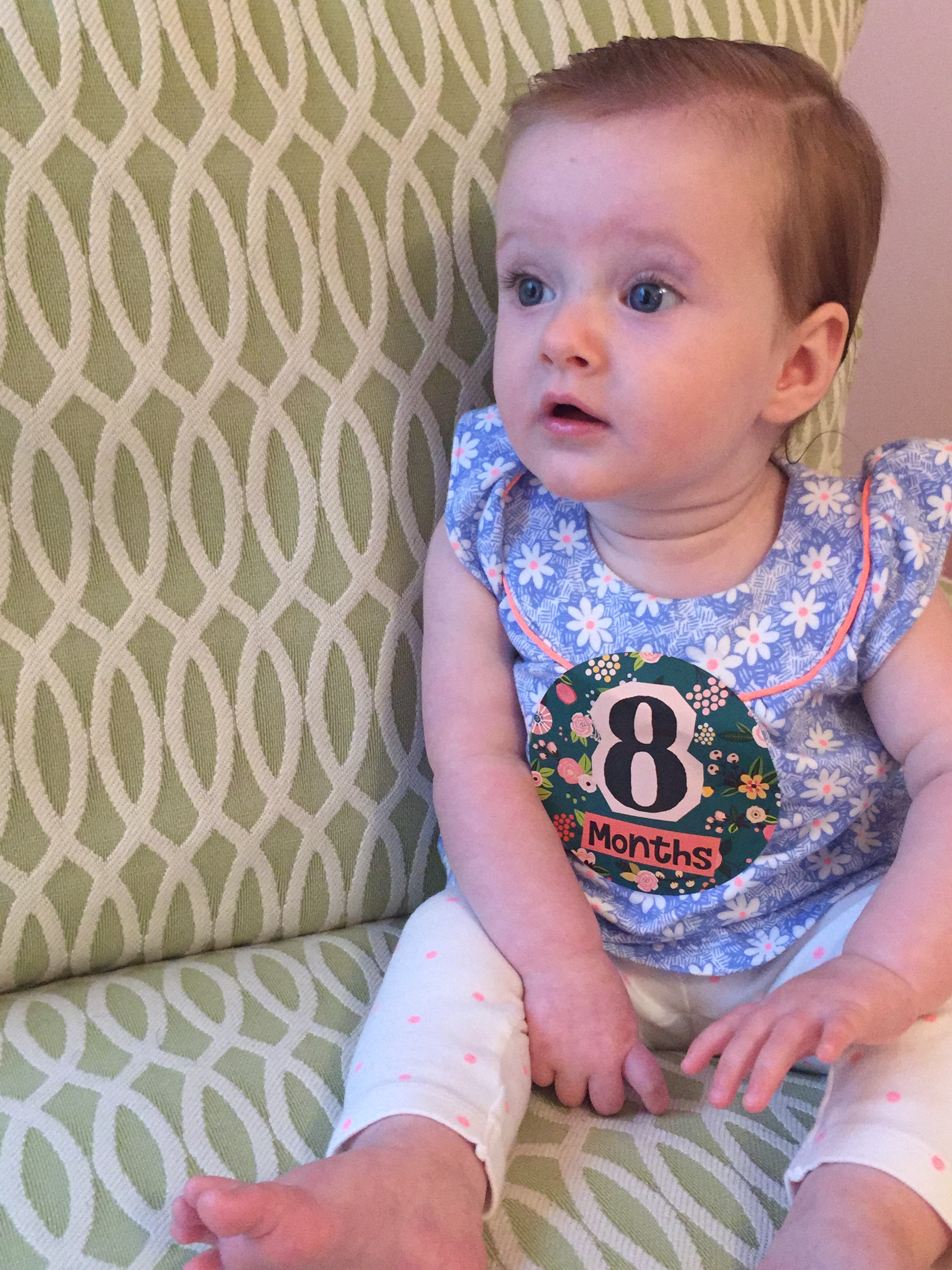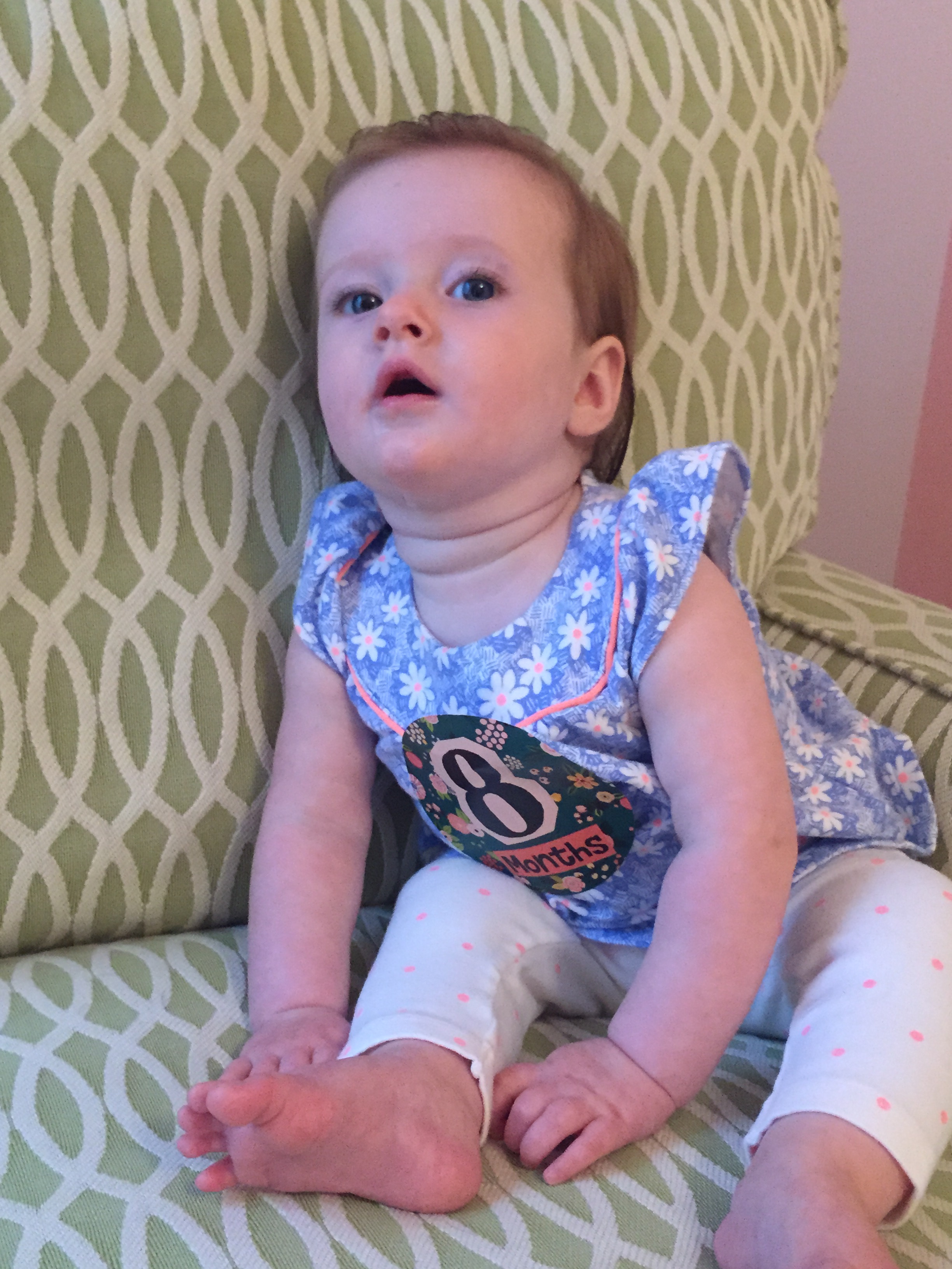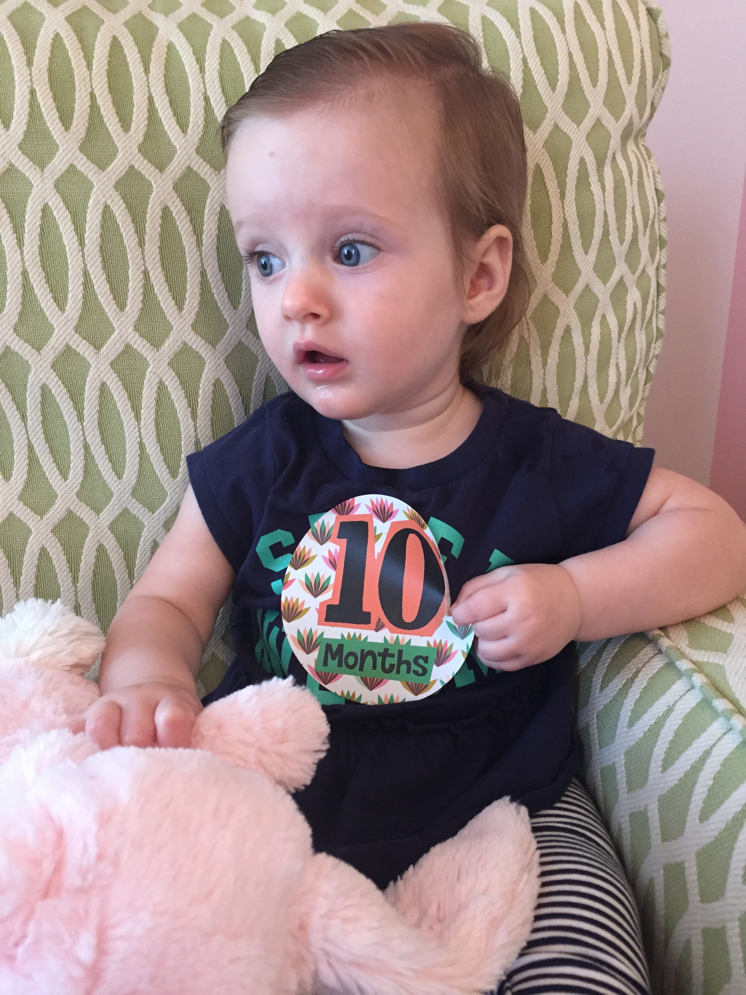I can’t believe you are nine months old already…you are growing up way too fast!! We had your doctor’s appointment and you did very well. Dr. Wong was impressed that you are eating all solid foods and sleeping through the night. He said you are perfect. You had one vaccine and didn’t even cry when you got the shot…both the nurse and myself were shocked. You are such a tough little girl 🙂