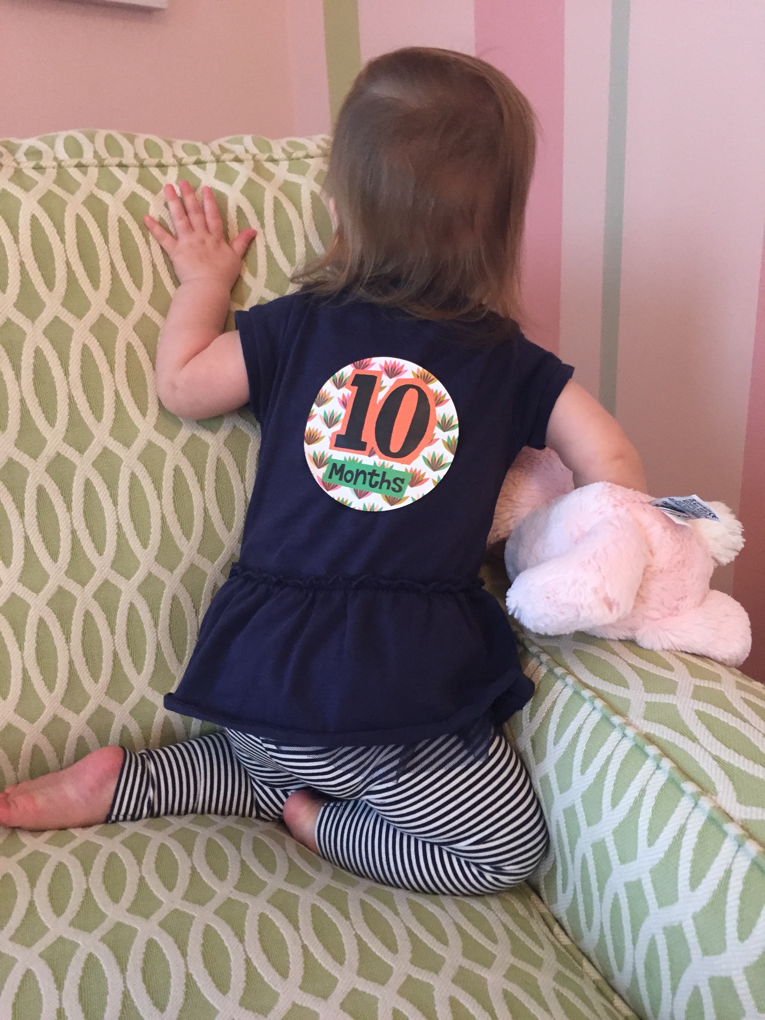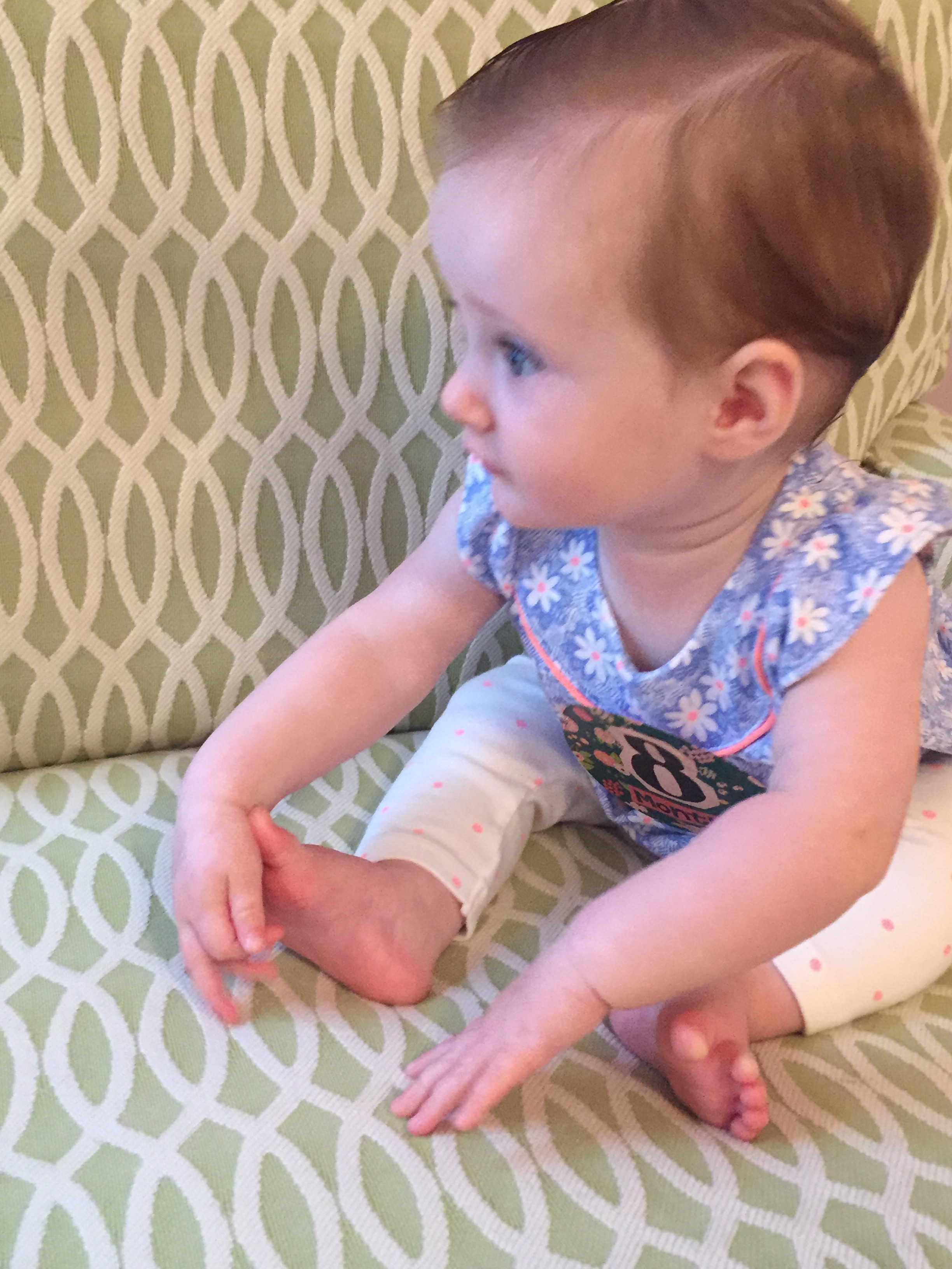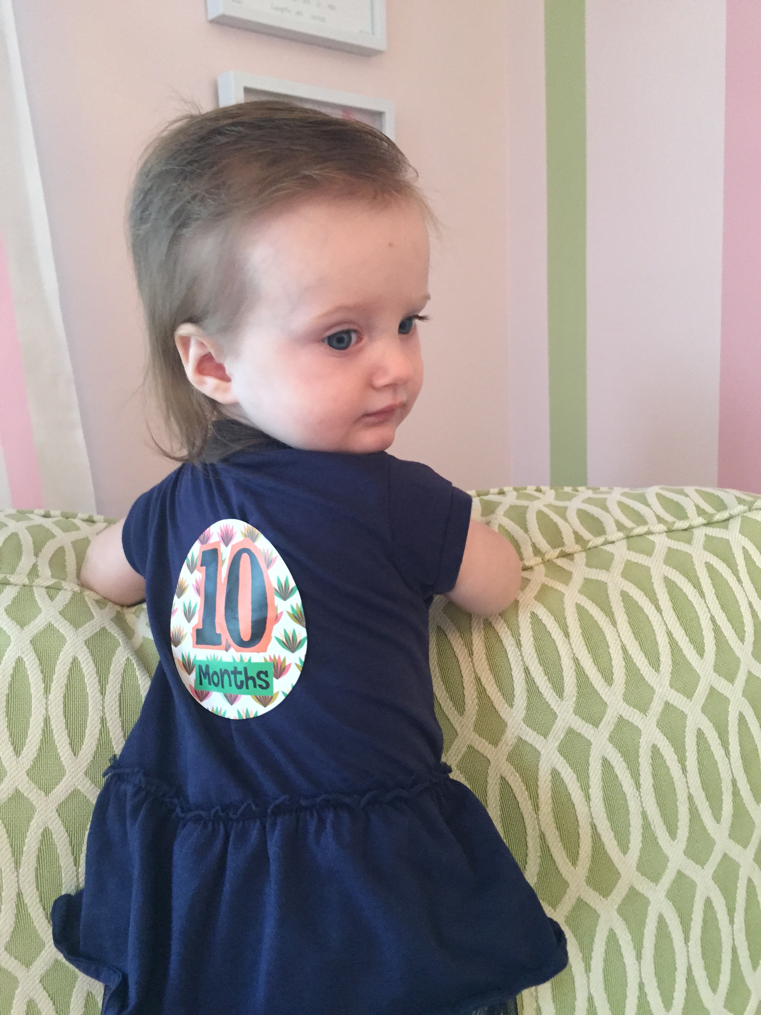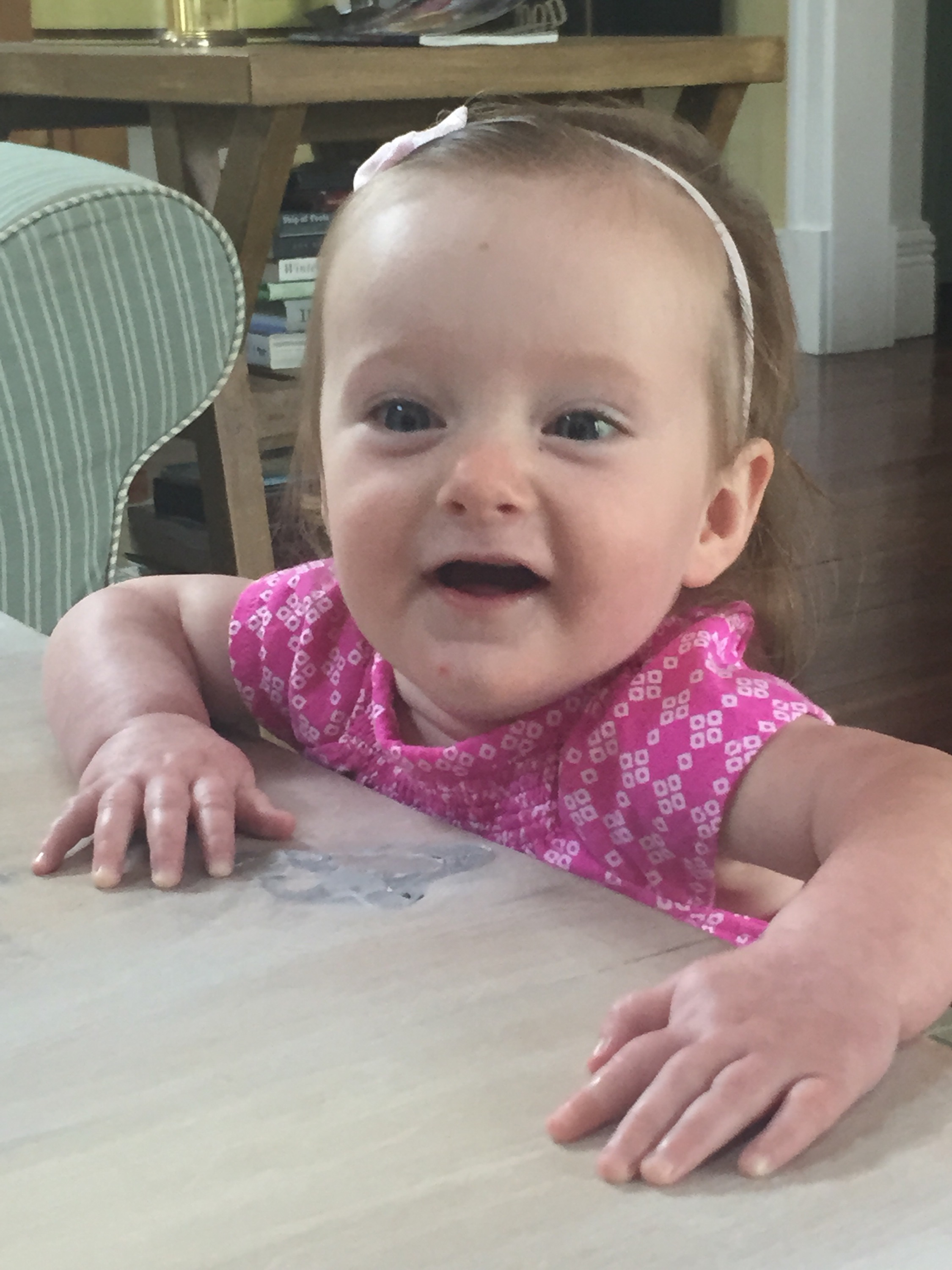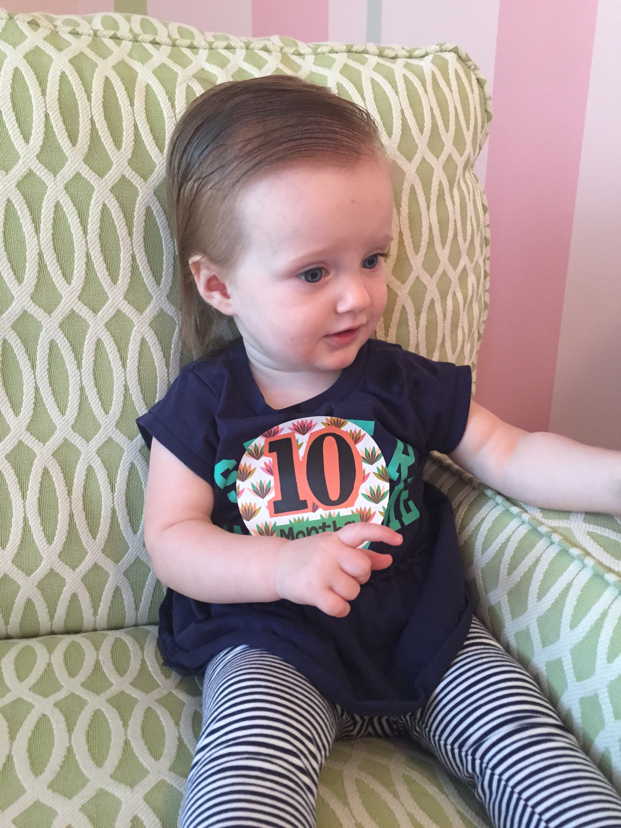 I can’t believe you are nine months old already…you are growing up way too fast!! We had your doctor’s appointment and you did very well. Dr. Wong was impressed that you are eating all solid foods and sleeping through the night. He said you are perfect. You had one vaccine and didn’t even cry when you got the shot…both the nurse and myself were shocked. You are such a tough little girl 🙂