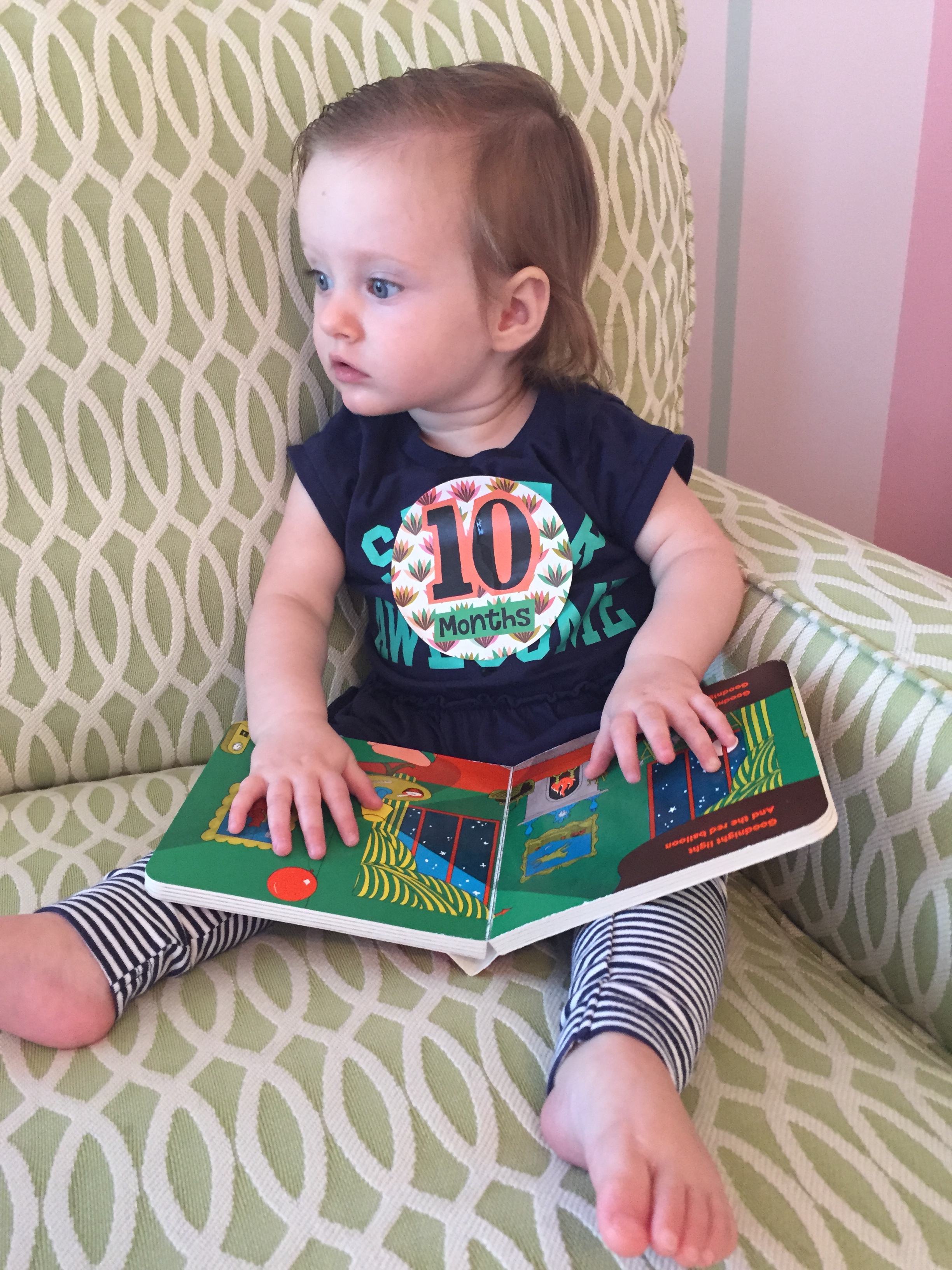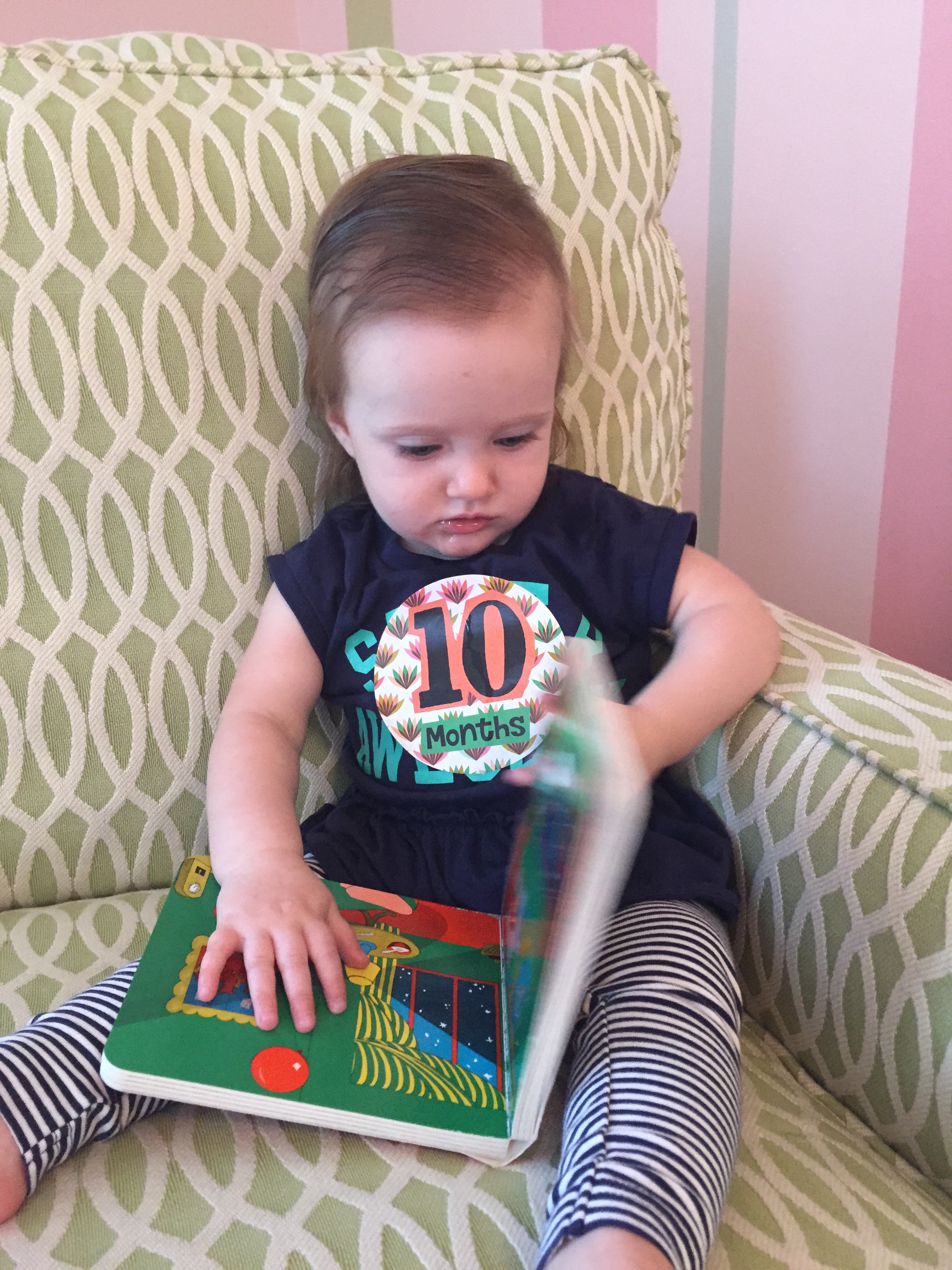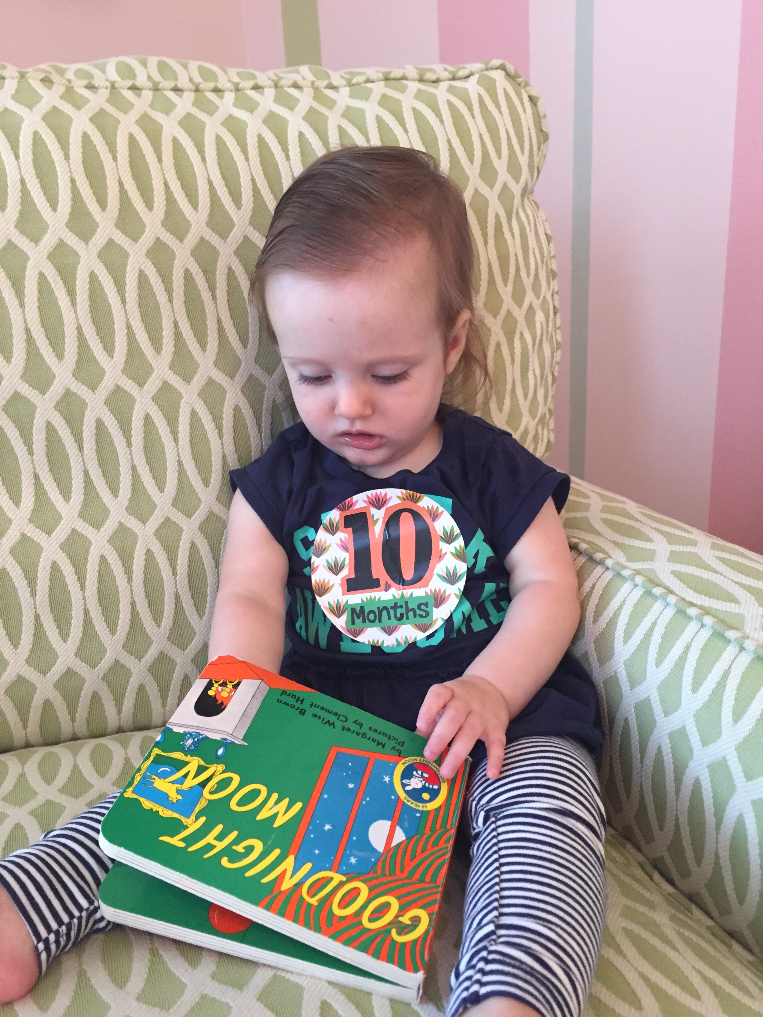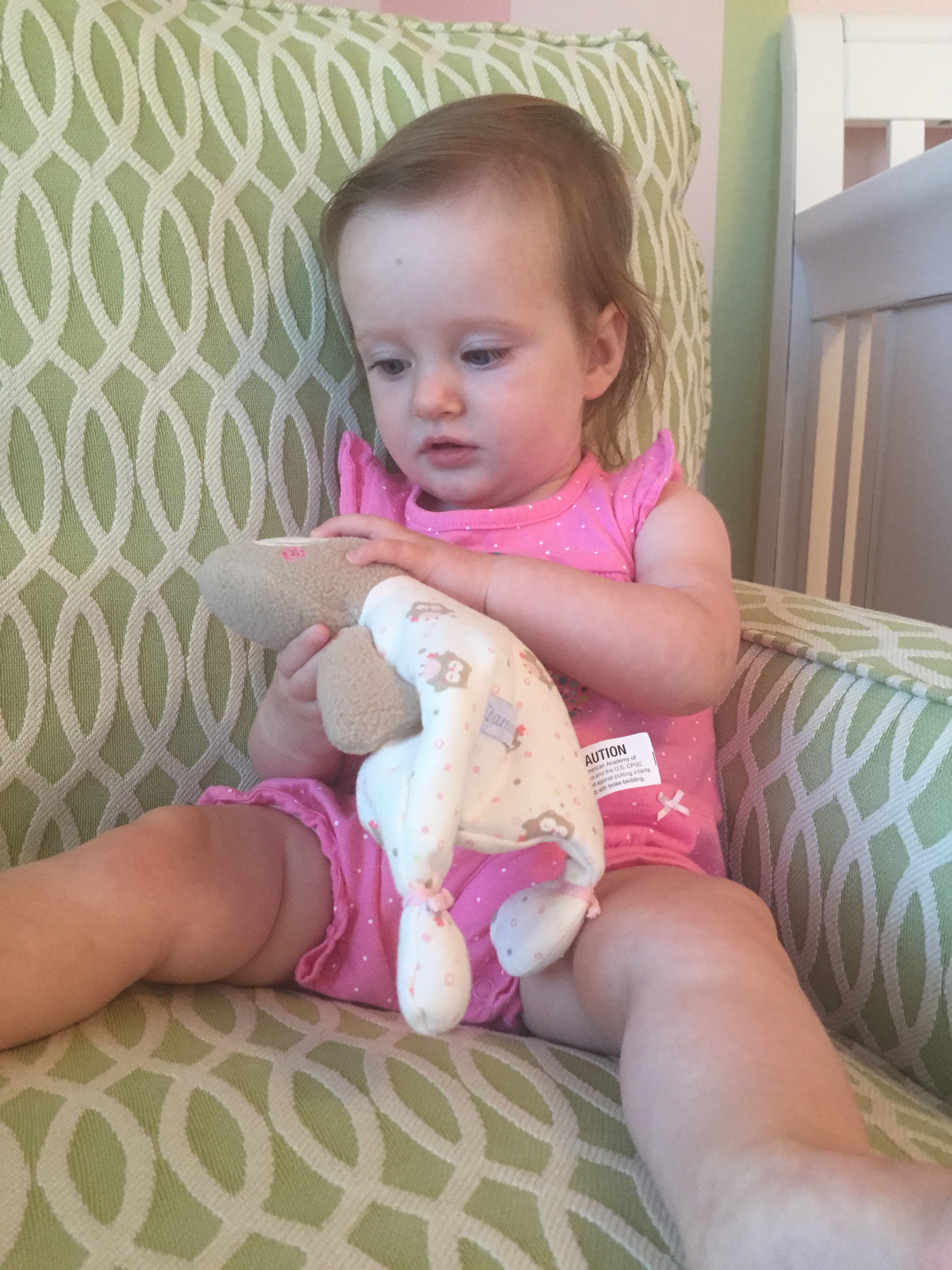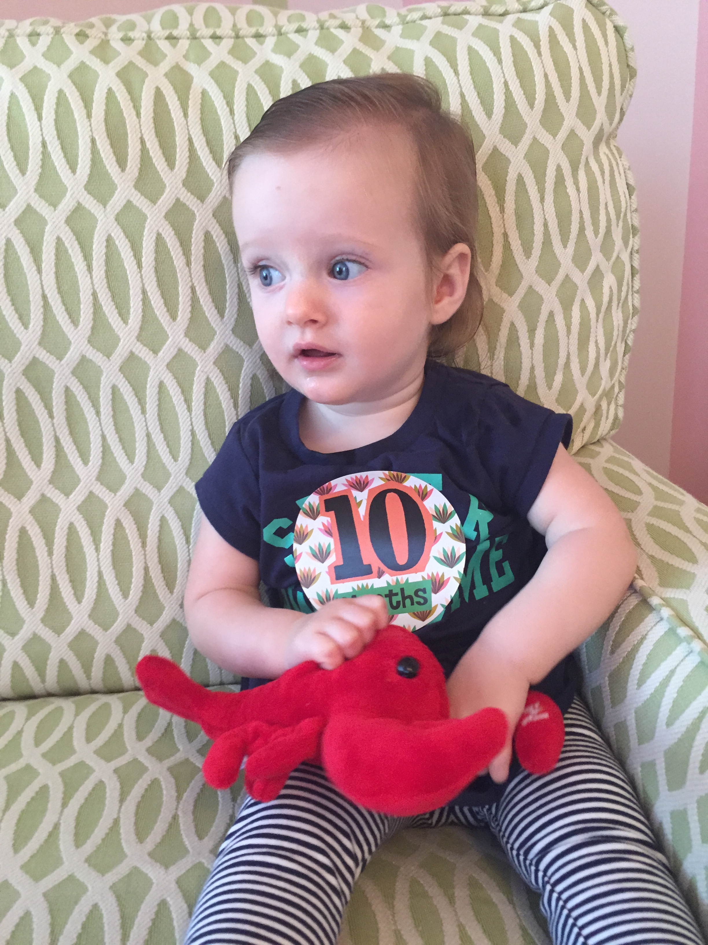 I can’t believe you are nine months old already…you are growing up way too fast!! We had your doctor’s appointment and you did very well. Dr. Wong was impressed that you are eating all solid foods and sleeping through the night. He said you are perfect. You had one vaccine and didn’t even cry when you got the shot…both the nurse and myself were shocked. You are such a tough little girl 🙂