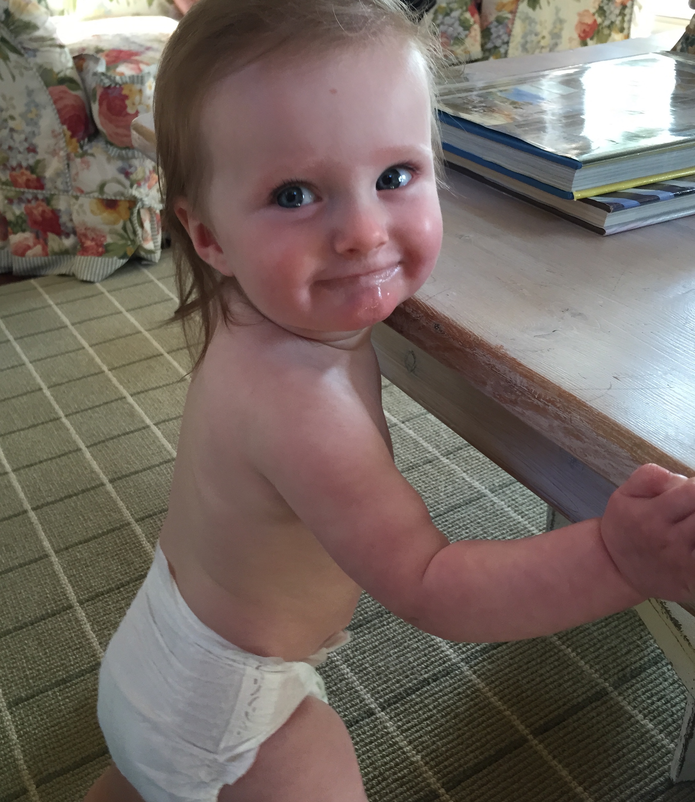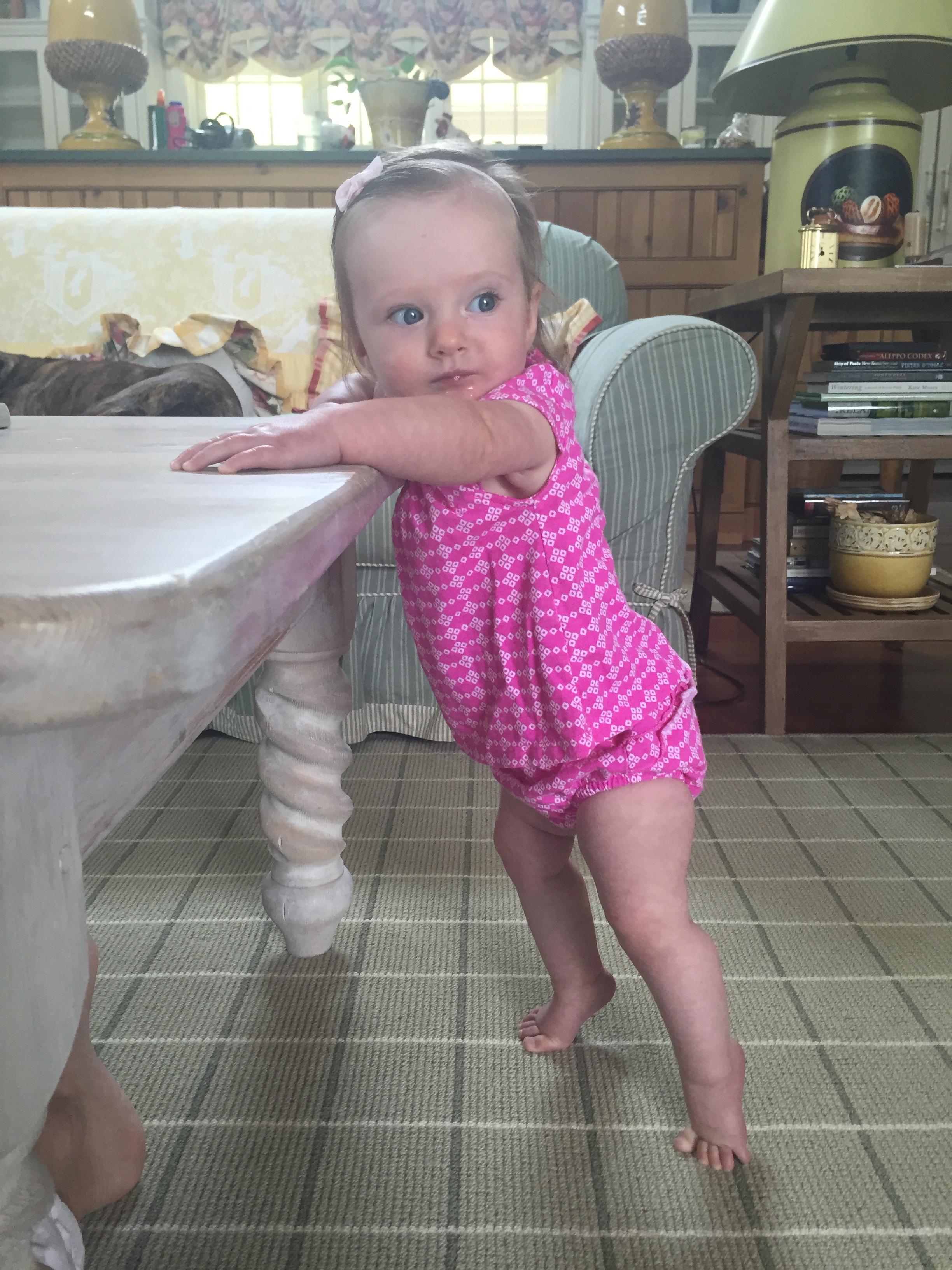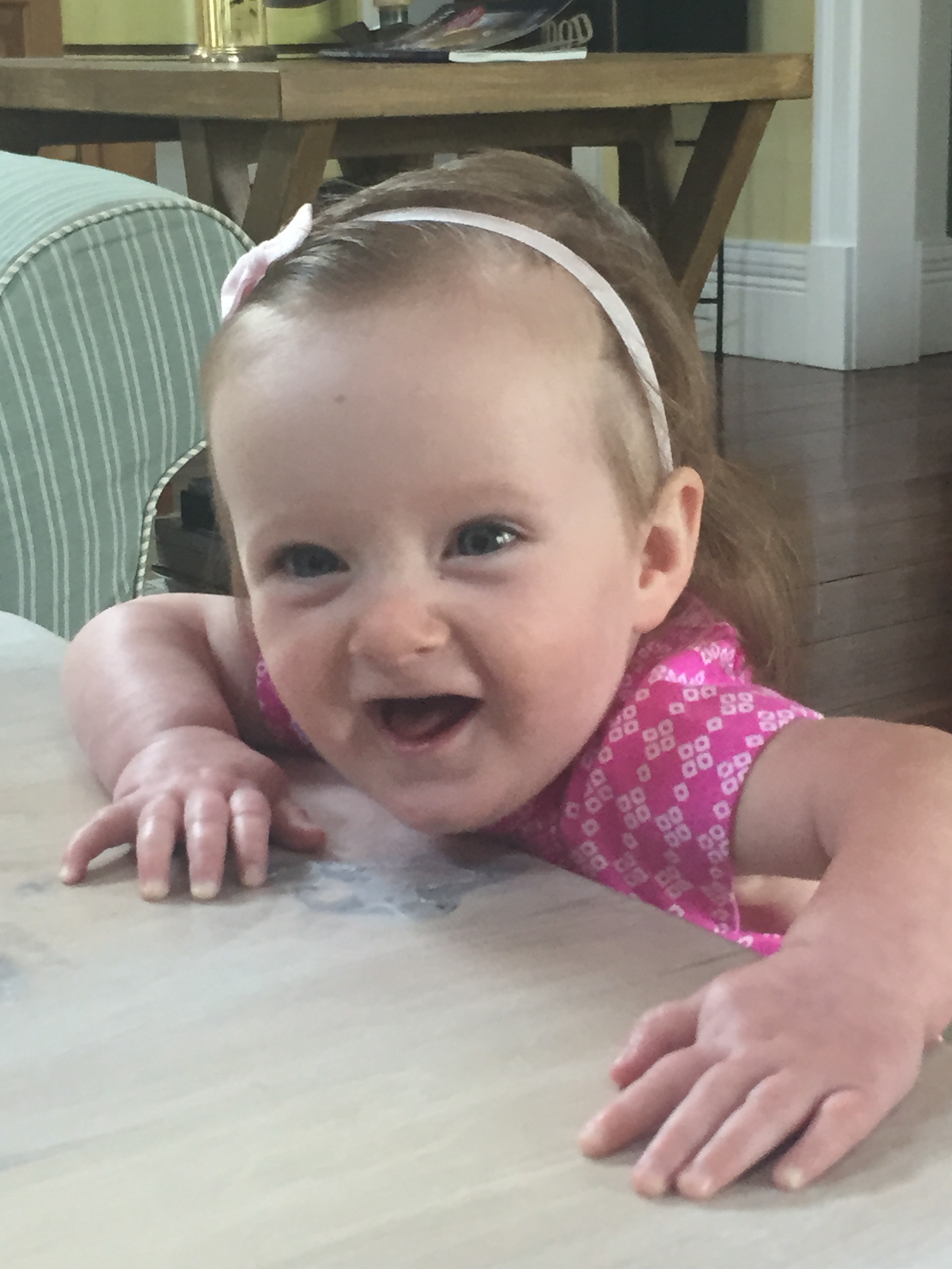 My dear Charlotte you just can’t sit still and mommy can’t turn her back on you for one second in fear that you will hurt yourself! You are on the move girl and the days where I could leave you in one place for a minute are long gone. You love to crawl, stand, go up the steps, splash in the dog’s water bowl, take the dog’s toys…it won’t be long before you are walking, and then we are really in trouble. Every day is an adventure and we have had so much fun this summer – pool, carnival, travel, music class – I’m sad that it is coming to an end. You are fast approaching your 1st Birthday – mommy can’t believe how quickly this year has gone by and I get sad seeing my little newborn baby grow into a little girl 🙂 Love you sweetie and keep mommy on her toes…it burns calories!