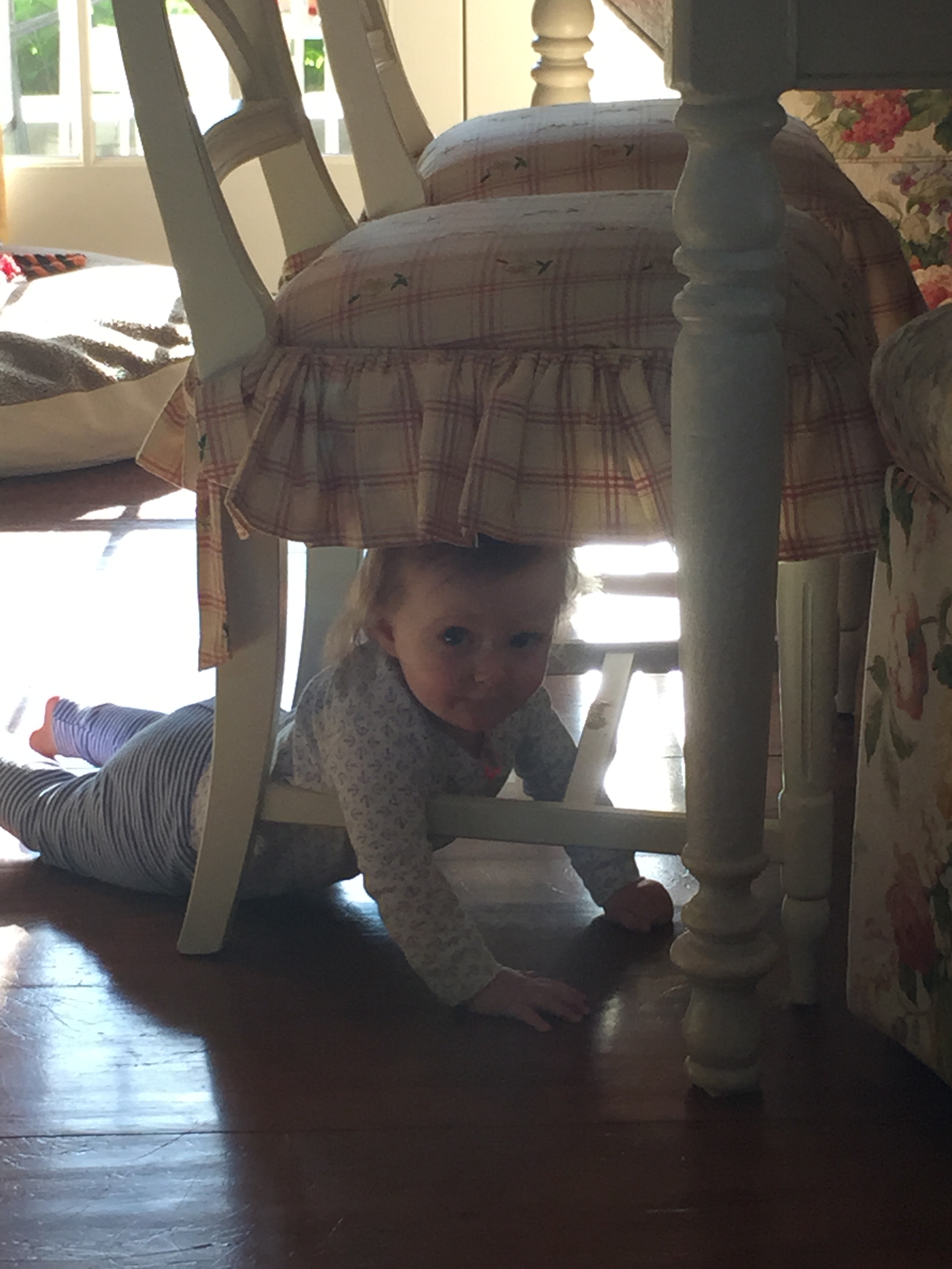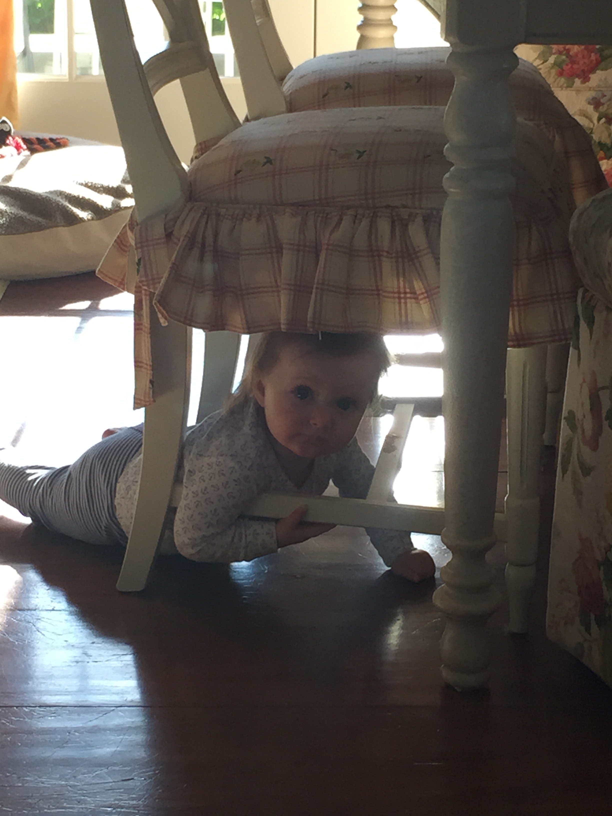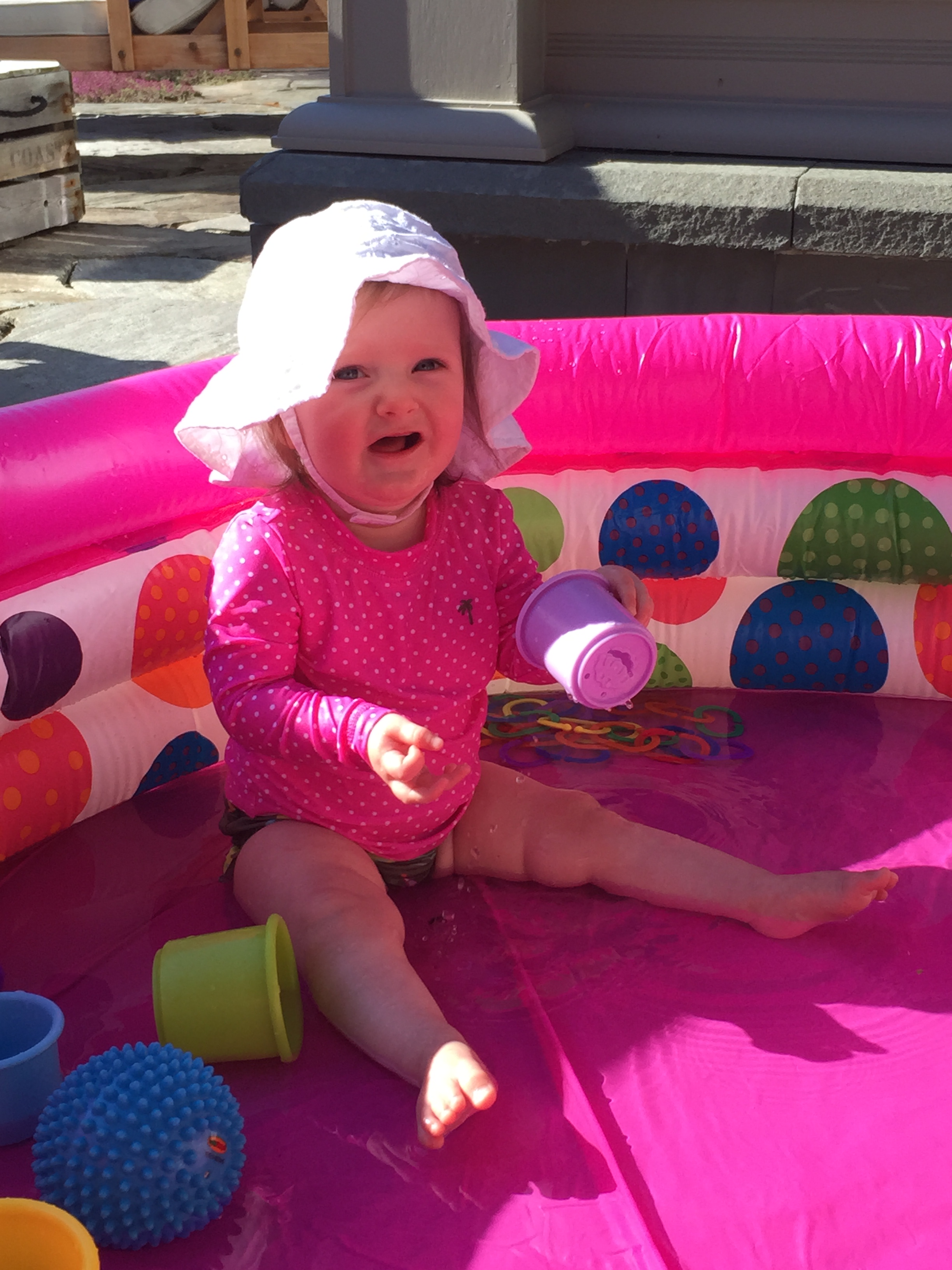 My dear Charlotte you just can’t sit still and mommy can’t turn her back on you for one second in fear that you will hurt yourself! You are on the move girl and the days where I could leave you in one place for a minute are long gone. You love to crawl, stand, go up the steps, splash in the dog’s water bowl, take the dog’s toys…it won’t be long before you are walking, and then we are really in trouble. Every day is an adventure and we have had so much fun this summer – pool, carnival, travel, music class – I’m sad that it is coming to an end. You are fast approaching your 1st Birthday – mommy can’t believe how quickly this year has gone by and I get sad seeing my little newborn baby grow into a little girl 🙂 Love you sweetie and keep mommy on her toes…it burns calories!