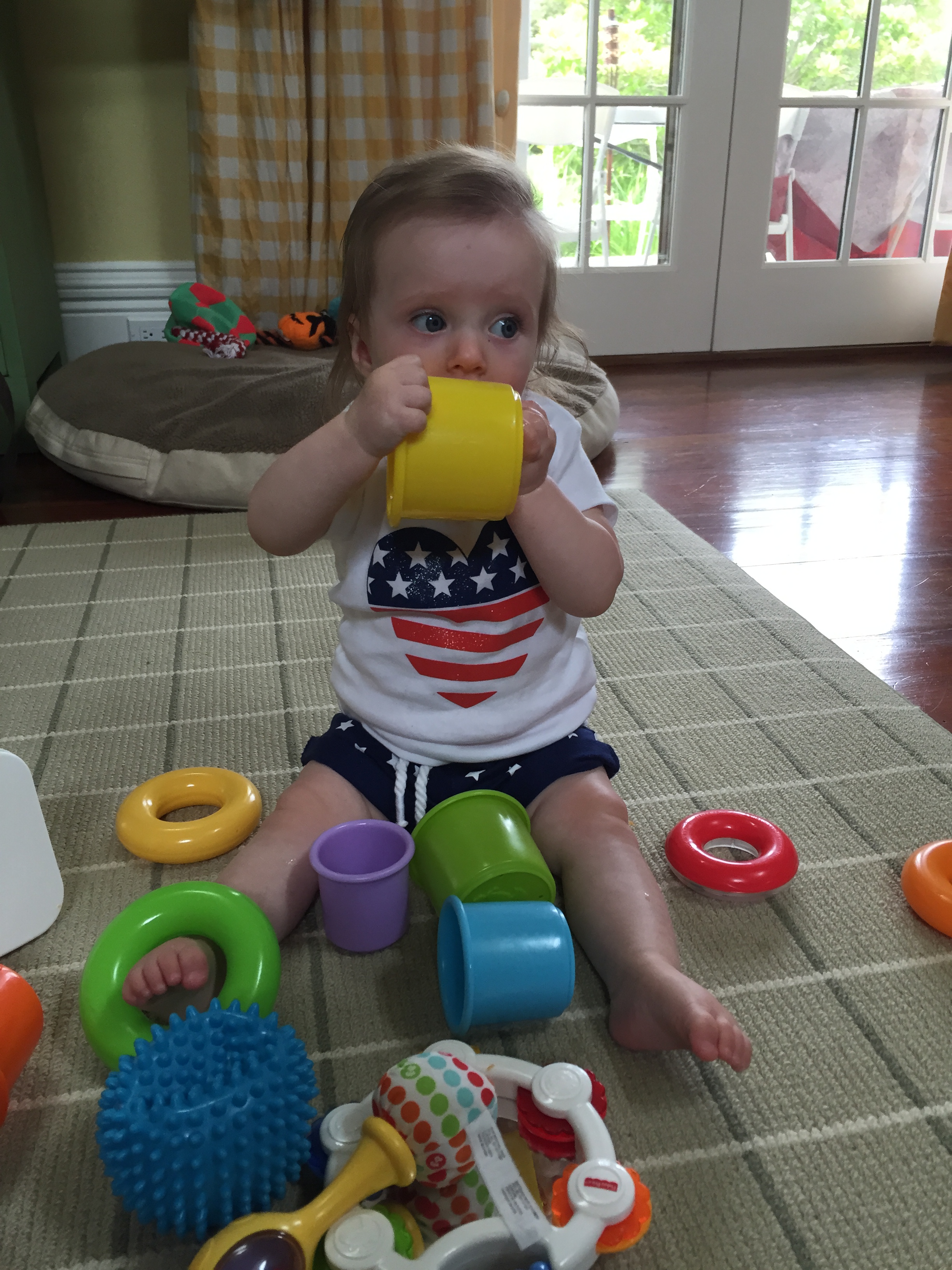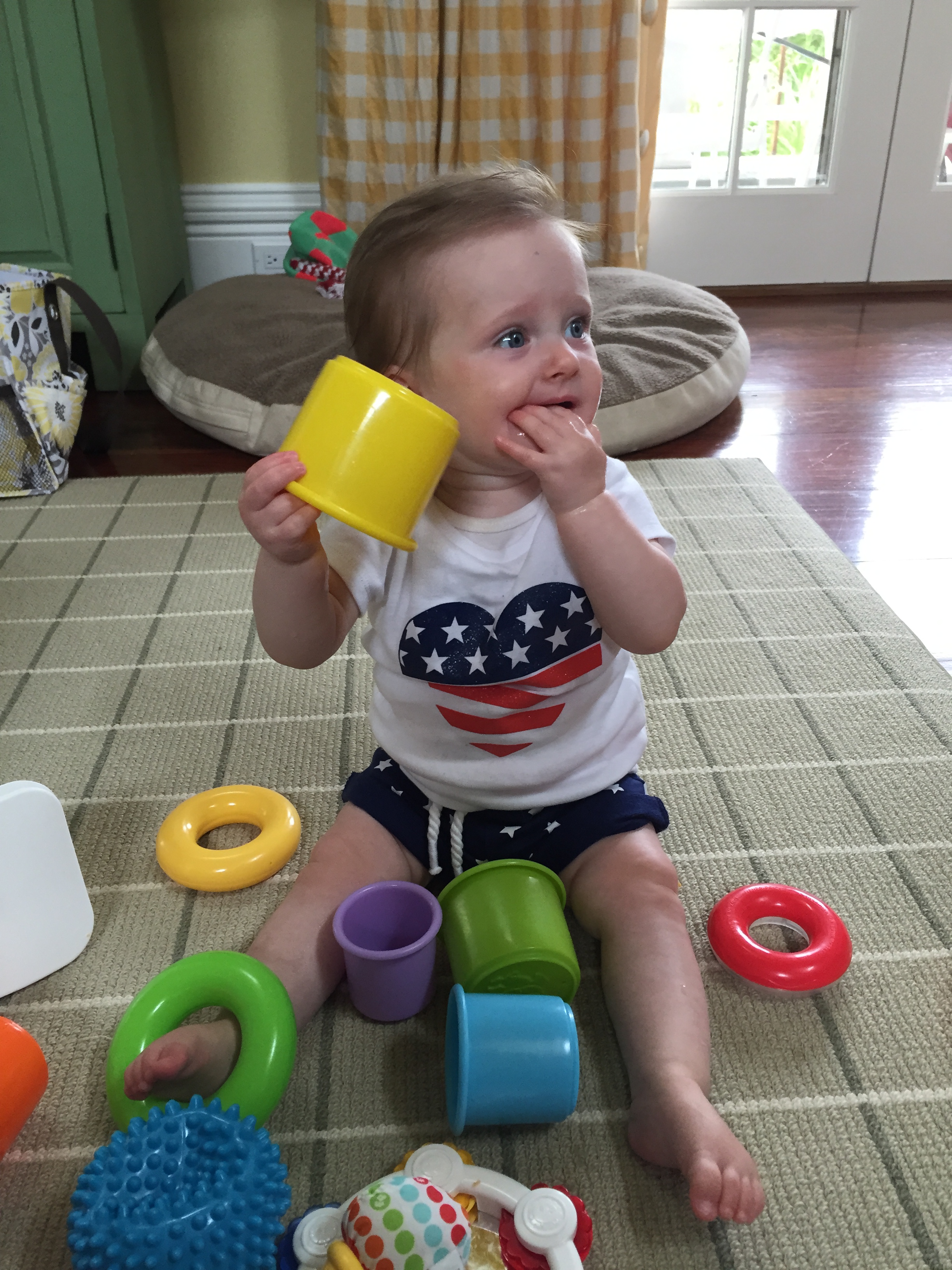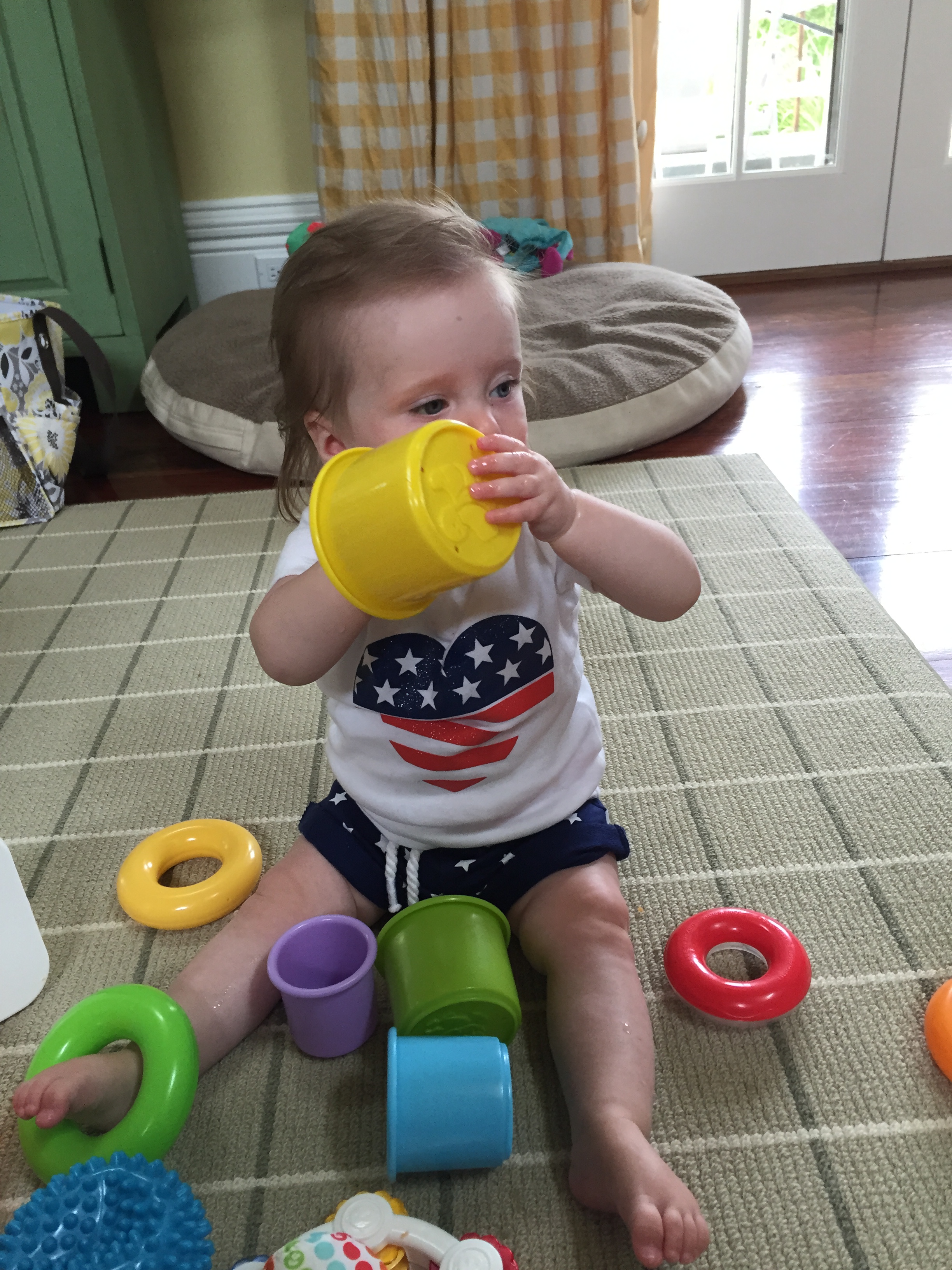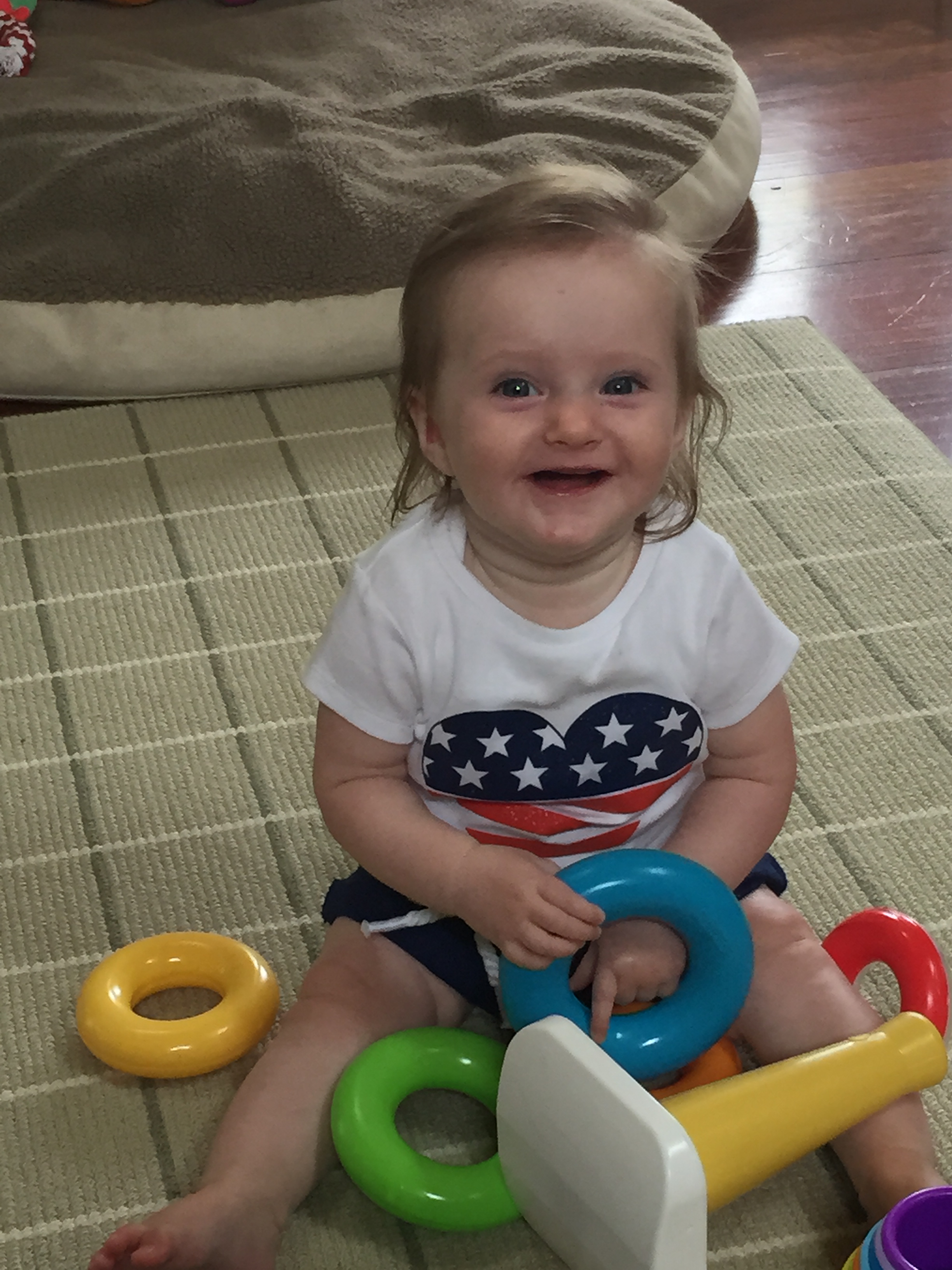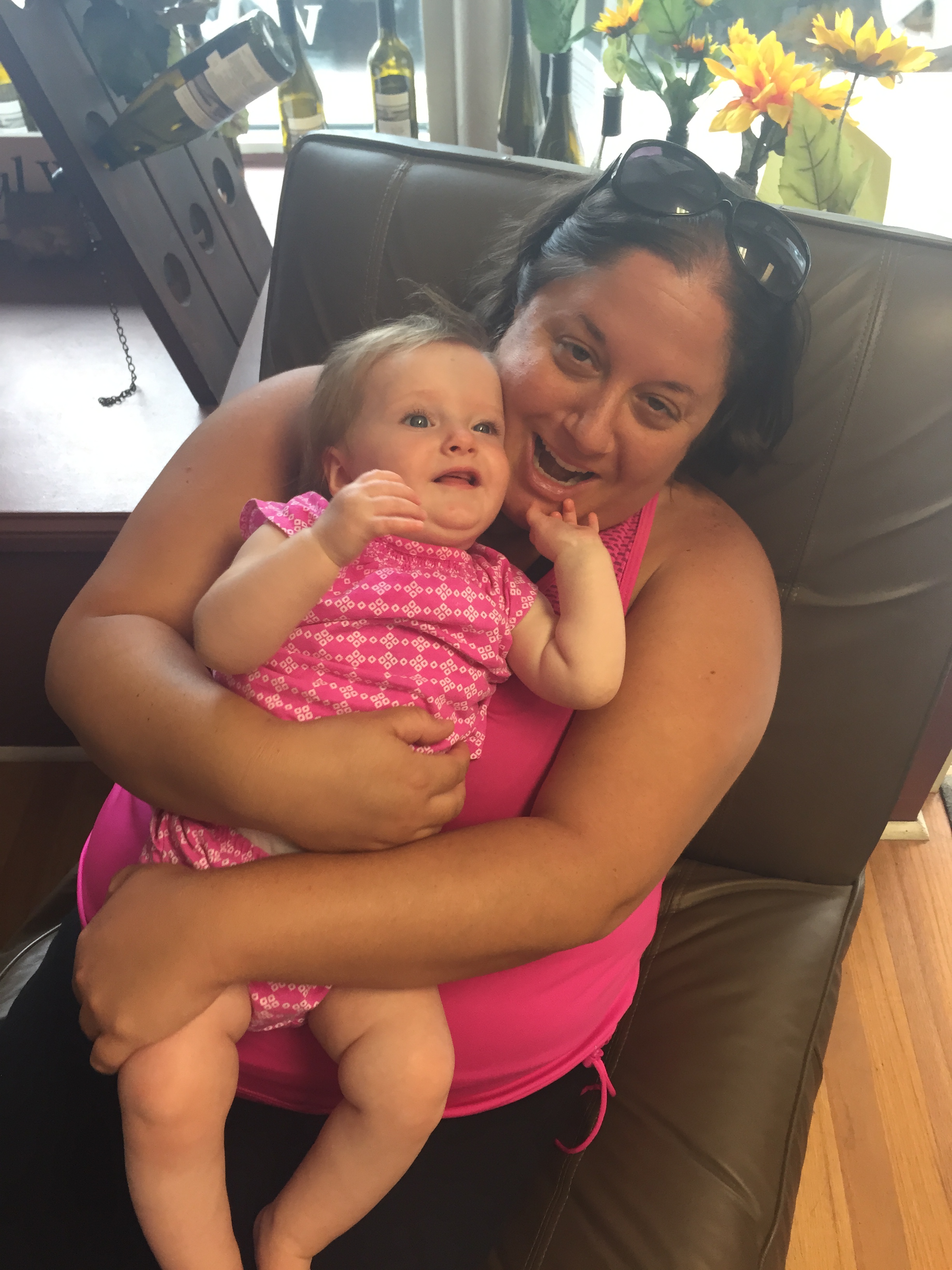 We traveled to Raleigh to finally meet your Aunt Treecie! She had waited a long time to meet you and we had a blast. We stayed at Aunt Treecie’s with Sergey, and their two Jack Russell Terriers – Misty and Jack. It was also Father’s Day Weekend – you celebrated your first one with Daddy – he loves you so much. Our trip was fun yet hot – it was record temps in the high 90’s but you survived and we went to the pool to cool off. We also visited with Nana, Aunt Jeanine, Aunt Katie and your cousin Brycen who were down for the week. We will definitely go visit Aunt Treecie again soon!