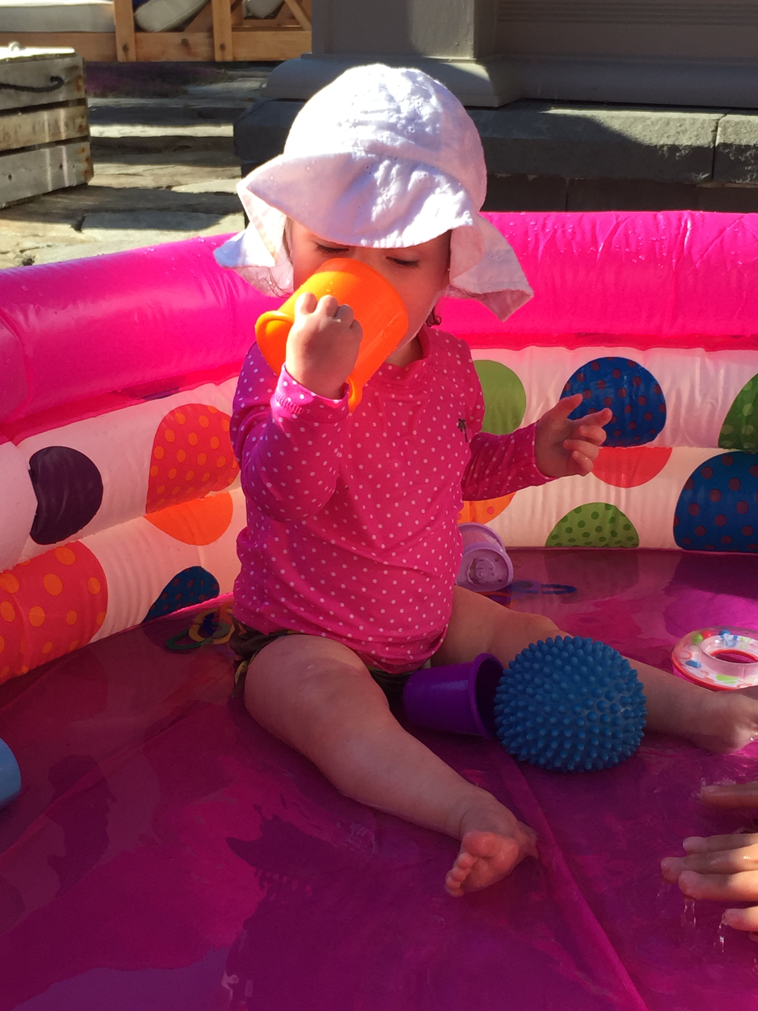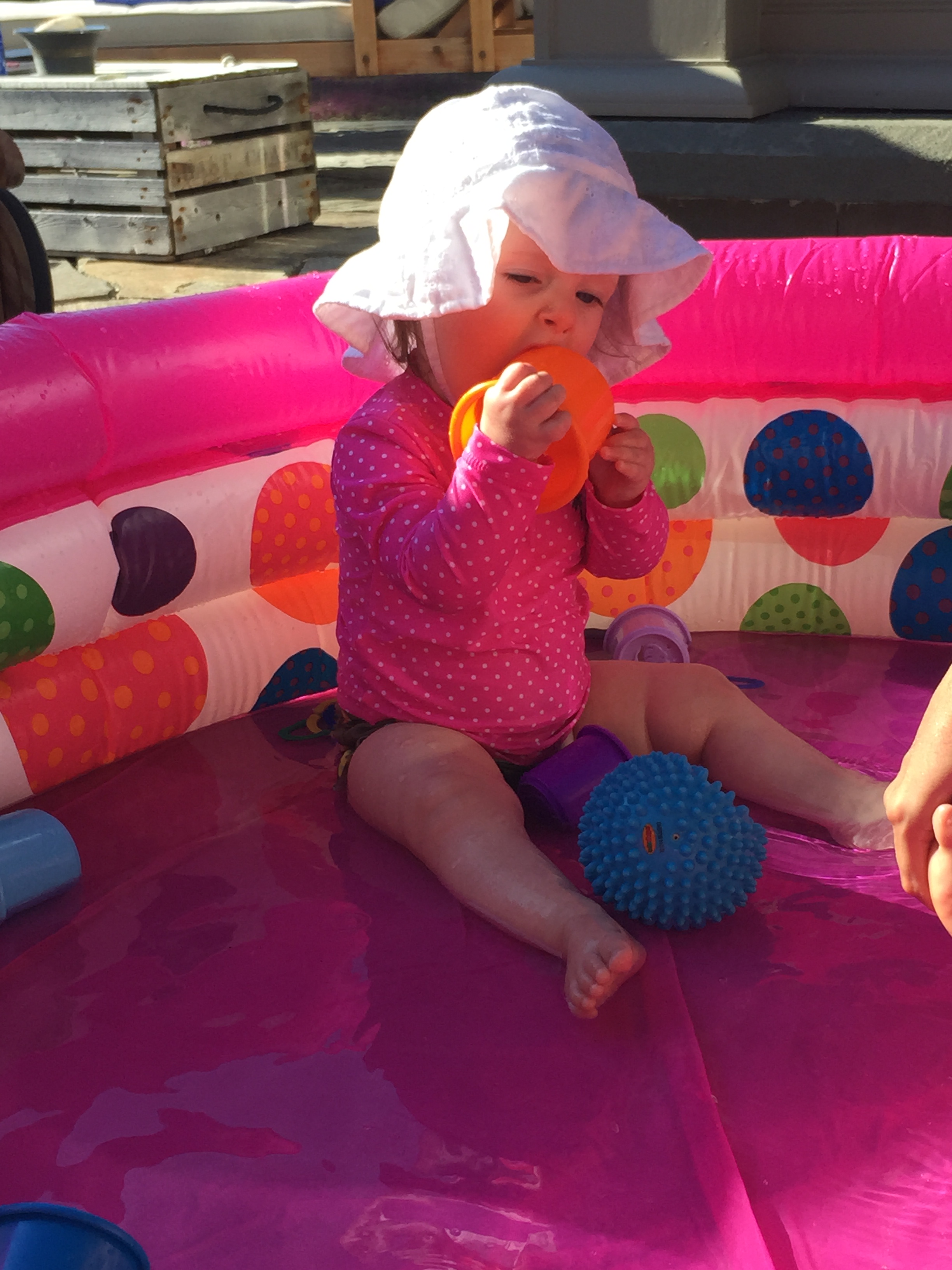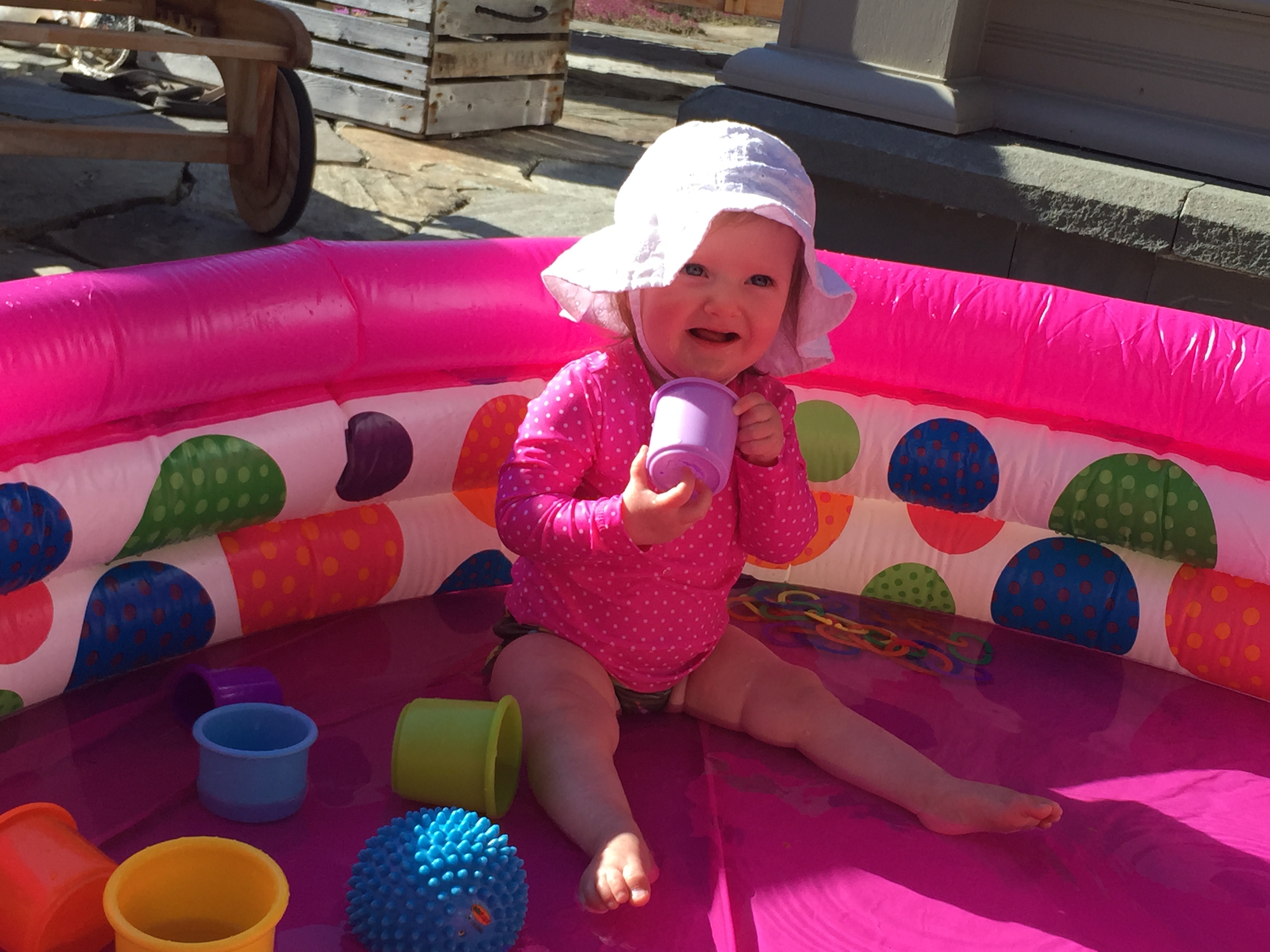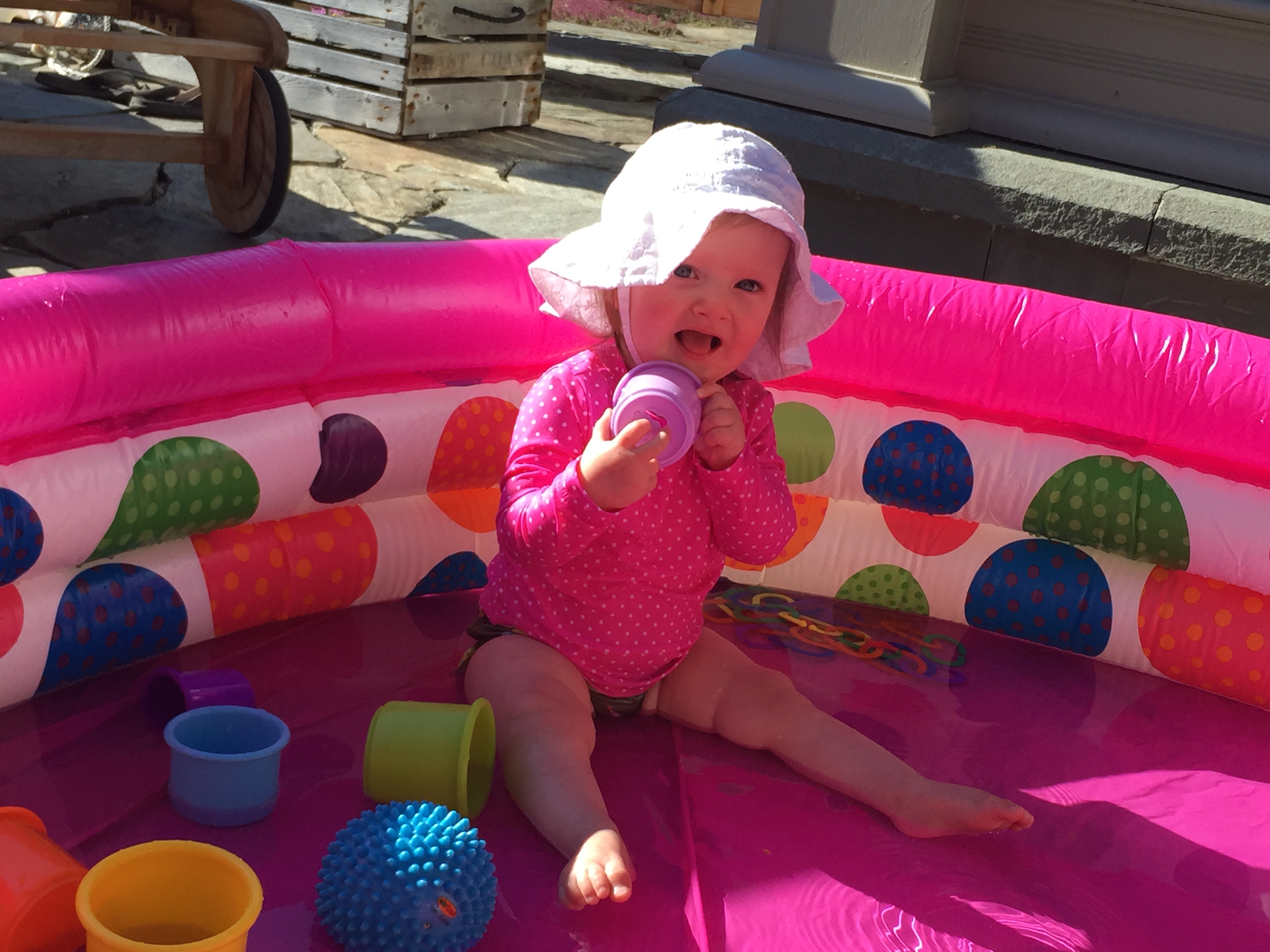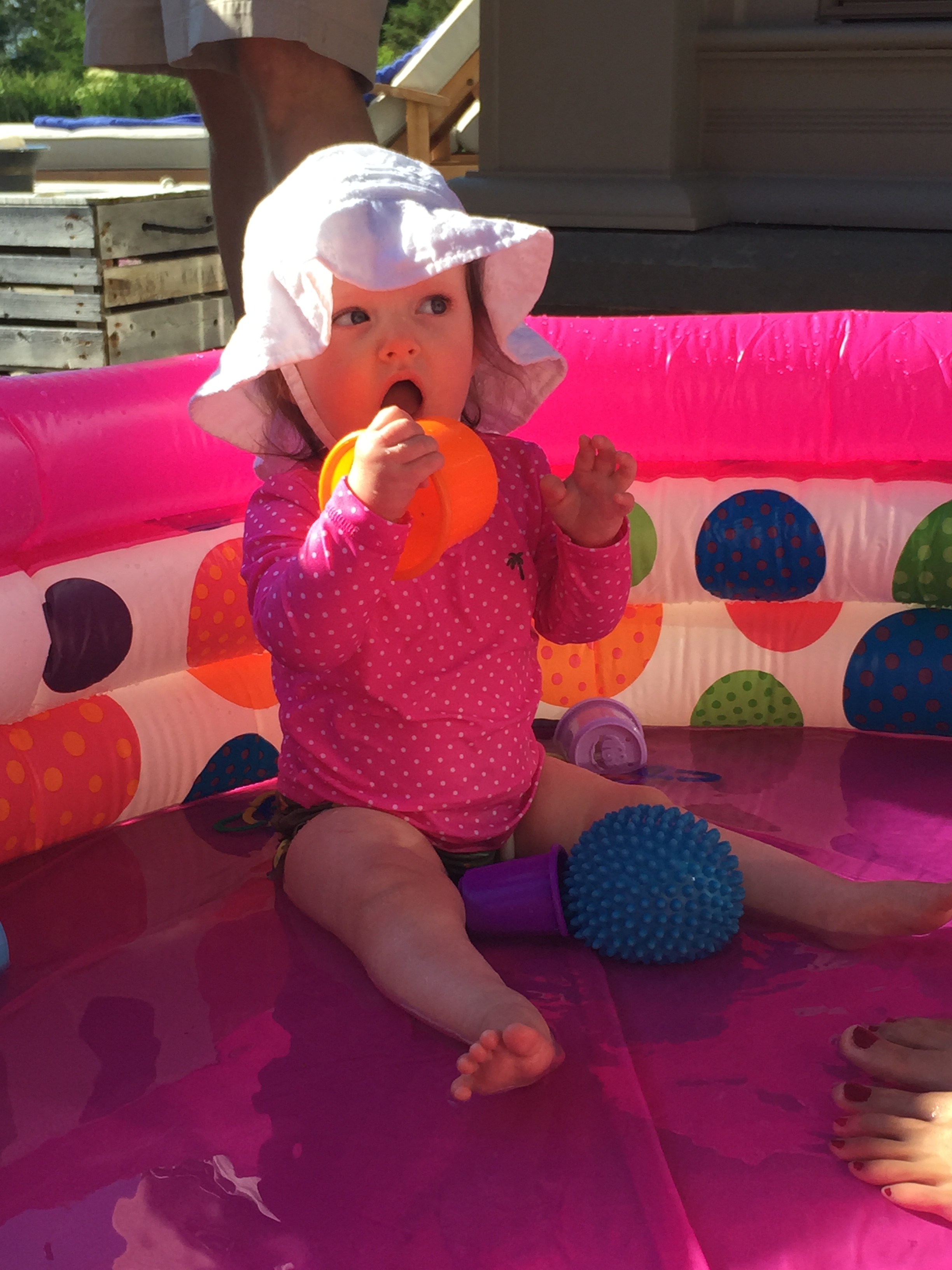 We traveled to Raleigh to finally meet your Aunt Treecie! She had waited a long time to meet you and we had a blast. We stayed at Aunt Treecie’s with Sergey, and their two Jack Russell Terriers – Misty and Jack. It was also Father’s Day Weekend – you celebrated your first one with Daddy – he loves you so much. Our trip was fun yet hot – it was record temps in the high 90’s but you survived and we went to the pool to cool off. We also visited with Nana, Aunt Jeanine, Aunt Katie and your cousin Brycen who were down for the week. We will definitely go visit Aunt Treecie again soon!