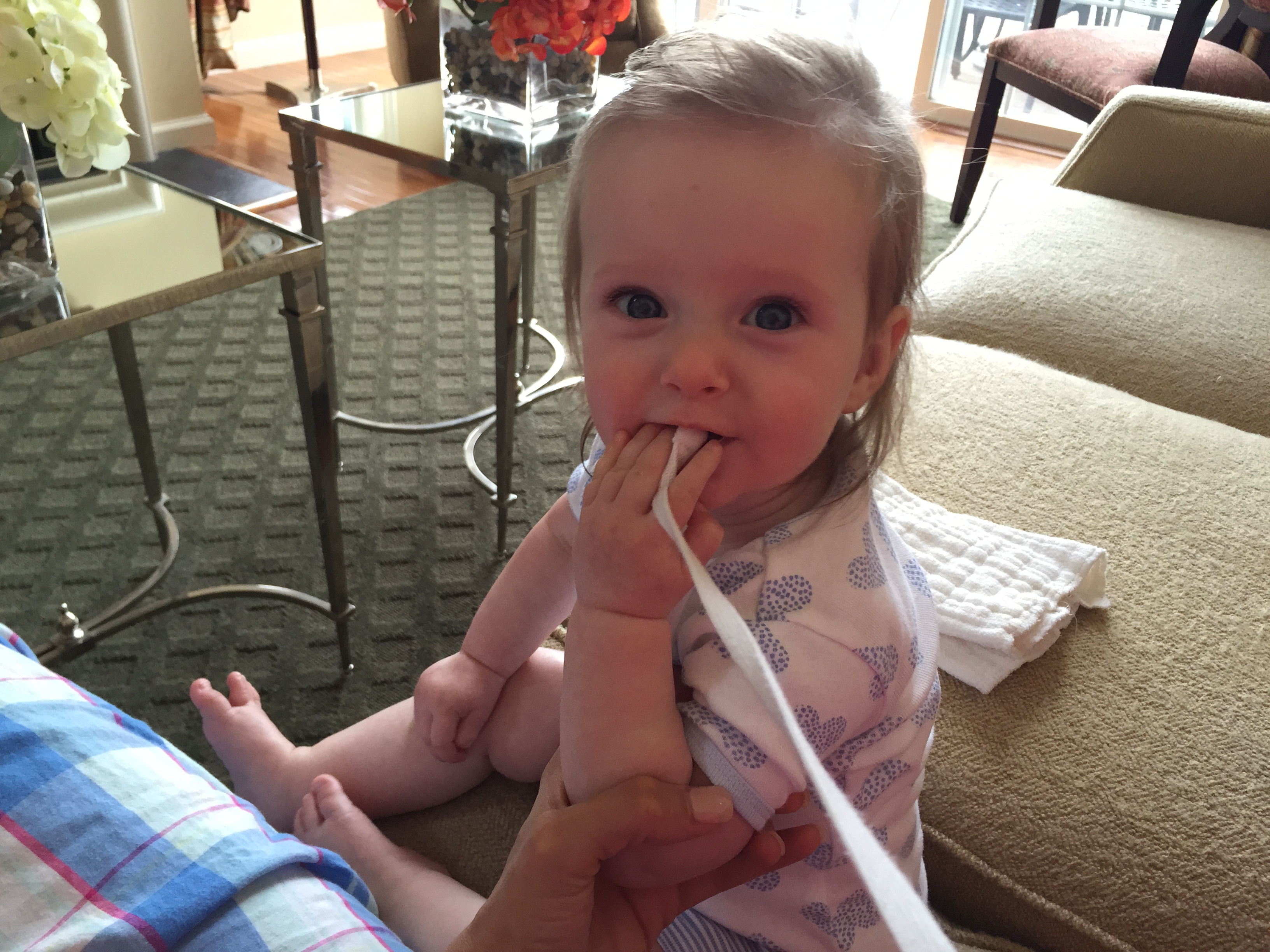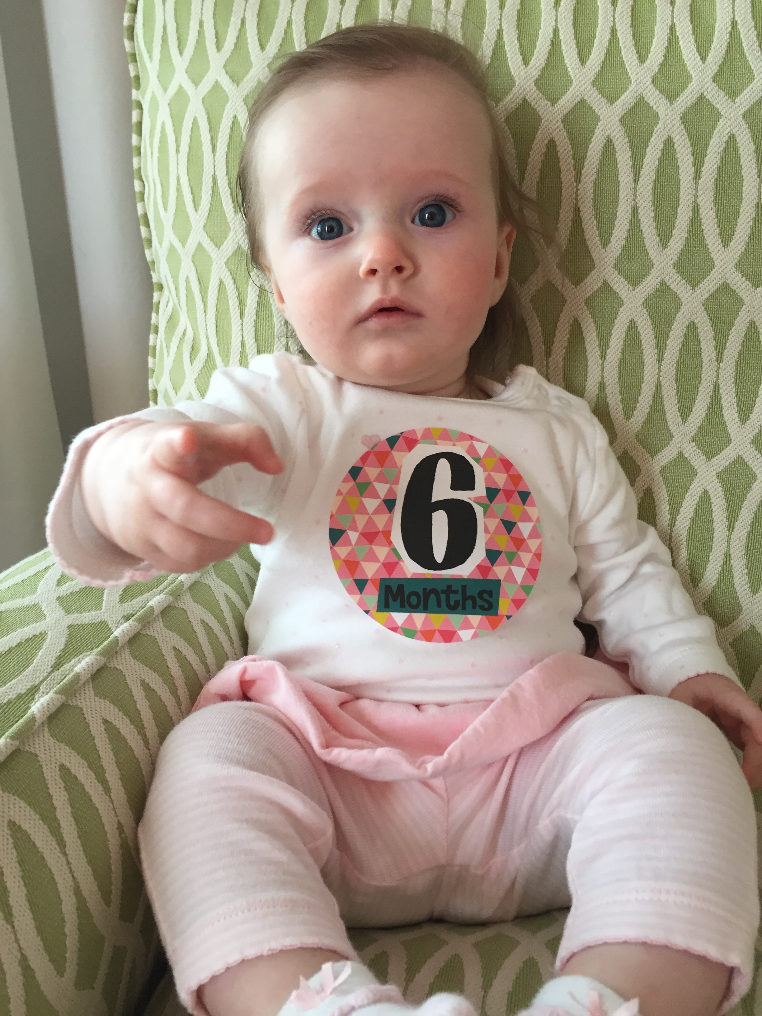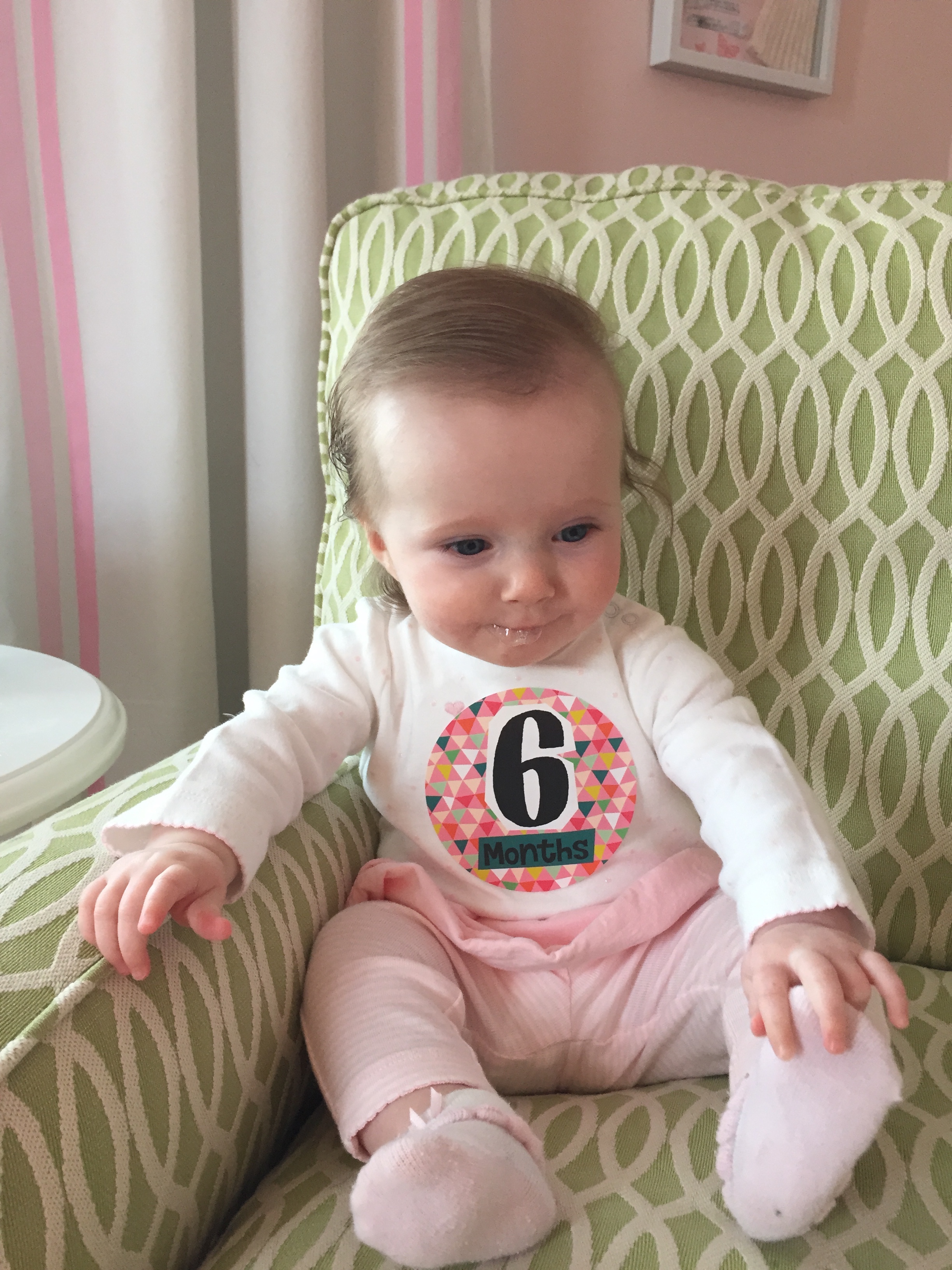 Charlotte you turned 6 months old and we had our doctors appointent which went very well! You weigh 15.35 lbs (35th percentile) and measure 26 inches long (84th percentile). We finally got the okay from Dr. Wong to start solid foods which is very exciting. First is rice cereal and then oatmeal. Mommy is going to make some carrots for you to try, yum yum! The goal is to have you on table food by our next appointment in 3 months. Also, you should be crawling and saying Ma Ma and Da Da by 9 months old – we have a lot of work ahead of us!!! He also said that you need to stop waking up at night because you are exhauting mommy 🙂 Sleep, sleep, sleep – by 7 months he said there’s no reason for you to wake up. Love you baby girl xoxoxoxoxo