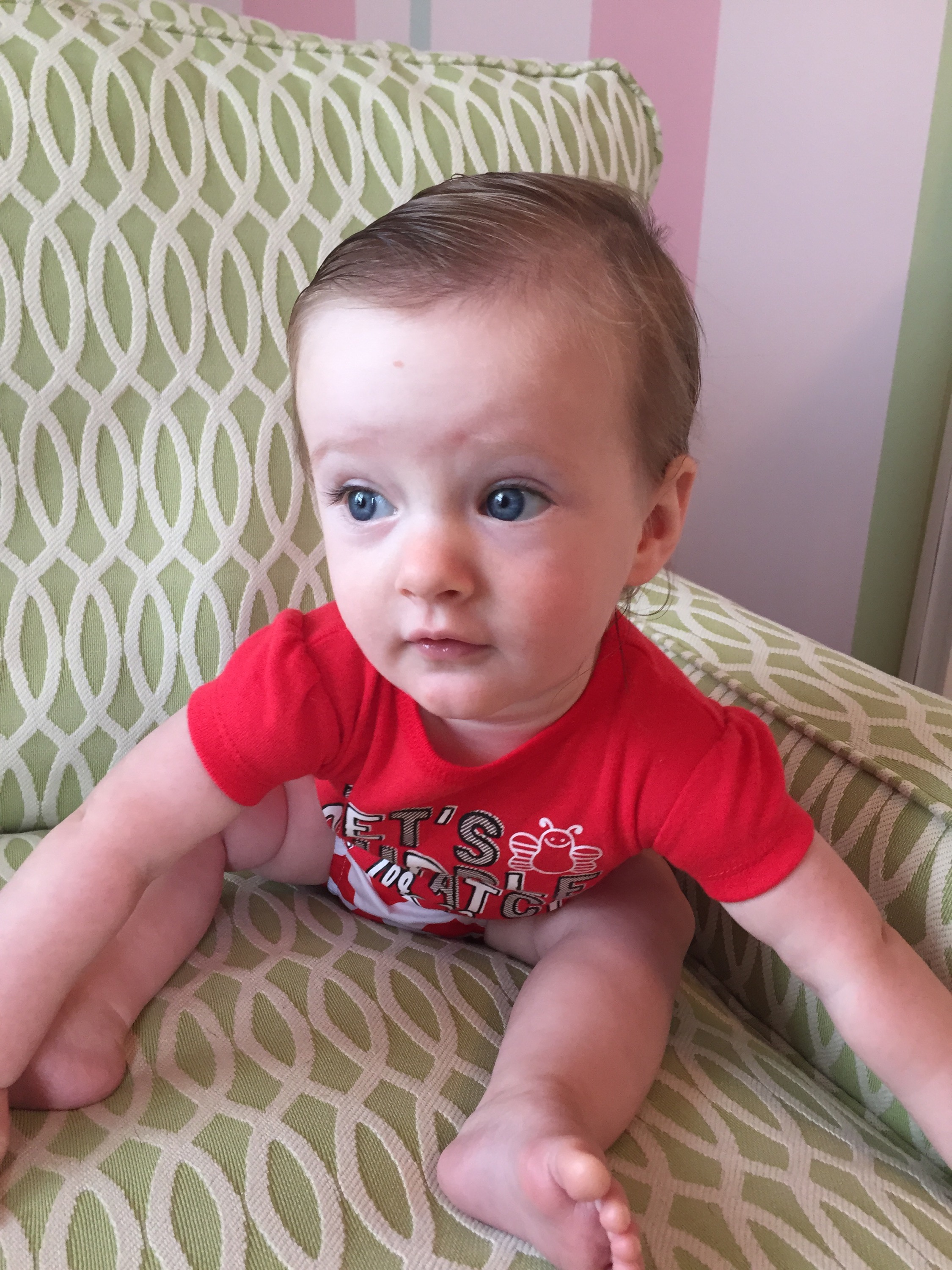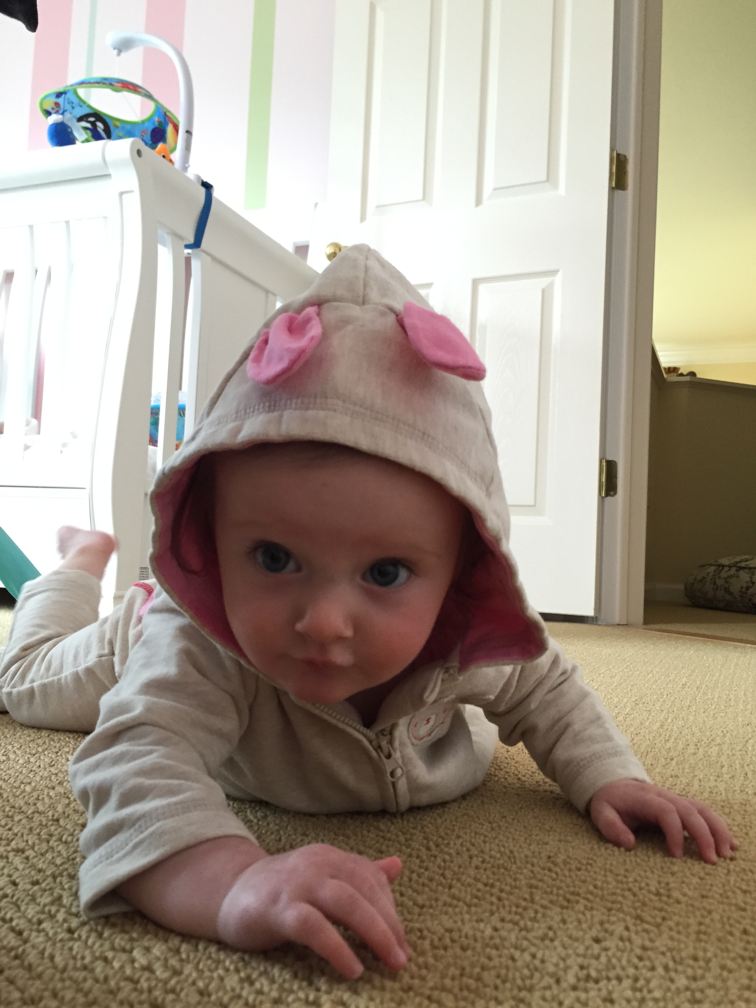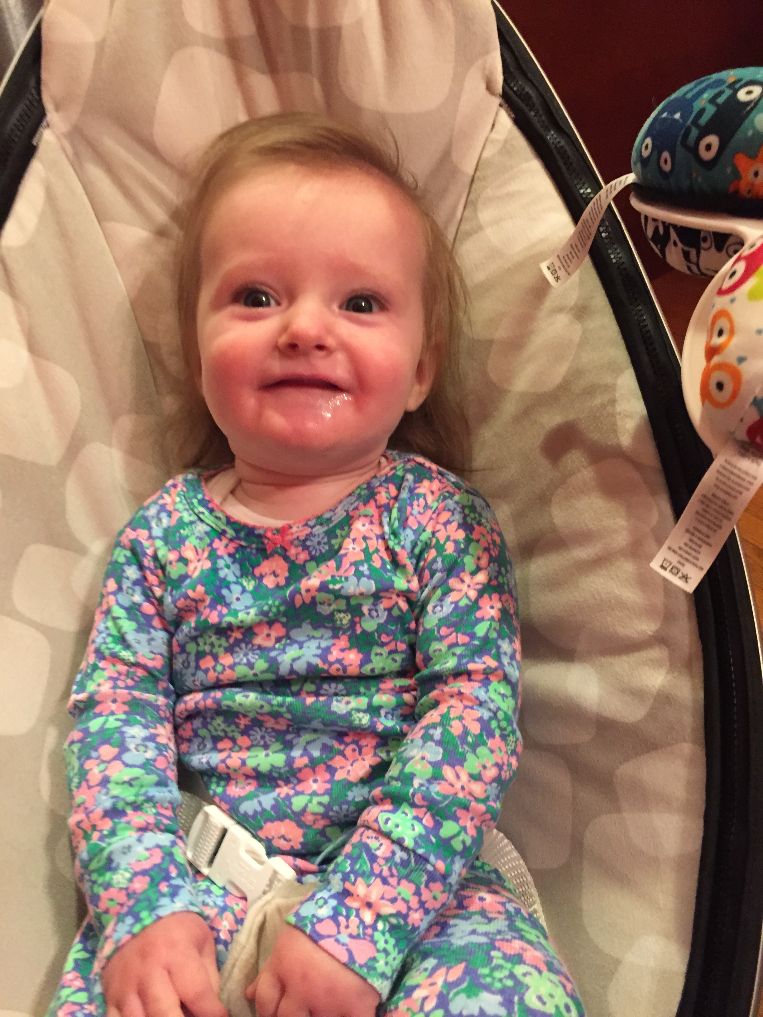 Charlotte you turned 6 months old and we had our doctors appointent which went very well! You weigh 15.35 lbs (35th percentile) and measure 26 inches long (84th percentile). We finally got the okay from Dr. Wong to start solid foods which is very exciting. First is rice cereal and then oatmeal. Mommy is going to make some carrots for you to try, yum yum! The goal is to have you on table food by our next appointment in 3 months. Also, you should be crawling and saying Ma Ma and Da Da by 9 months old – we have a lot of work ahead of us!!! He also said that you need to stop waking up at night because you are exhauting mommy 🙂 Sleep, sleep, sleep – by 7 months he said there’s no reason for you to wake up. Love you baby girl xoxoxoxoxo