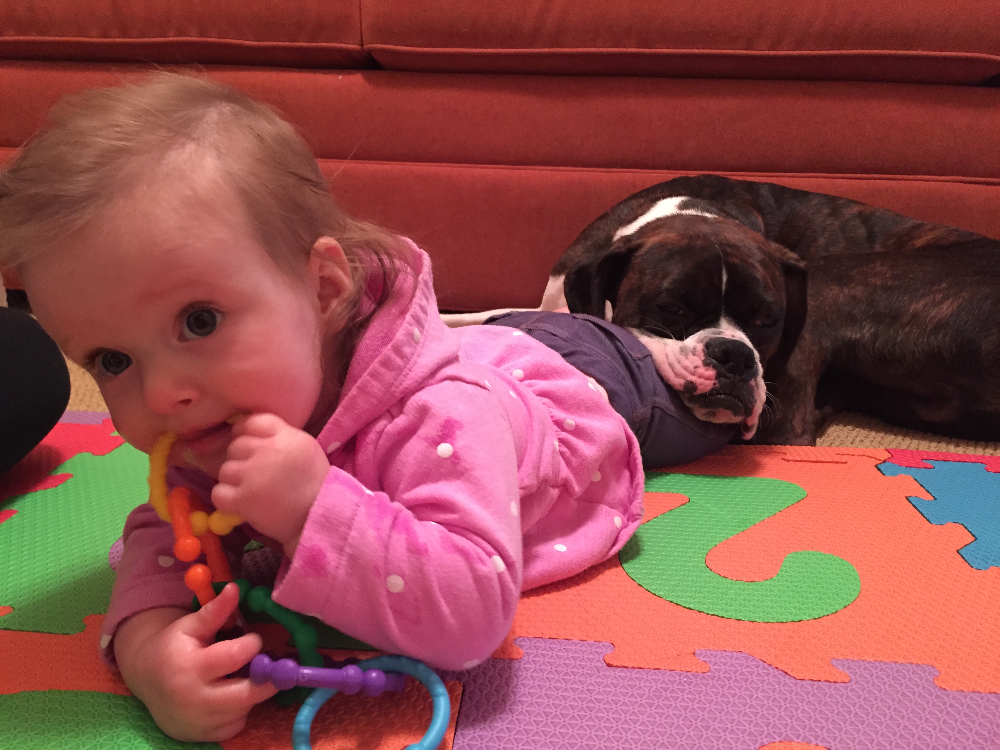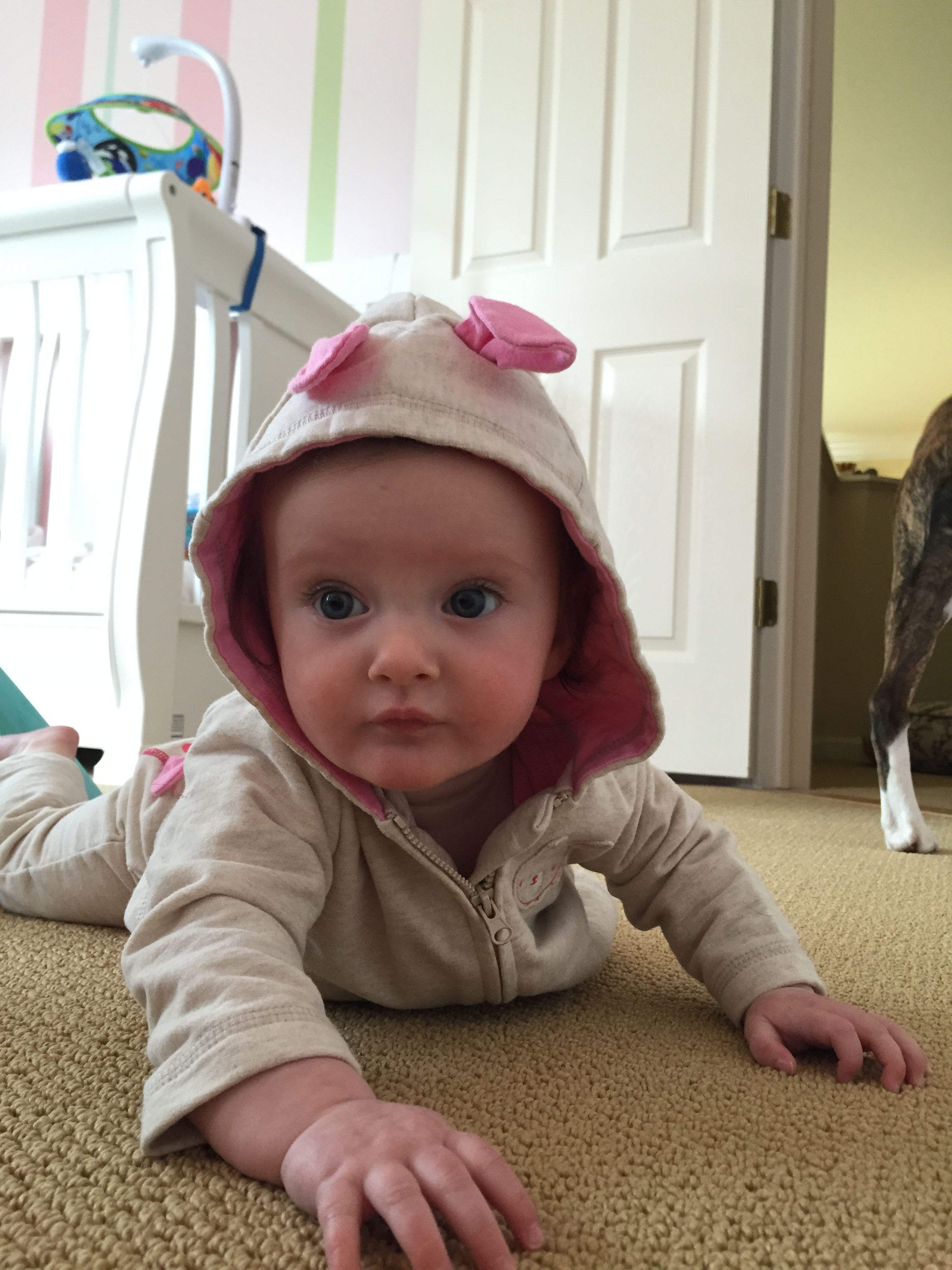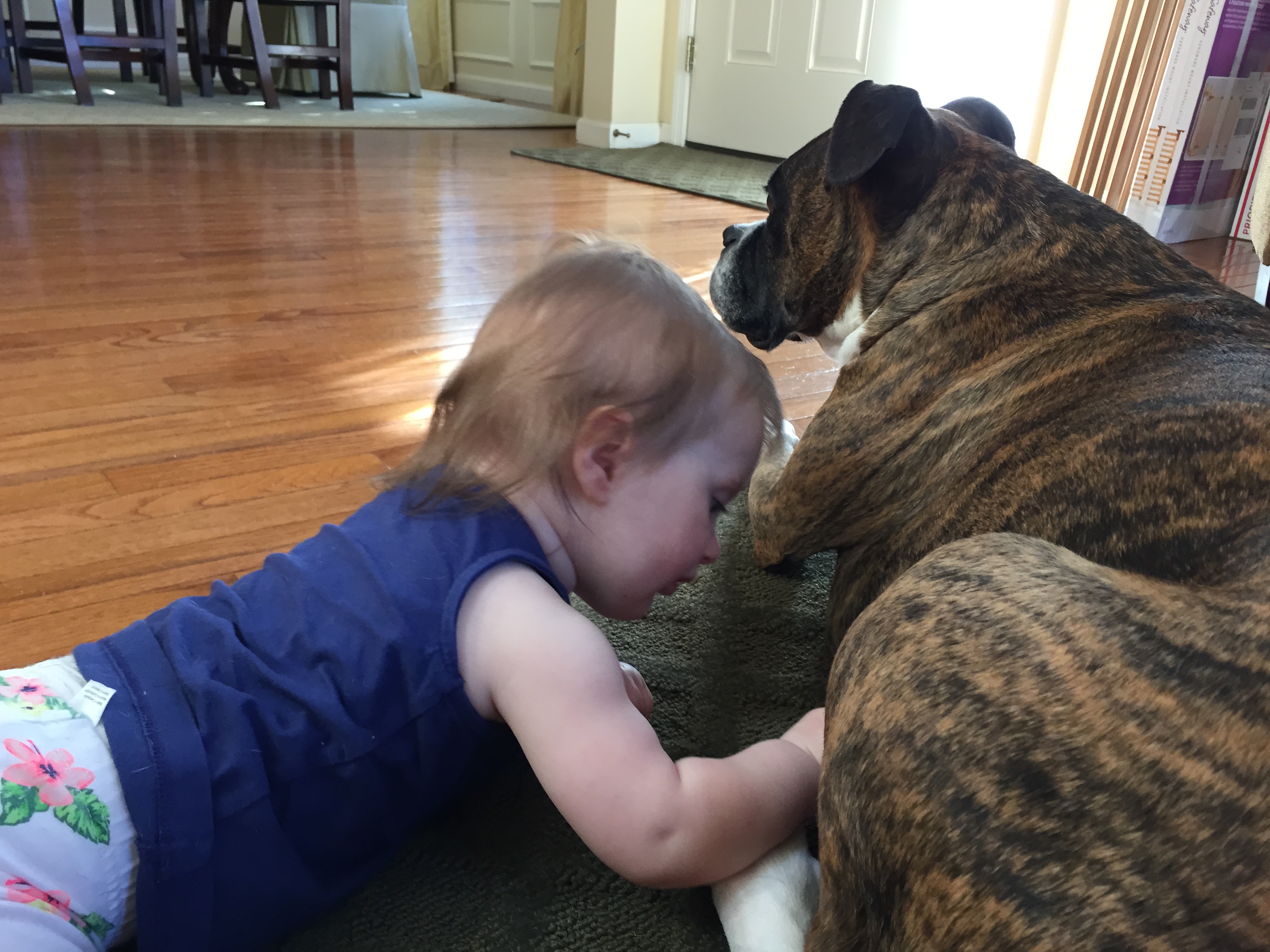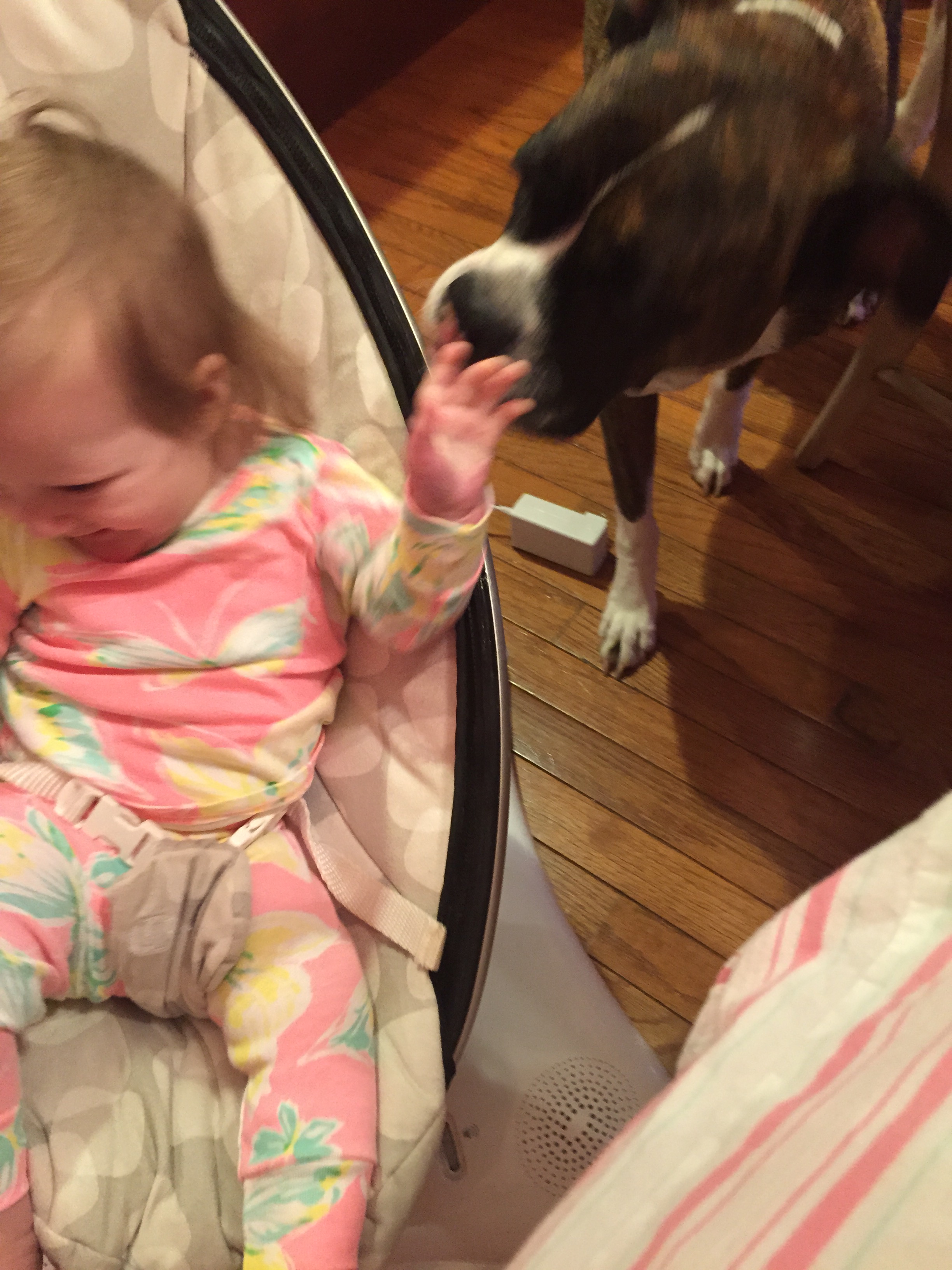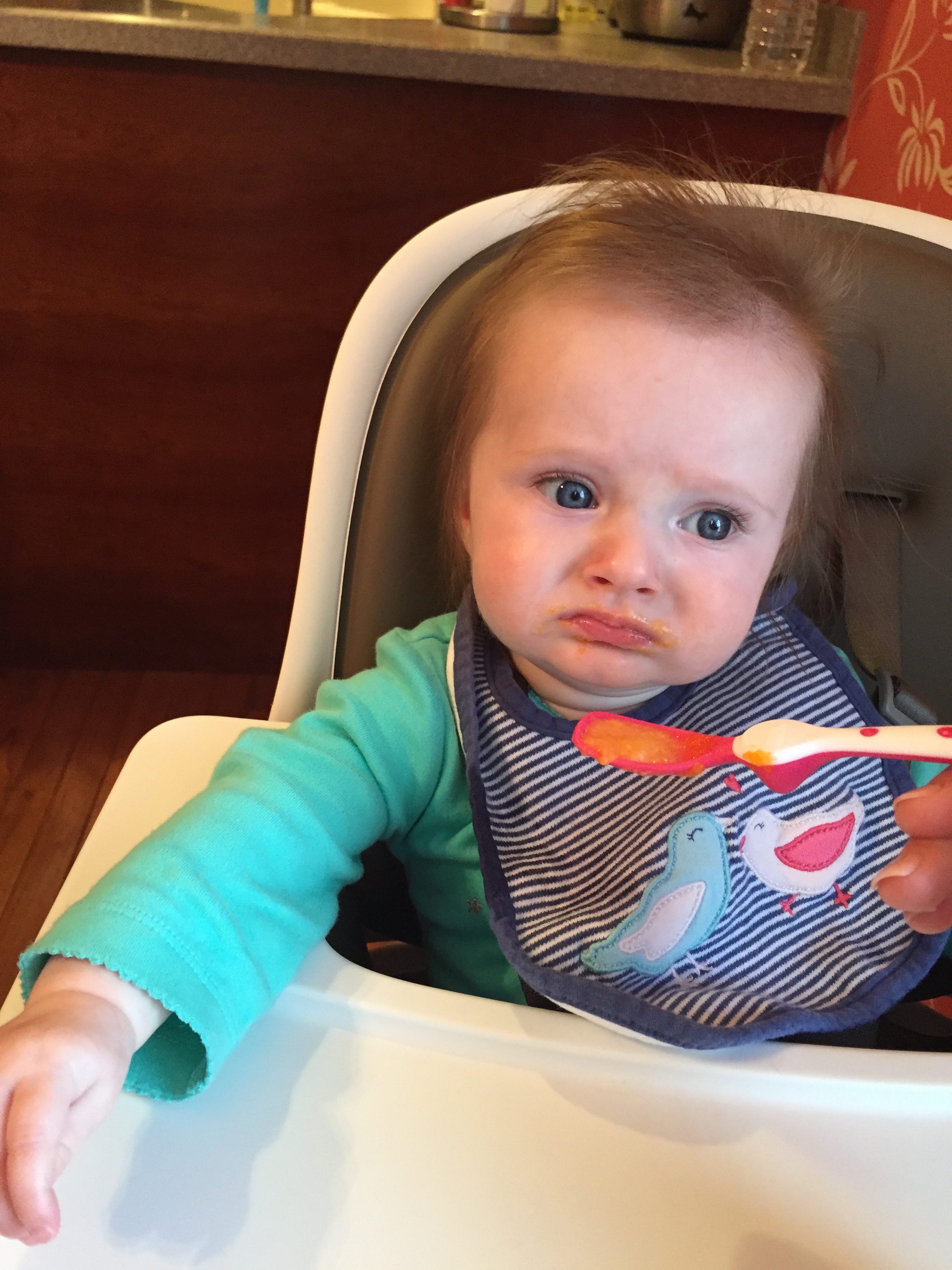 Charlotte we have moved on to fruits and veggies in your diet and boy has it been fun! Mommy has been making you homemade purees which has been pretty simple. The first veggie you tasted was carrots and you HATED them. I know hate is a strong word but you couldn’t spit them out fast enough. Since then we have tried avocado, butternut squash, sweet potato and banana – all of which you love 🙂 Next we are going to try apples and pears which I’m sure you will love! Tyson and Layla sit at the side of your highchair waiting for you to throw them a dropping or two – it won’t be long before you are feeding them your food.