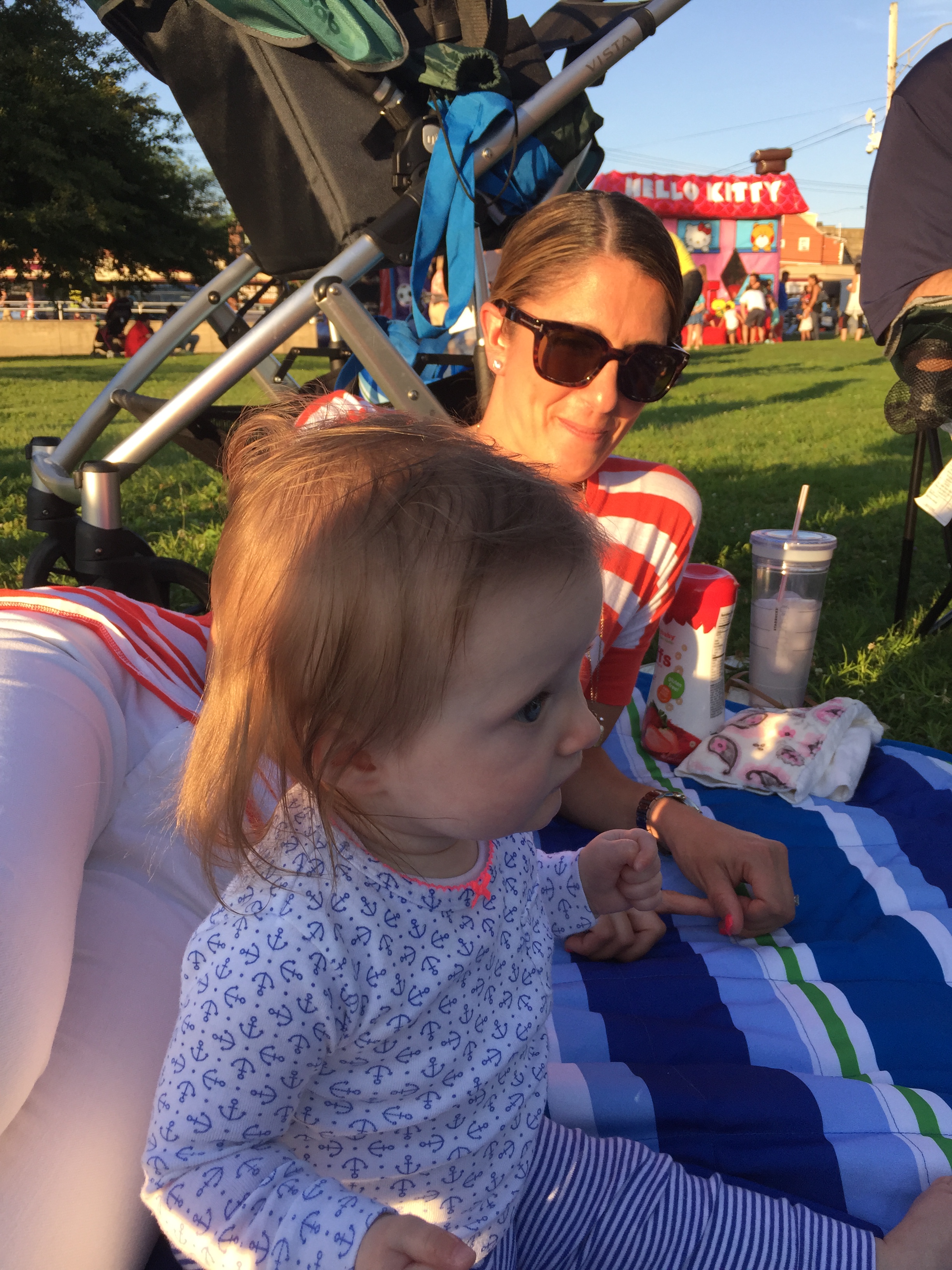 Charlotte we celebrated your first Memorial Day together. On Sunday we had the annual B Grizz Memorial Day Extravaganza which is long for your father’s BBQ – we cookout and drink with friends – Yum O!!! On Memorial Day we went to the parade in Tuxedo which was pretty lame – a total of 100 people if that and no candy. What kind of parade doesn’t give candy? We had fun regardless, and then sat outside to have lunch and enjoy the nice weather. Looking forward to many more BBQ celebrations with you!!!!