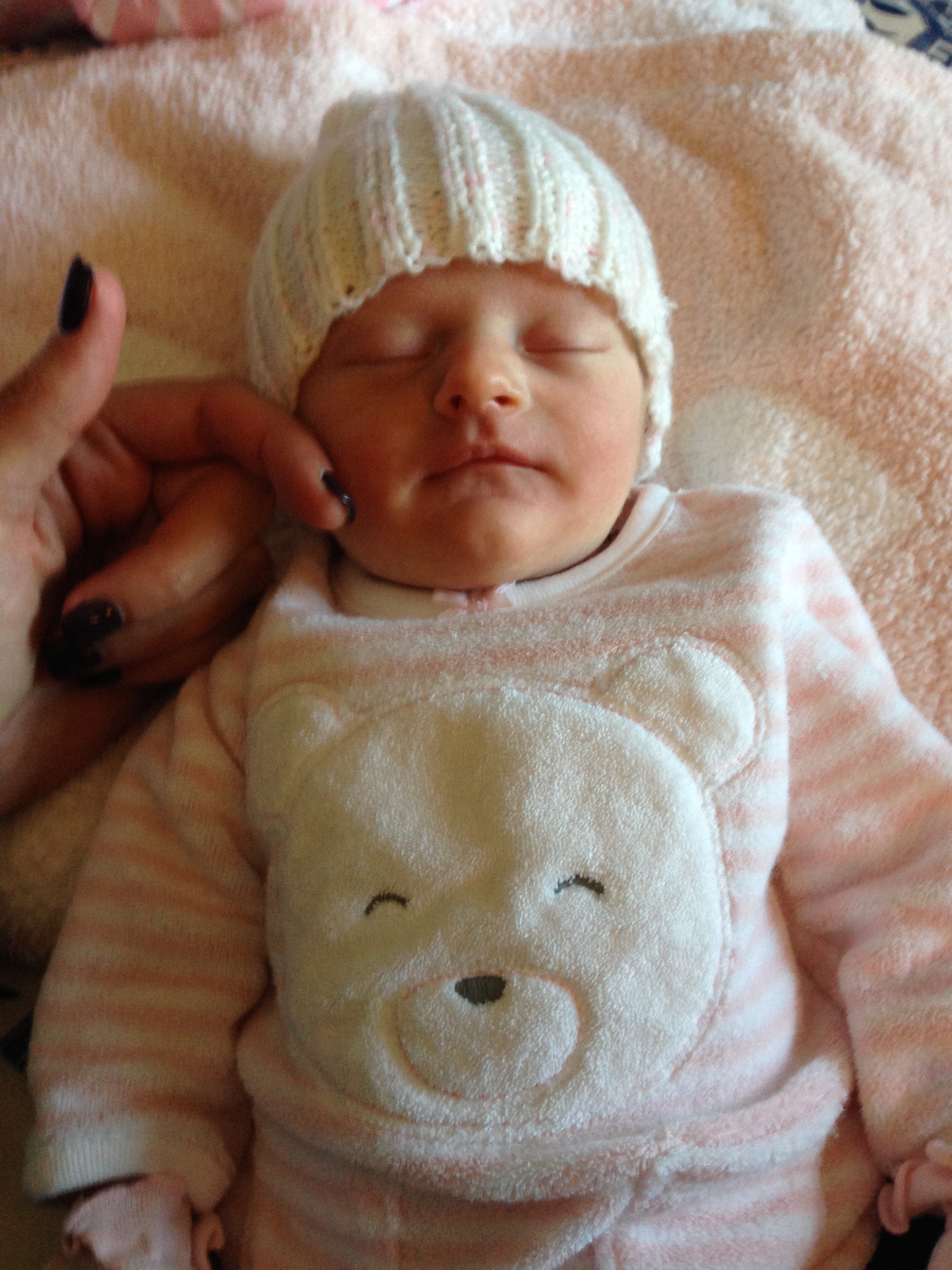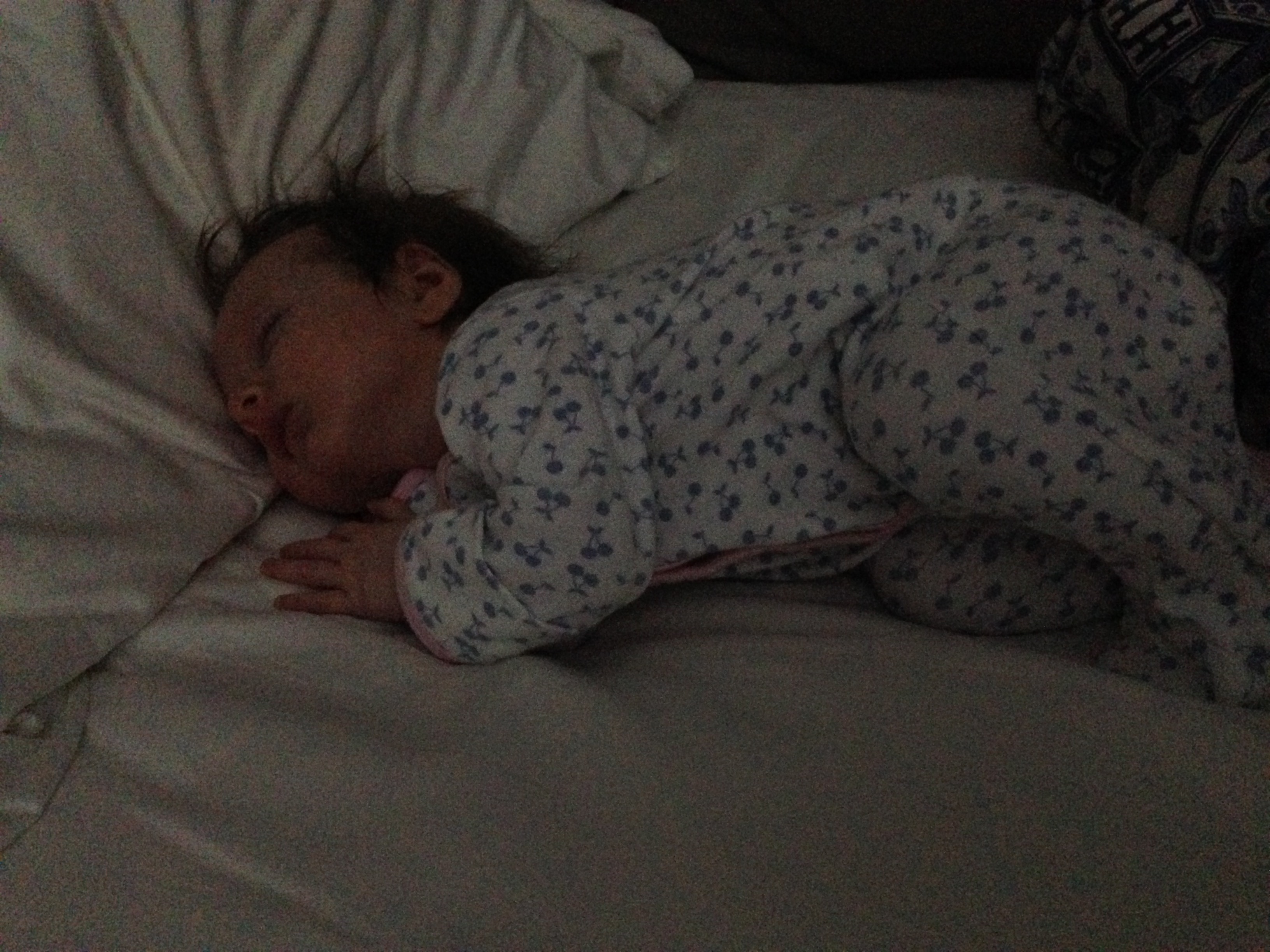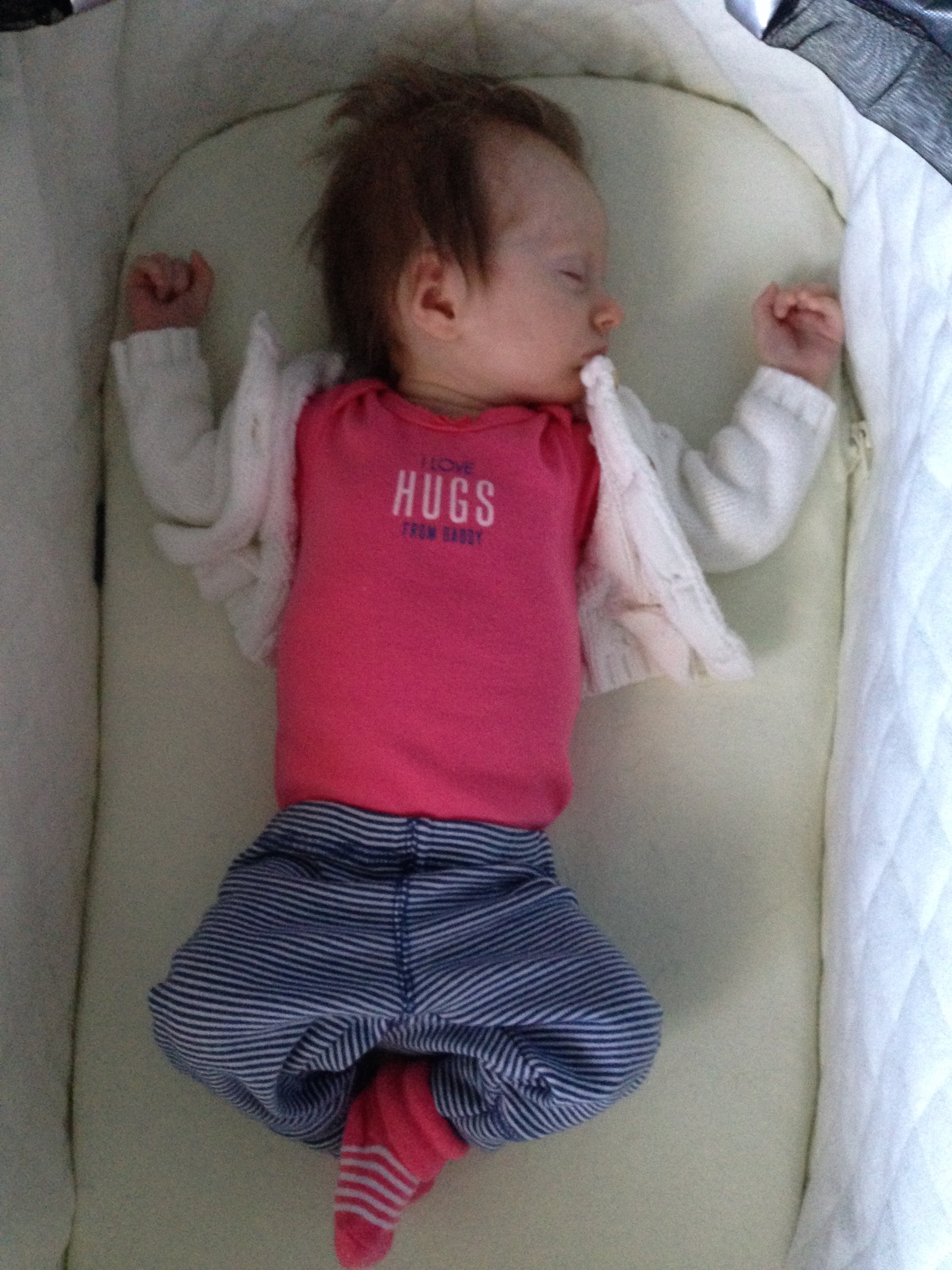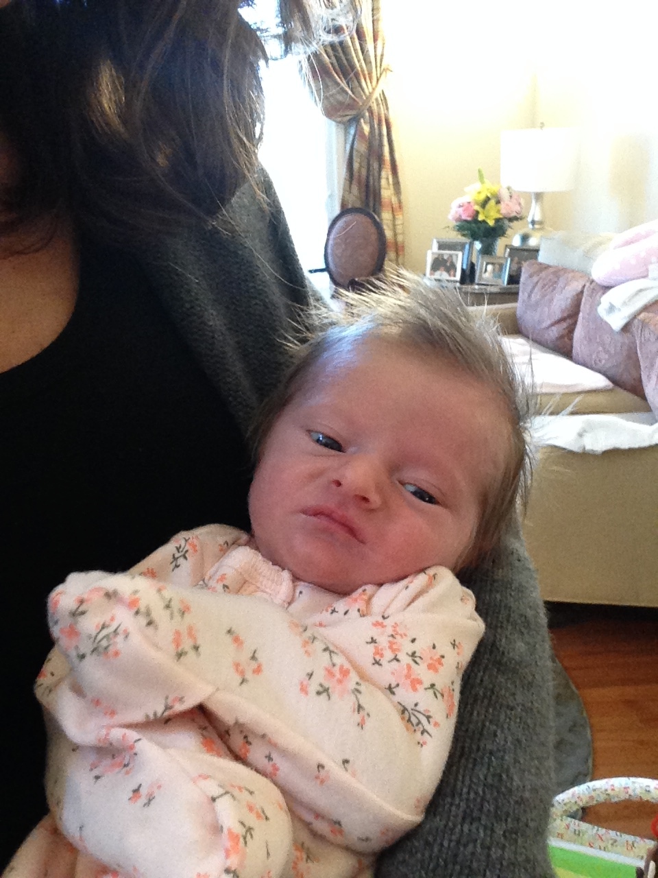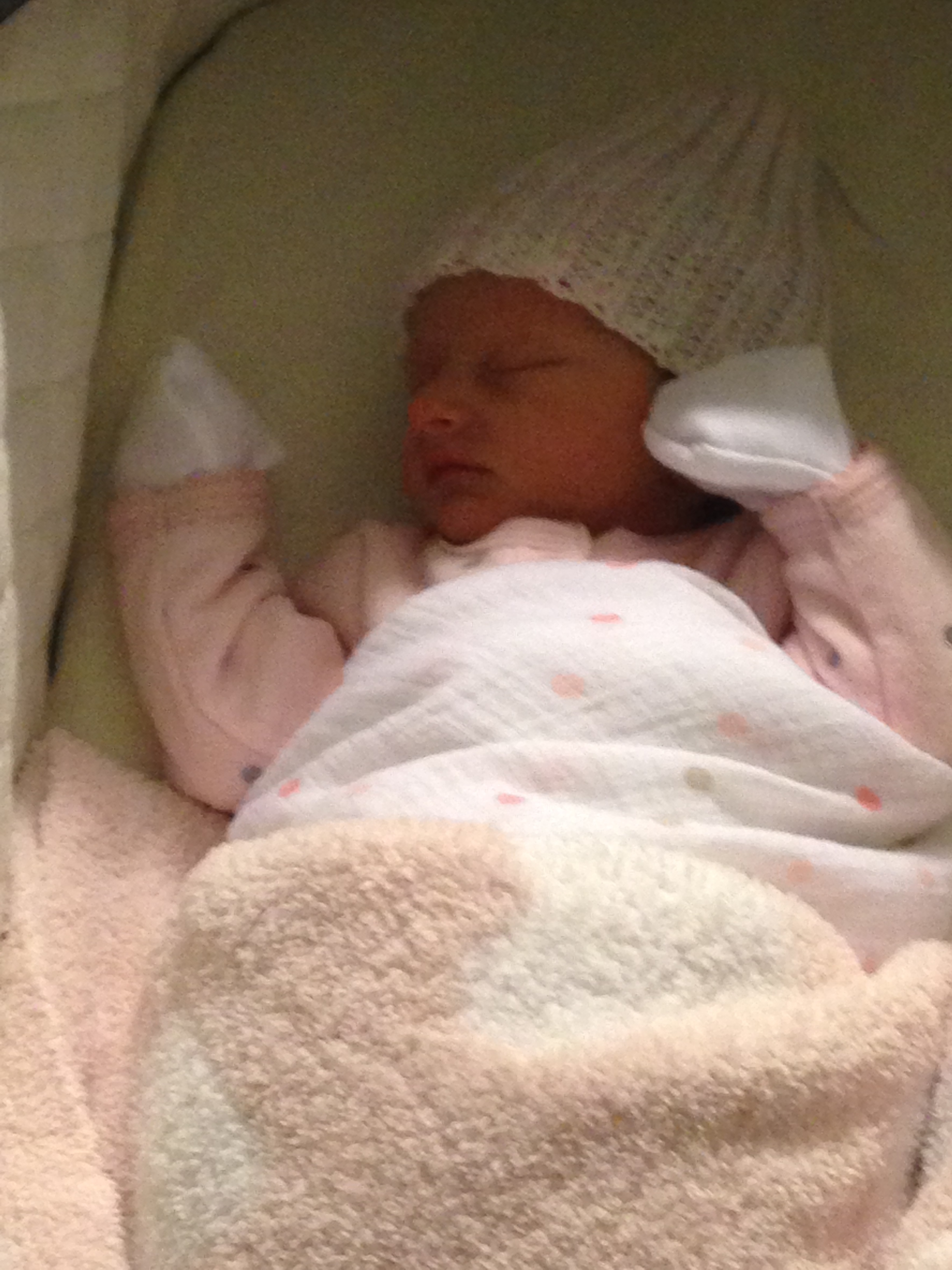 Charlotte you are almost 5 weeks old now and we survived our first month together…I have to say it went by very quickly. You are getting big and starting to pack on more weight which makes mommy very happy. At your doctor’s appointment this week you weighed 7lbs 2 oz and were 21 1/2 inches long. You also got your second hepatitis shot and you did not like it…and mommy did not like seeing you scream 😦 You are so much more alert and aware of your surroundings – watching everything, smiling and cooing. And on the down side you like to pee every time mommy goes to change your diaper – this time you peed all over our bed…on mommy’s side – no bueno!
