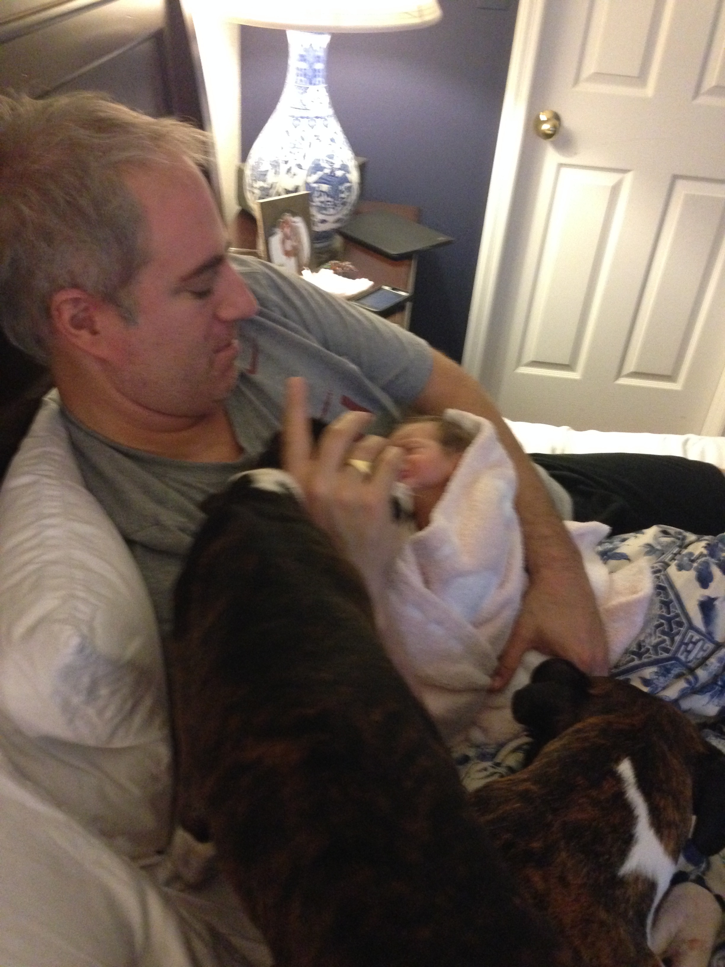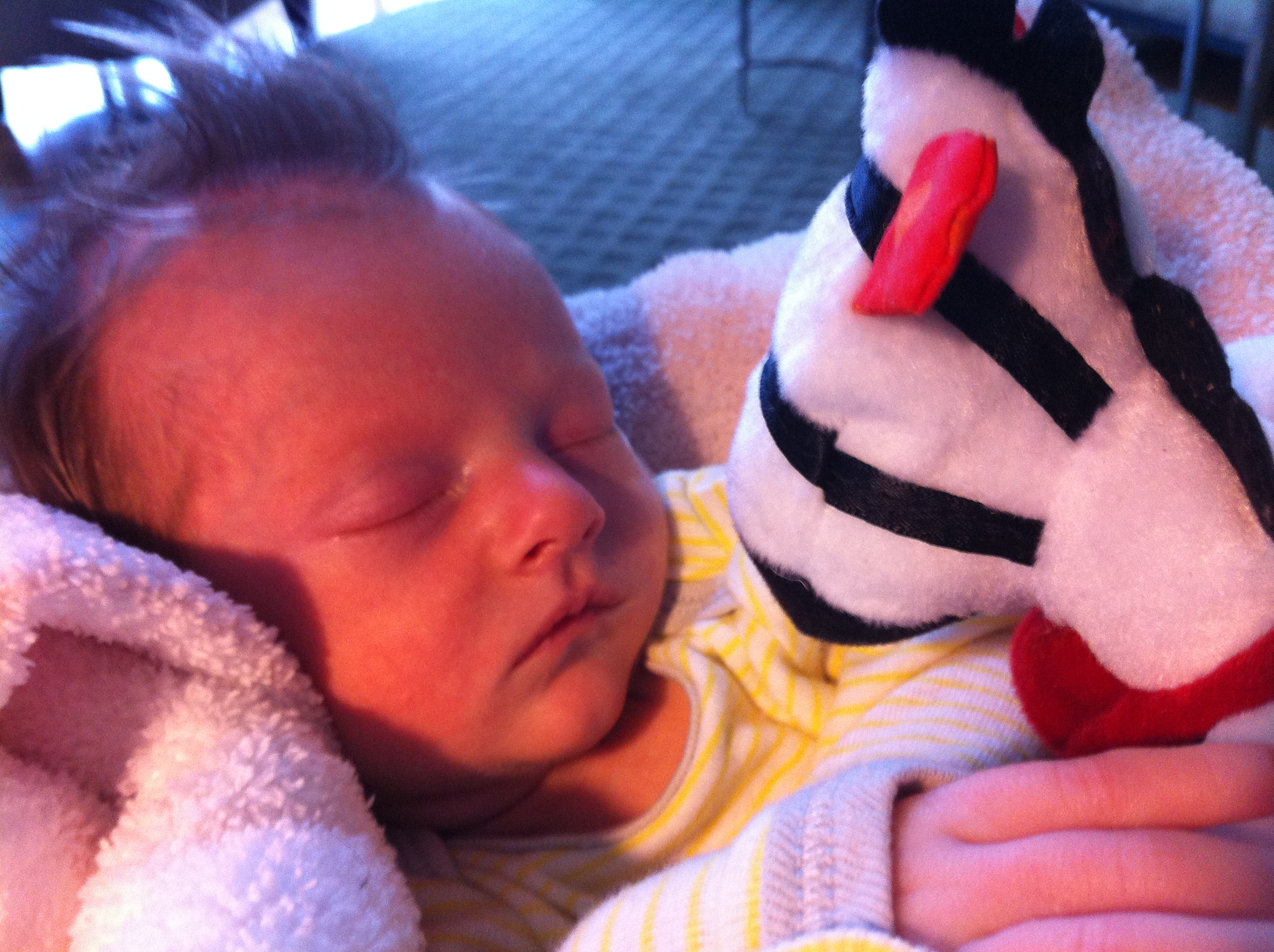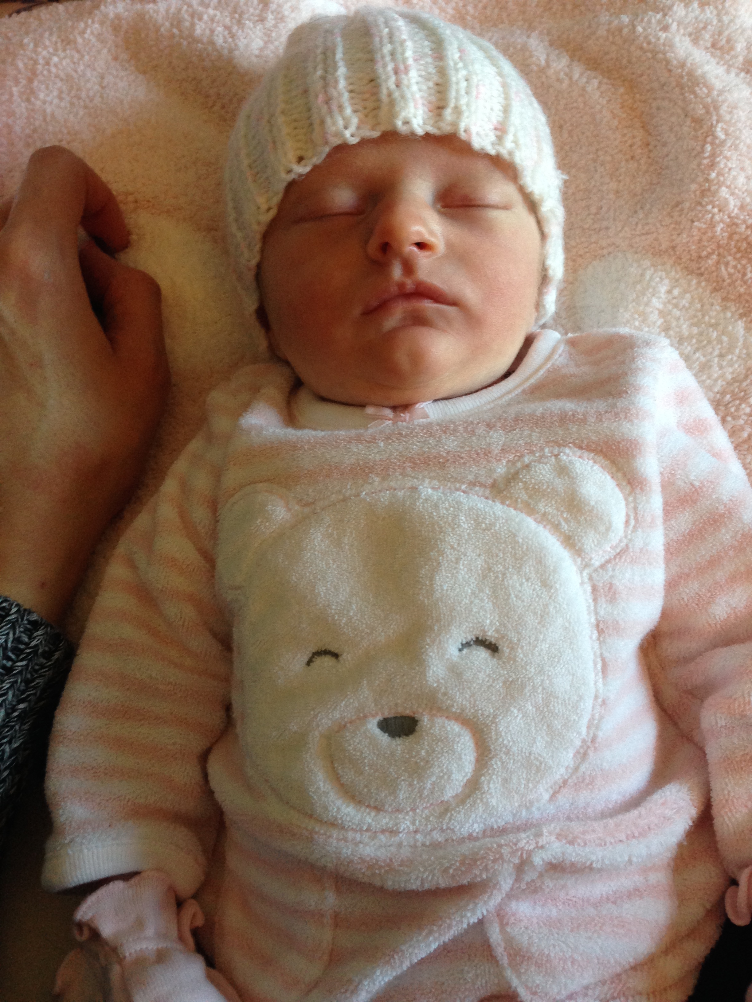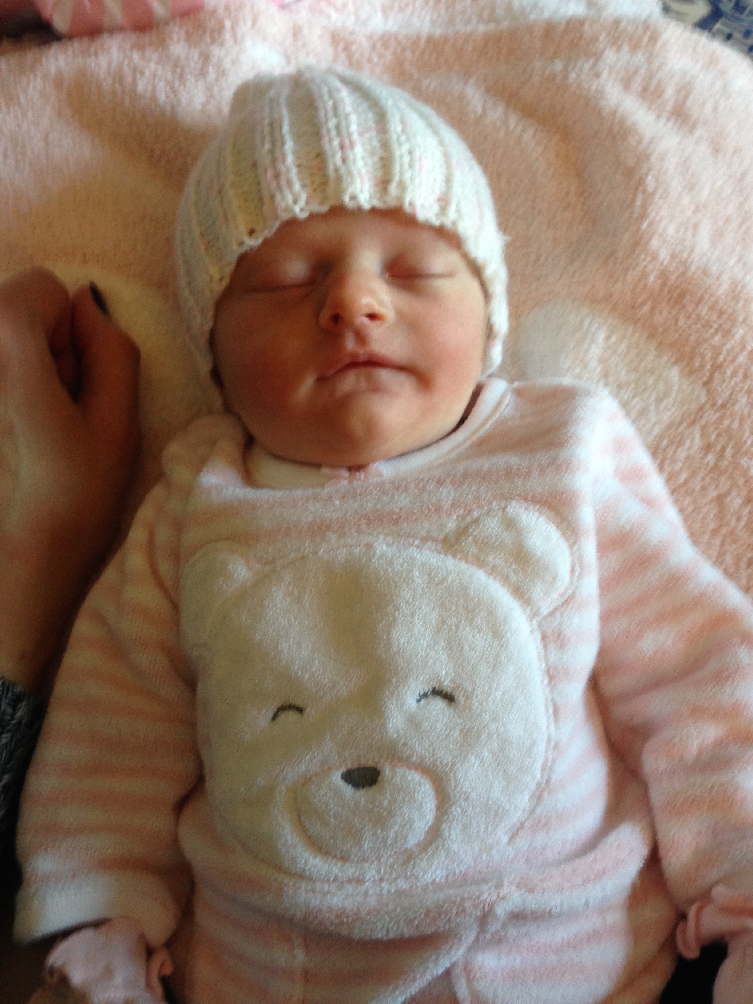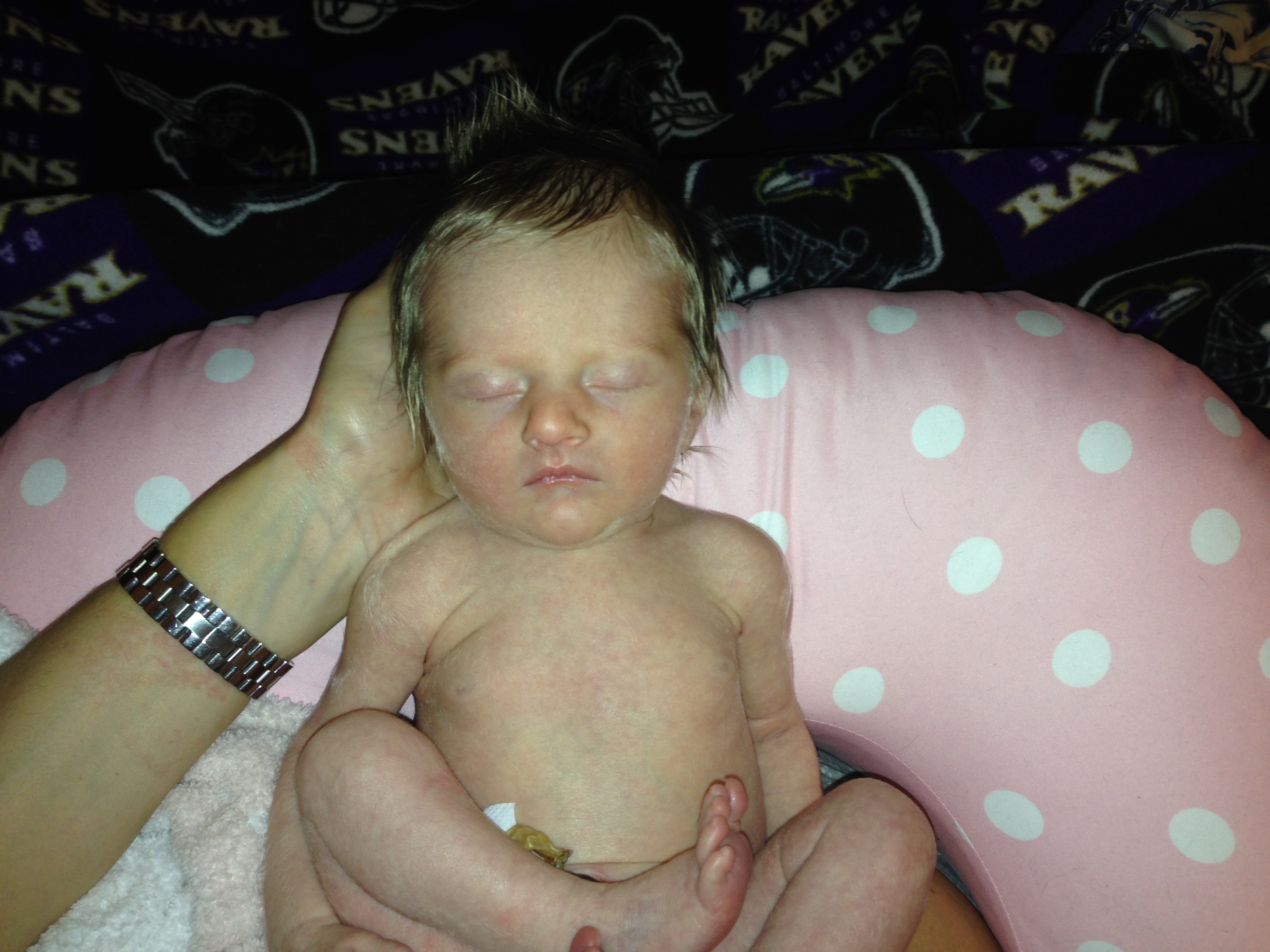 Charlotte you are almost 5 weeks old now and we survived our first month together…I have to say it went by very quickly. You are getting big and starting to pack on more weight which makes mommy very happy. At your doctor’s appointment this week you weighed 7lbs 2 oz and were 21 1/2 inches long. You also got your second hepatitis shot and you did not like it…and mommy did not like seeing you scream 😦 You are so much more alert and aware of your surroundings – watching everything, smiling and cooing. And on the down side you like to pee every time mommy goes to change your diaper – this time you peed all over our bed…on mommy’s side – no bueno!