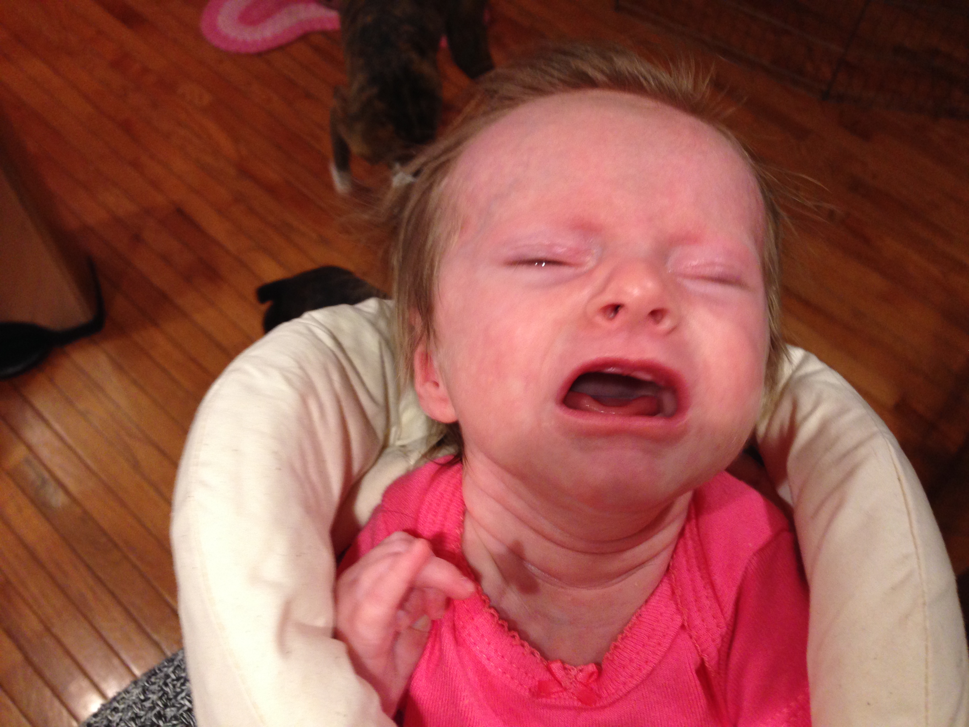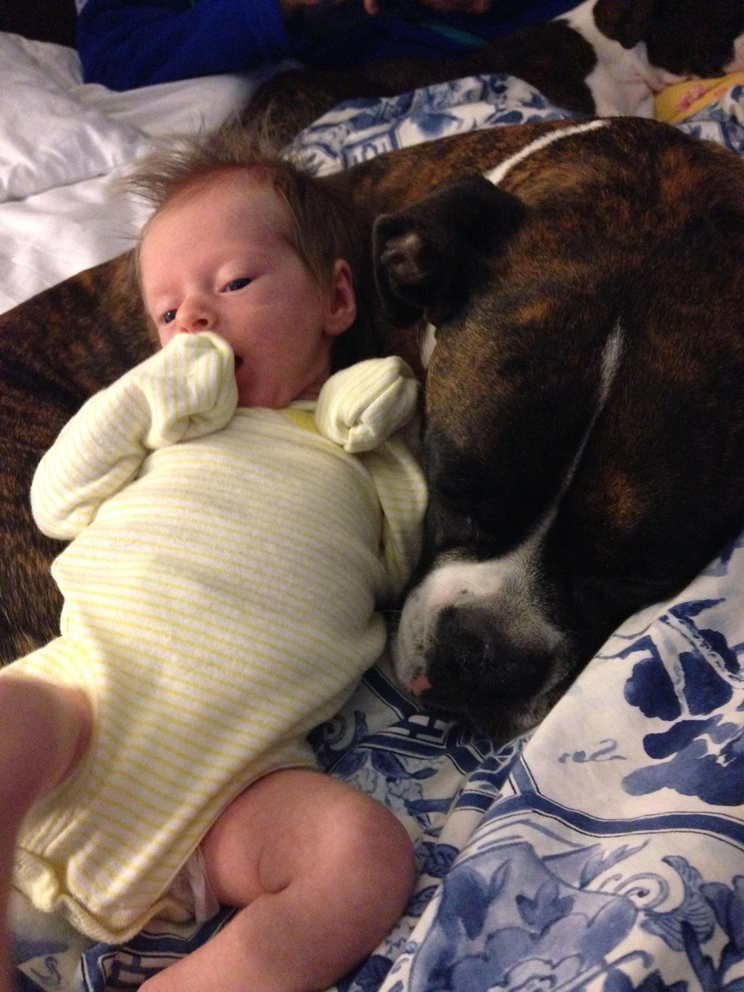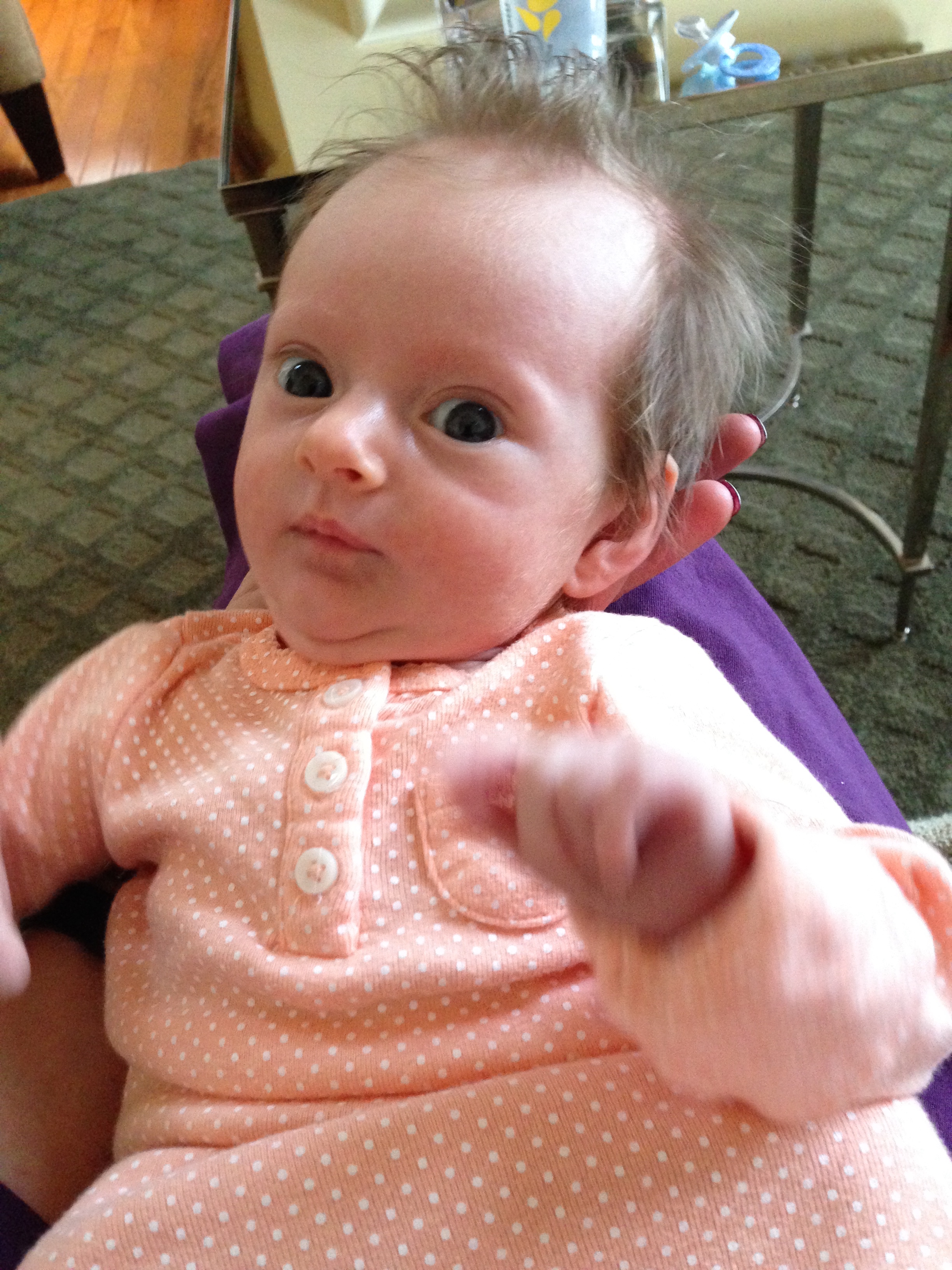 Getting bigger and stronger each day – weighing 9lbs and 3oz, and measuring 23 inches long. Had another round of vaccinations….you screamed your head up and were so unhappy, but not nearly as unhappy as mommy who had to see you cry 😦