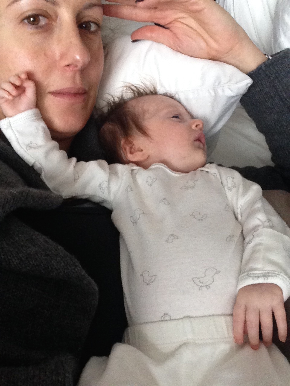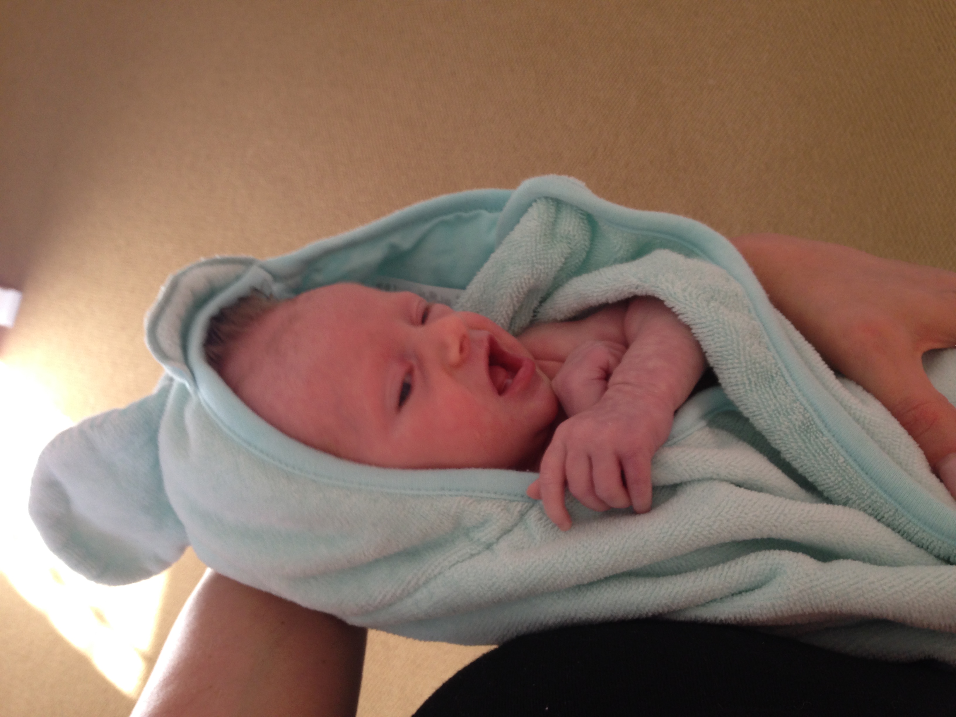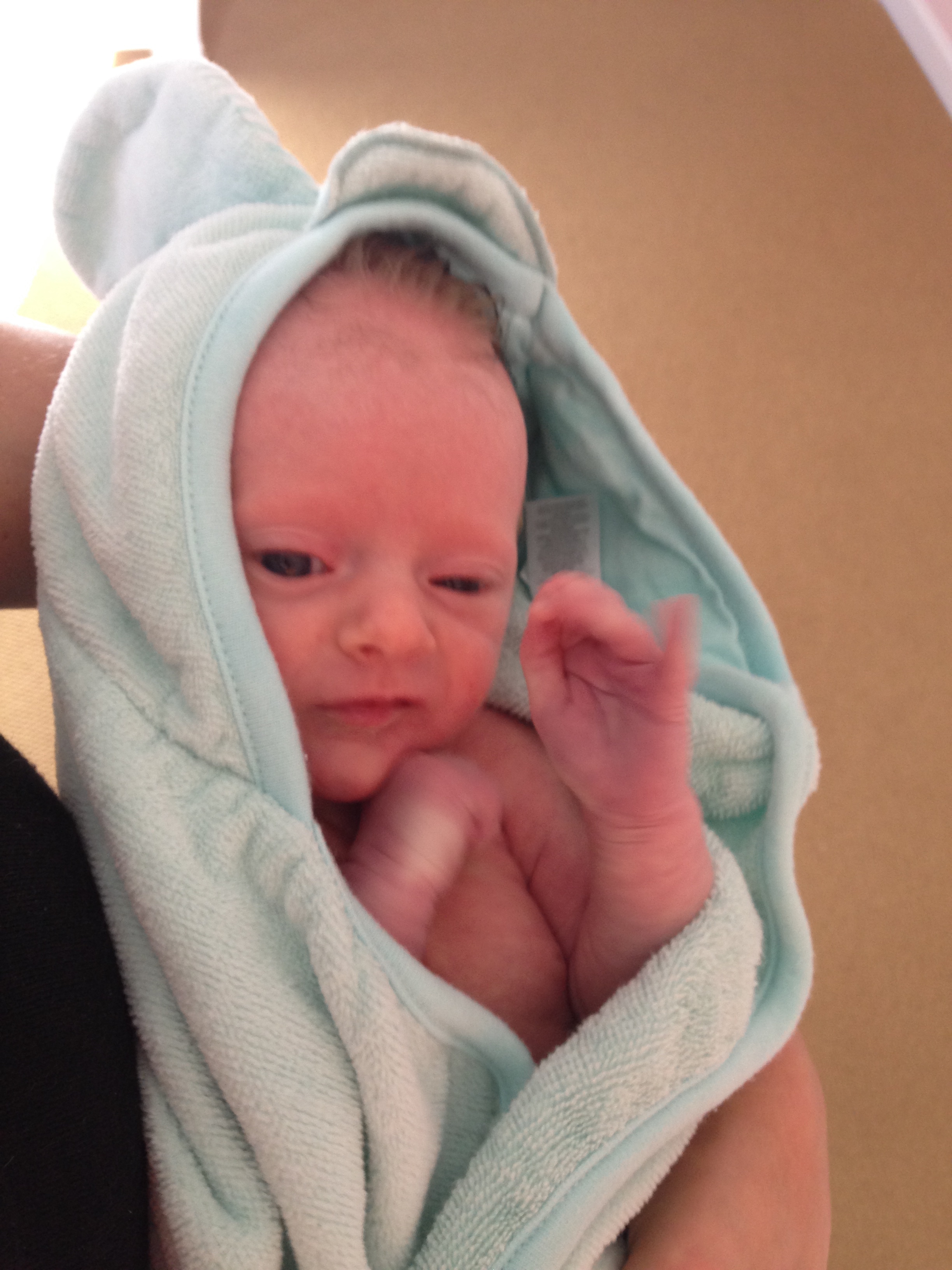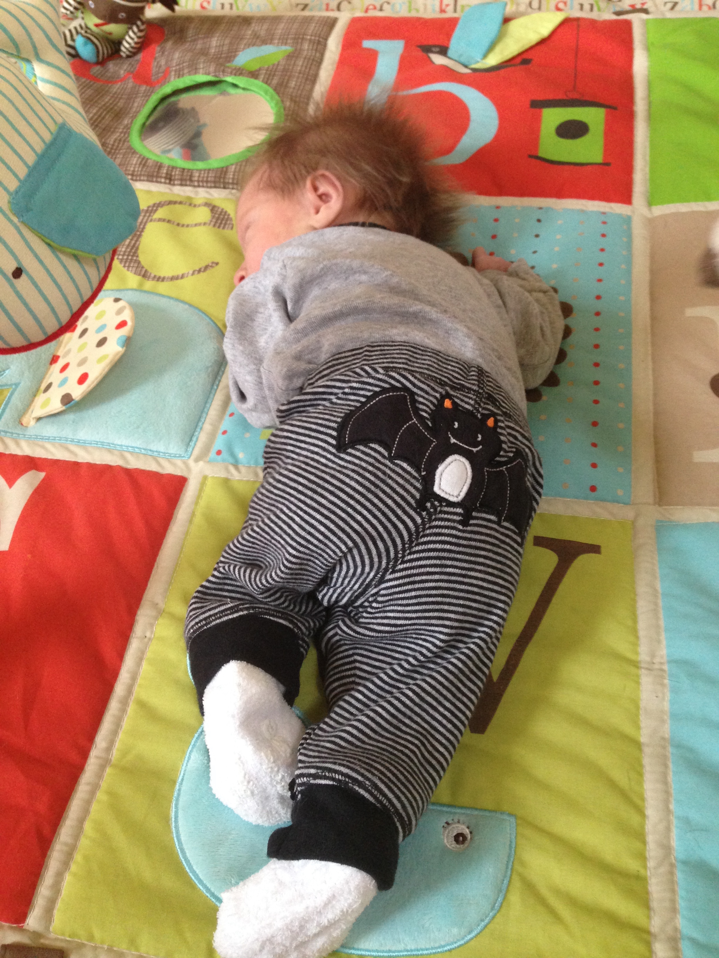 Getting bigger and stronger each day – weighing 9lbs and 3oz, and measuring 23 inches long. Had another round of vaccinations….you screamed your head up and were so unhappy, but not nearly as unhappy as mommy who had to see you cry 😦
