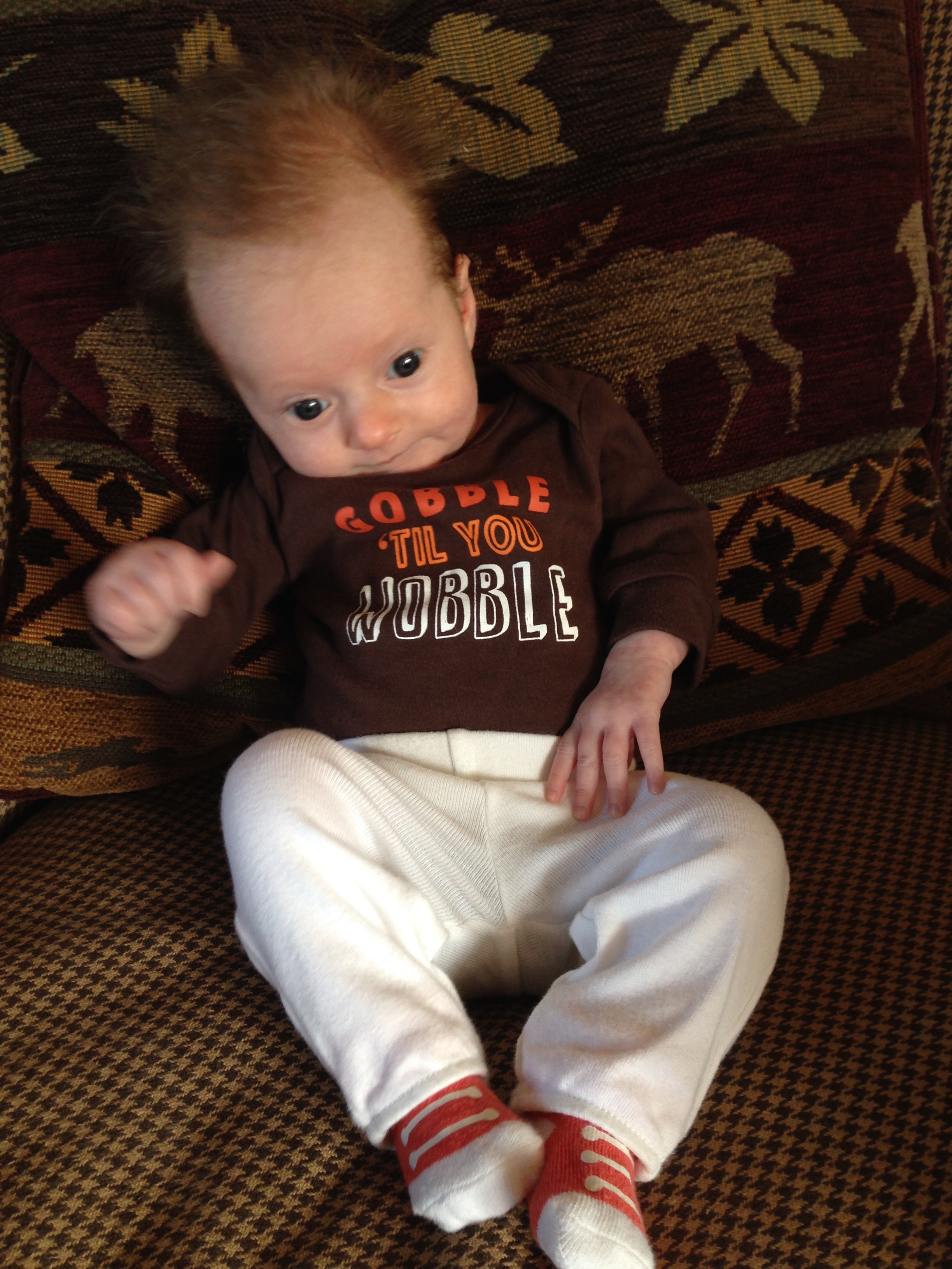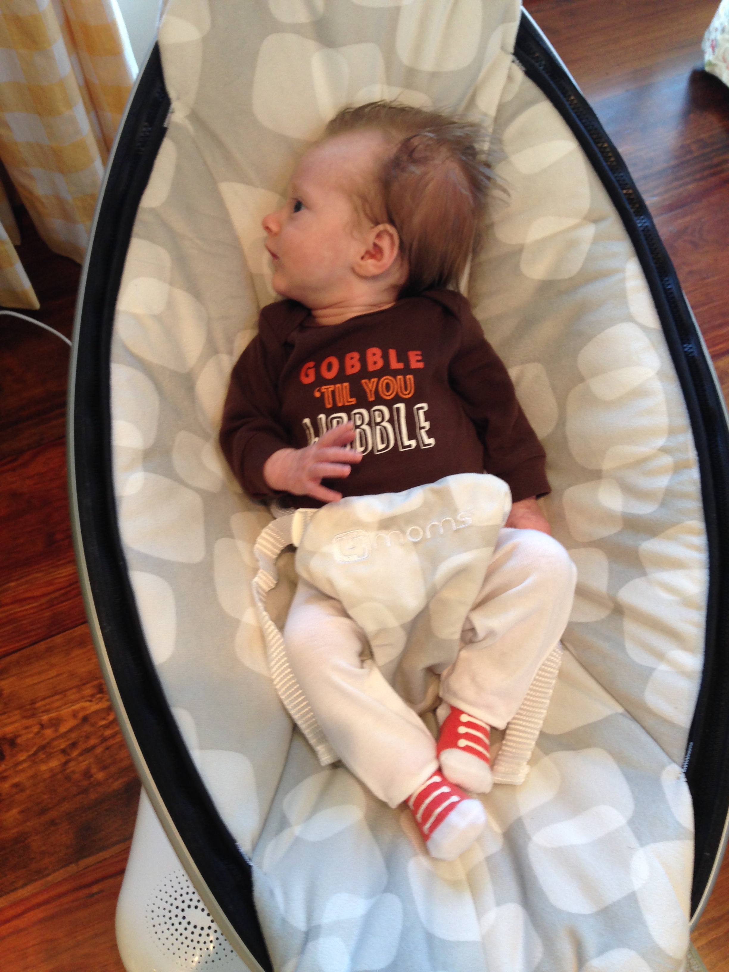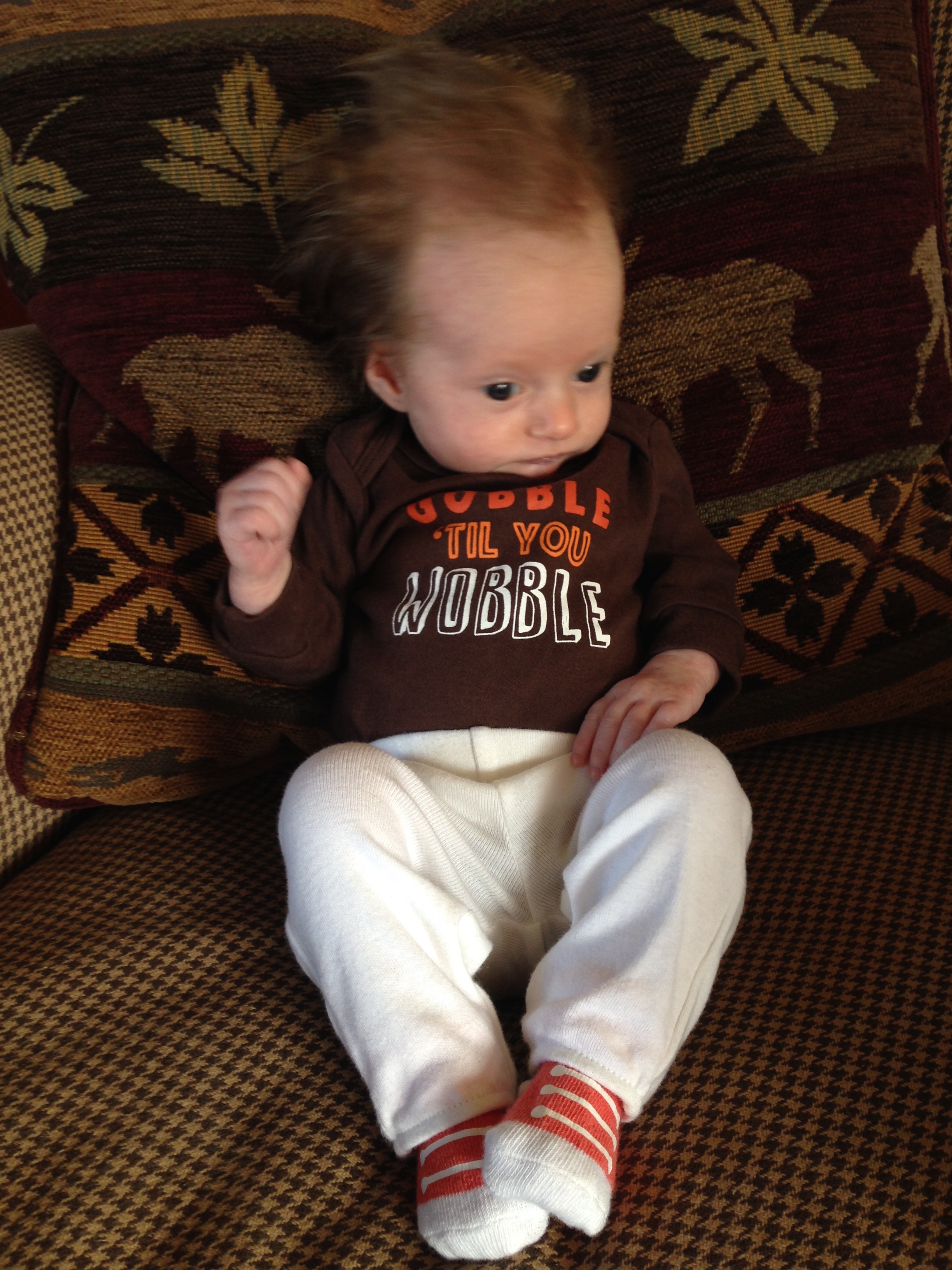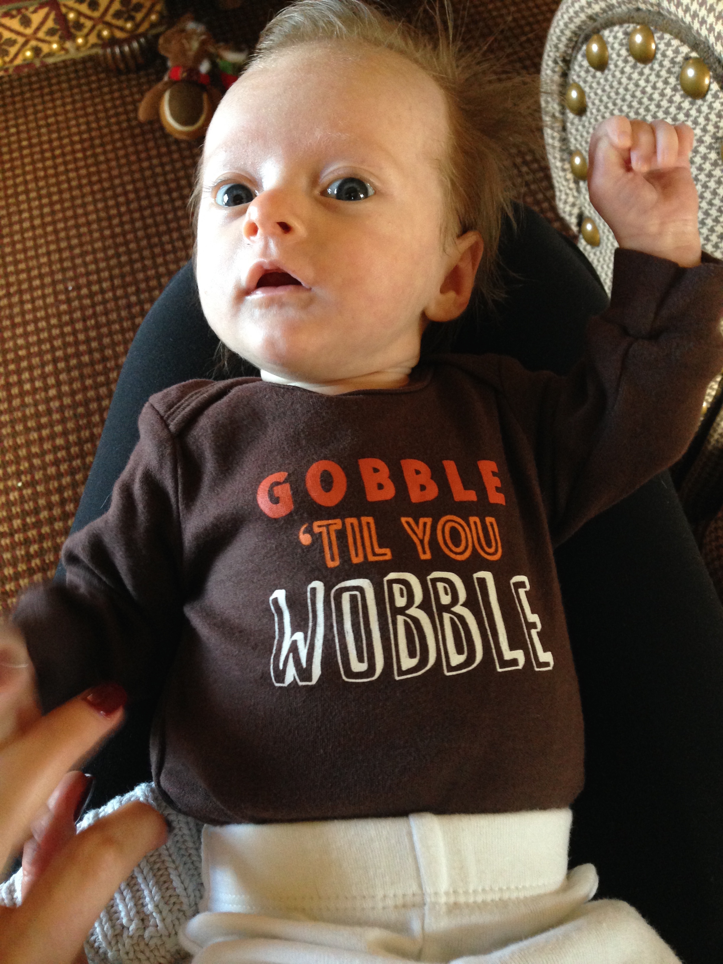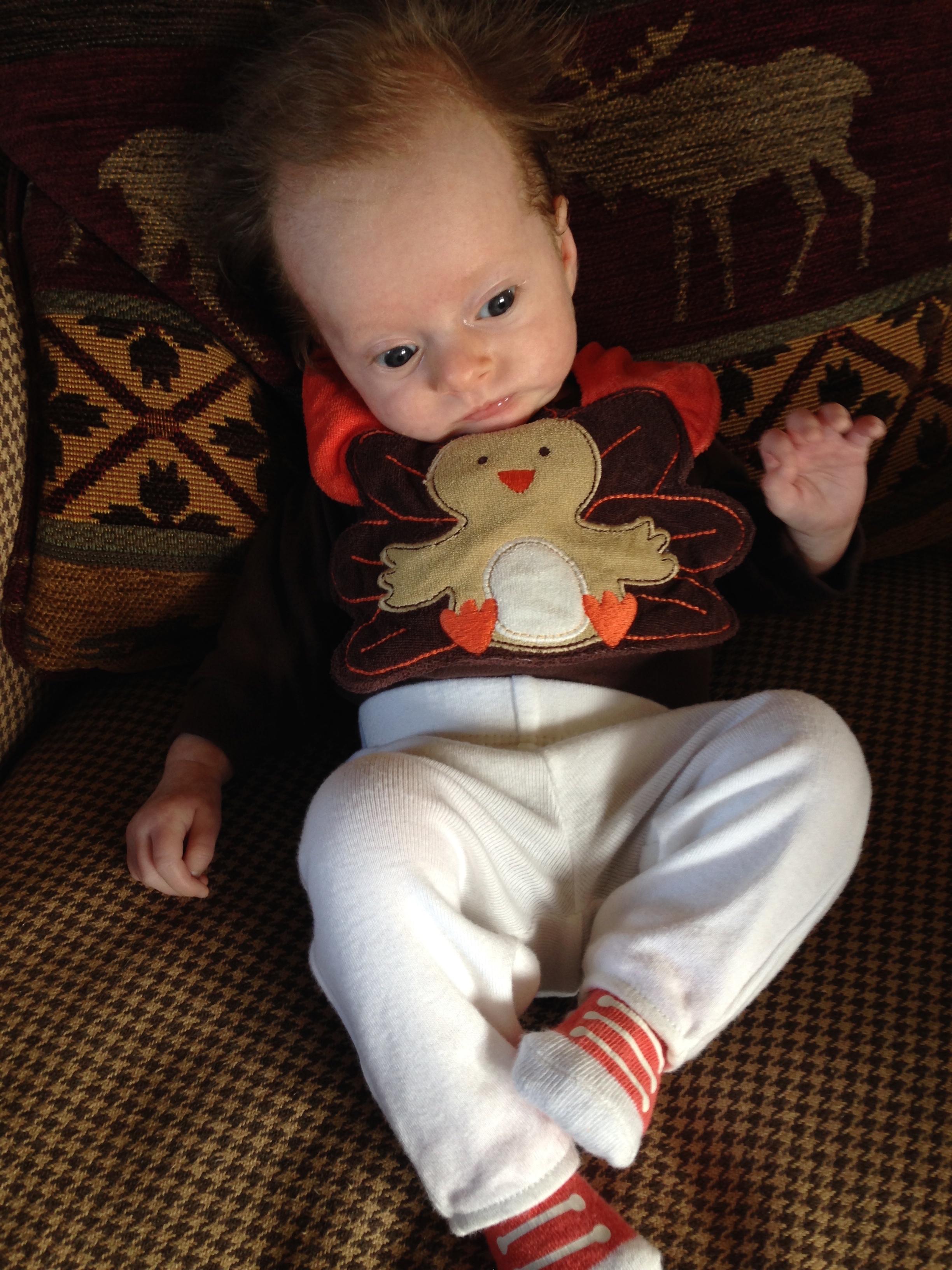 You are getting ready to take your first family trip to Maine tomorrow for your first Thanksgiving! Daddy drove up today with Tyson and Layla….and all of your crap – swing, pack and play, breastmilk LOL. The two of us are flying out tomorrow morning with Grandpa Grimm, Aunt Susan and Uncle Mike – your first flight. Hopefully everyone will get along this week and be on their best behavior – if not, you and me are taking a nap to escape the drama. Happy Thanksgiving my little turkey, I am thankful to have you in my life. Love you Charlotte xoxoxoxoxoxoxo