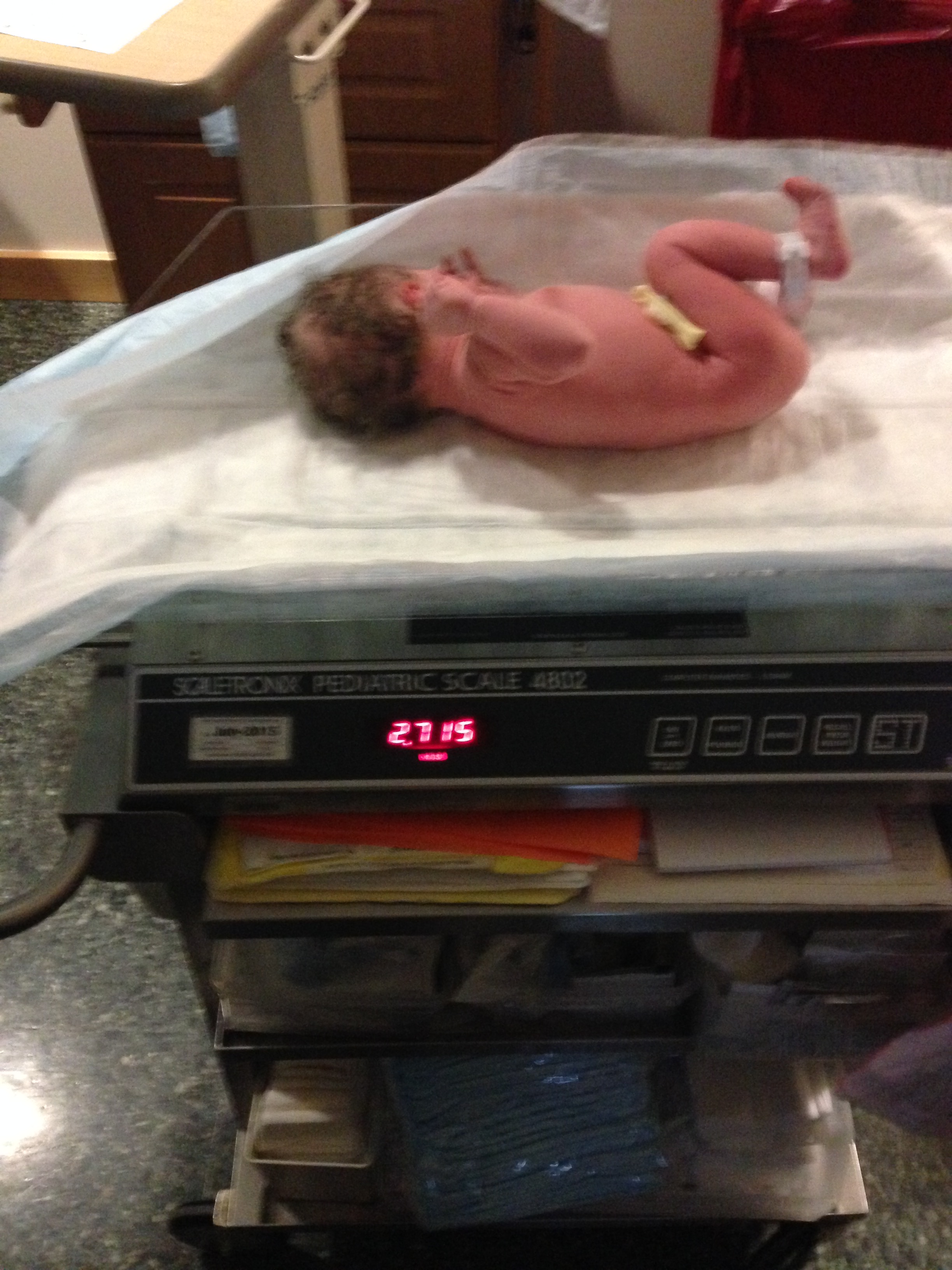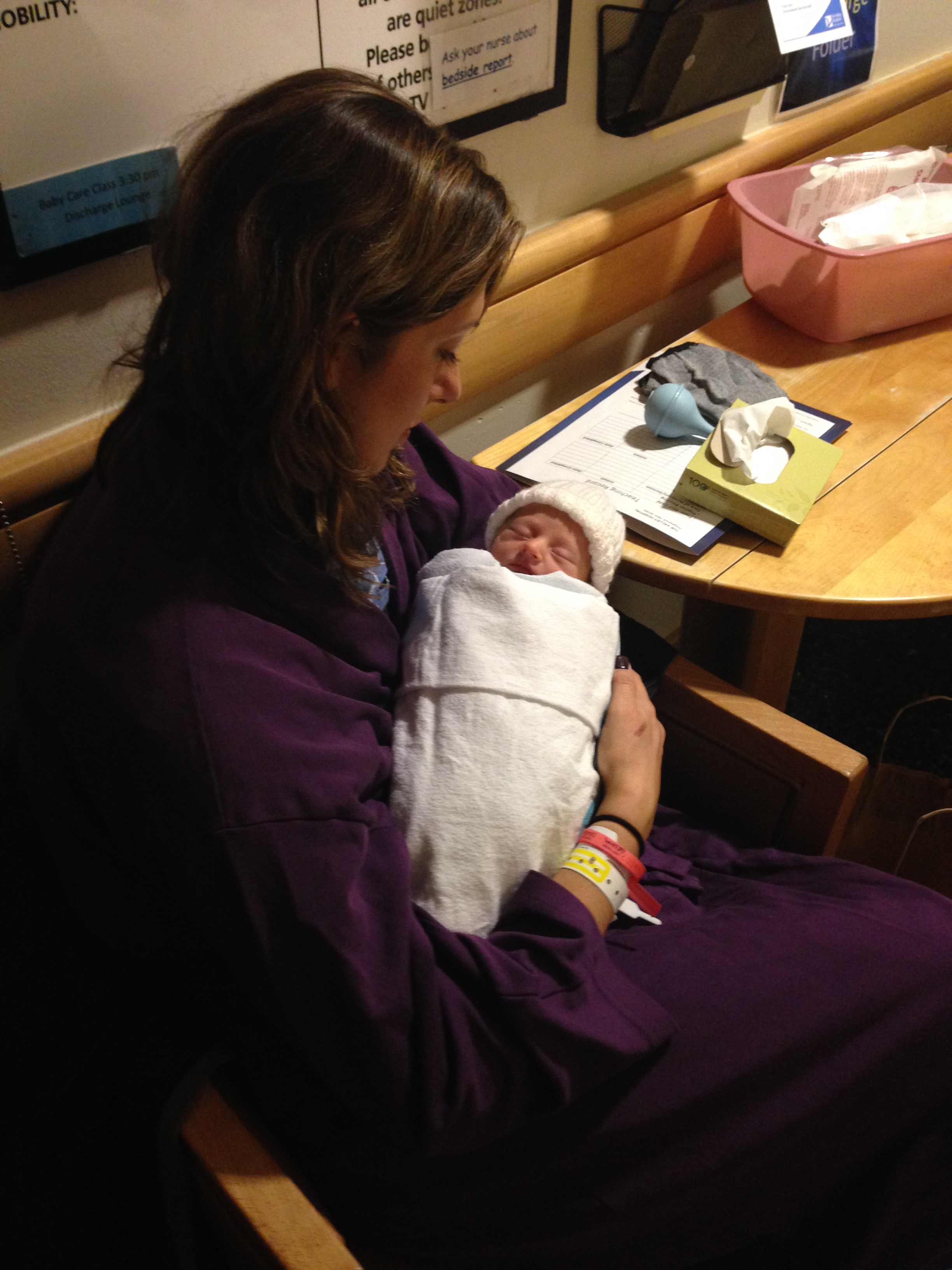 On Saturday, we attended our first Lamaze class at Valley and needless to say Daddy is getting a little freaked out. The class outlined what we can expect during labor -contractions, water breaking, labor positions, and cutting the cord. Daddy’s still not sure if he’s going to be able to cut the cord when you are born – I think he’s scared that he is going to hurt you even though he won’t – so don’t hold it against him if he doesn’t follow through. Your nursery furniture is being delivered on Friday which is great news, everything is finally coming together. I want to be as prepared as possible for your arrival and my checklist is getting a little smaller each week. All of your clothing is washed and folded – everything is so tiny and cute 🙂 Your bassinet is assembled, diaper genie is ready to go, and your swing is up and running.