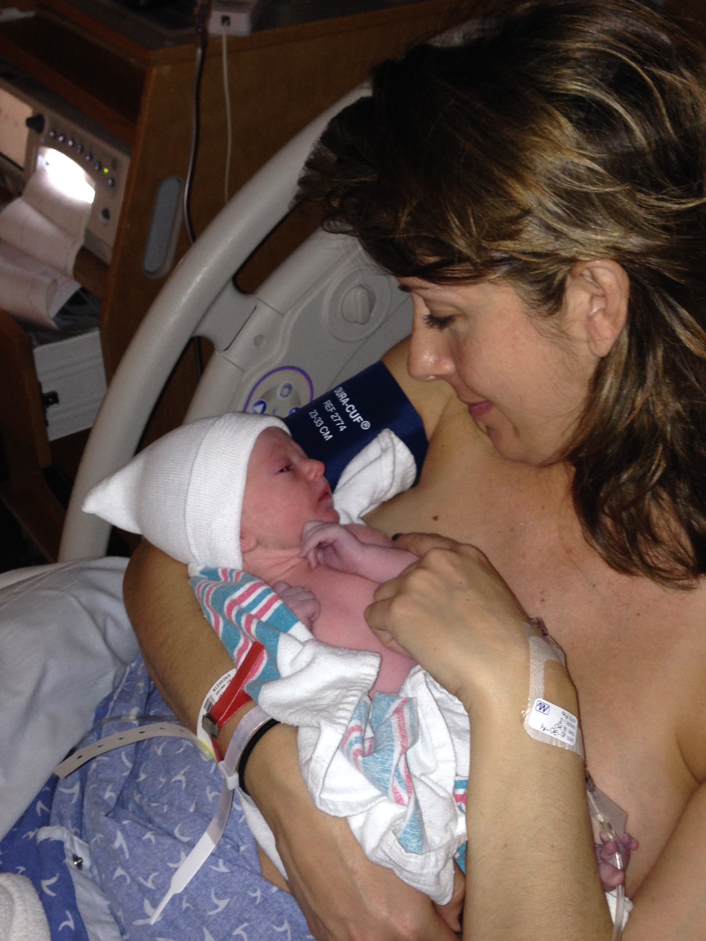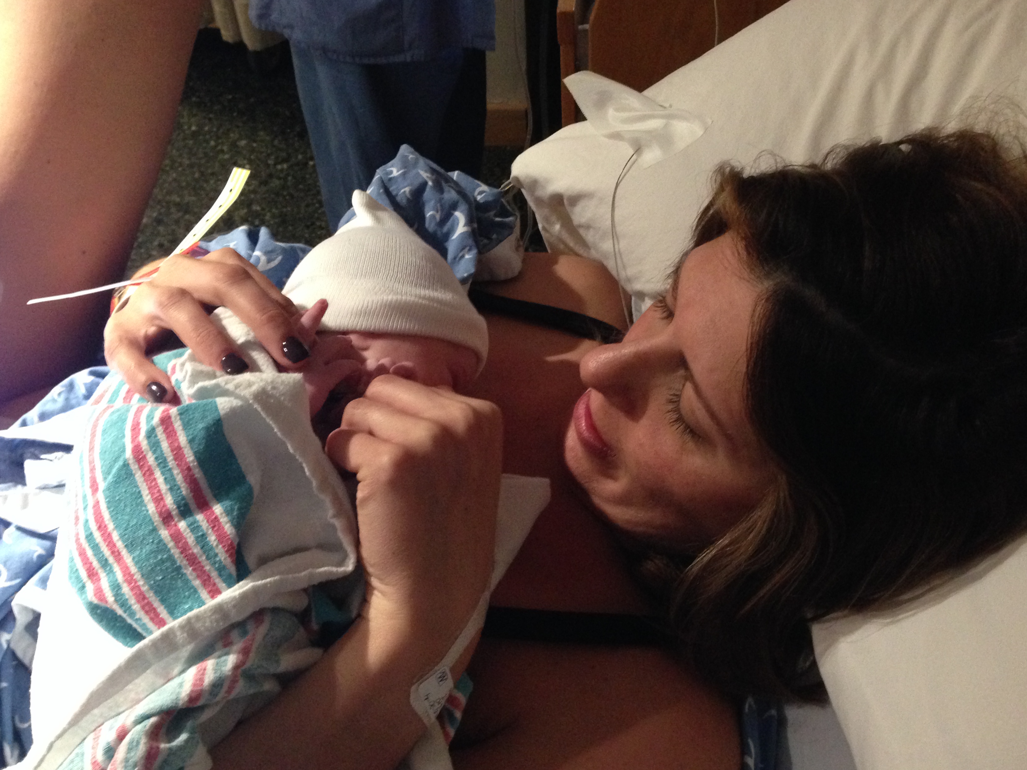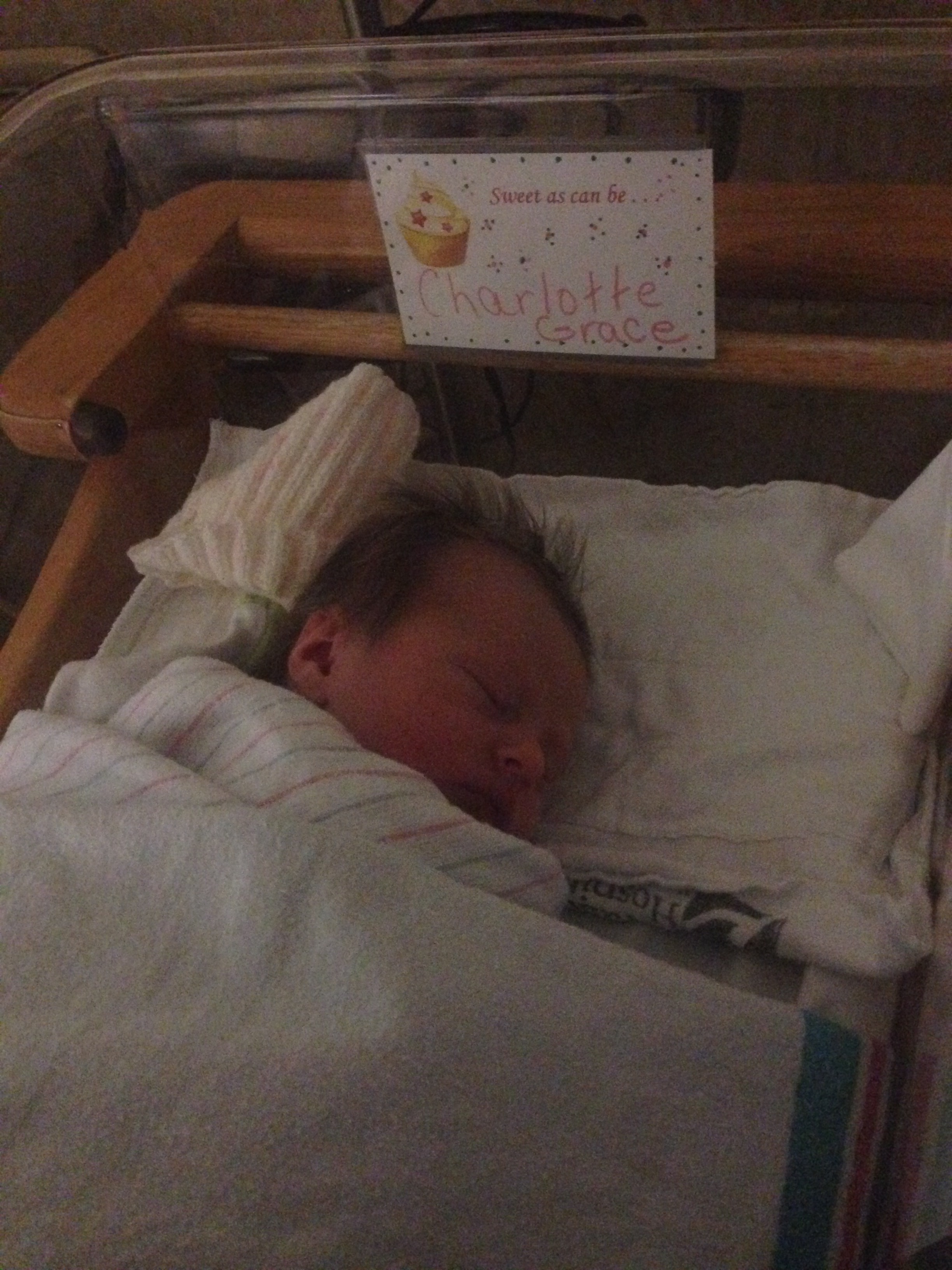 Well it’s official – I can now call you Charlotte Grace Grimm and you entered this world a week early on Monday, October 20, 2014 at 8:26 PM. You weighed exactly 6 lbs and measured 20 inches long. You are beautiful (and most babies aren’t beautiful) and healthy and strong 🙂 Mommy and Daddy are so in love with you, and everybody can’t wait to finally meet you. You decided to come a week early which I really didn’t think was going to happen, and thank god you decided to wait until Daddy got home from Vermont to make your first appearance – he was literally home a few hours before I started having early contractions. Daddy and I had dinner that night and then we got ready for bed – and shortly after I started having contractions but figured they were false labor pains…not the real thing. After a few hours and restlessness I took a shower and managed to go back to bed for a few hours. In the morning I was planning to head to work but the contractions were still coming off and on so I decided to go to the doctor just to be safe….although I had a feeling they weren’t real….in complete denial that you were on your way! Sure enough the doctor confirmed that labor had begun and I was dialeted 1cm. Daddy and I decided to go home for a bit but the doctor informed us that we would be at the hospital later that night to deliver. We went and got a pedicure, got some lunch, walked the dogs, and layed down for a bit before the contractions started getting more intense. Daddy thought it would be best to head to the hospital, so we did, with my bags in tow! After checking in at Valley Hospital around 2:30 PM – I was told that I was 4cm along, and not 6 hours later you were in my arms 🙂 I will leave the labor story to tell you when you get older – but overall, you were a easy delivery for a first time baby so I thank you. Words could not describe the happiness and joy I felt holding you in my arms for the first time. I wanted to eat you up and kiss you for hours….finally a mom and having a family to share special moments with. Since your birth we have been adjusting to home life and getting settled in a routine…somewhat of a routine. Overall, you are a good baby – don’t cry or fuss too much, but we are struggling with the breastfeeding – you don’t like to cooperate and latch on but I know with time you will do great – we have to work on it together – you and me! Everyone loves your name and your Uncle Pete has given you the nickname of “Chicken Biscuit” not very attractive, but feels that you are from the south based on your name. We will come up with a better nickname…I promise! Every day you get bigger and stronger, and you look so different now then you do last week. I savor each moment together as everyone tells me you will grow up so quickly. I love you Charlotte Grace and I’m so happy we survived the last 9 months together and I look forward to our next journey together as mom and daughter 🙂 I leave you with some pictures of your first weeks, love you baby girl xoxoxoxoxoxoxoxoxo